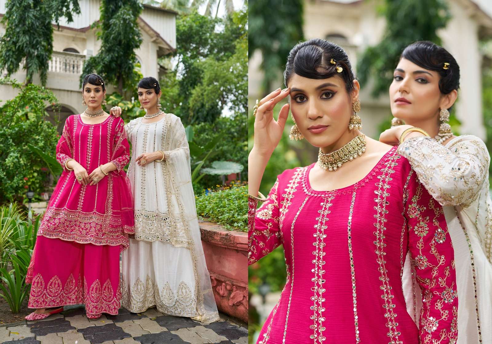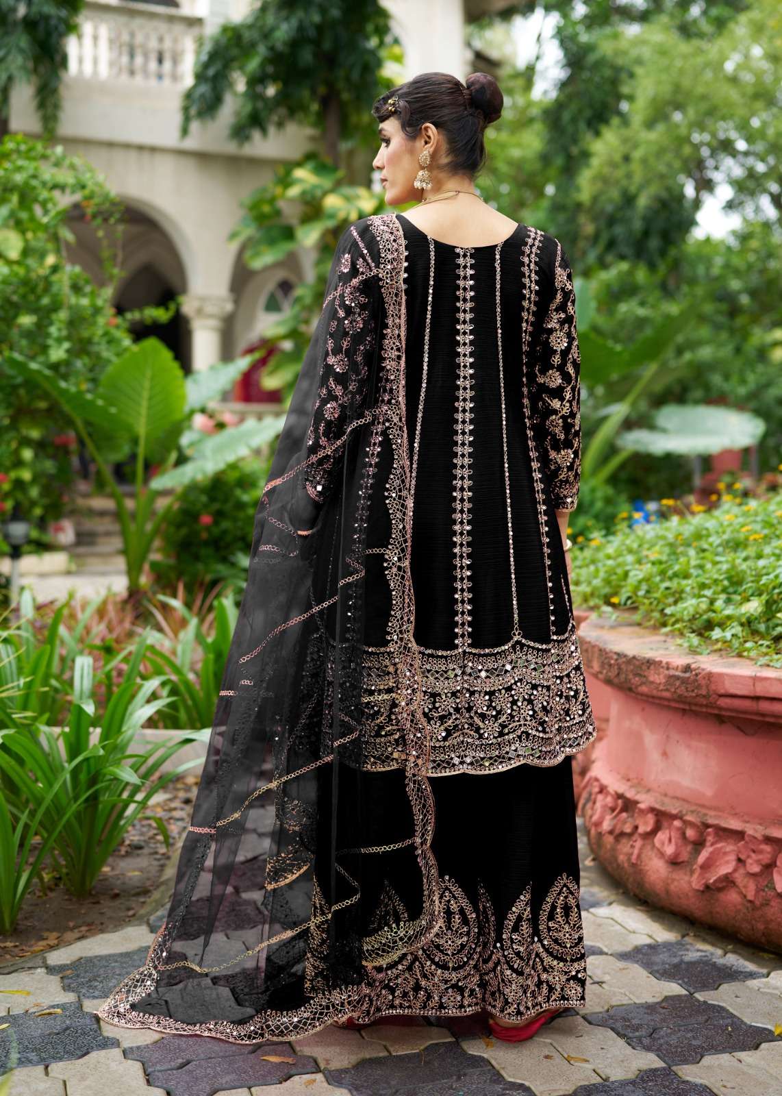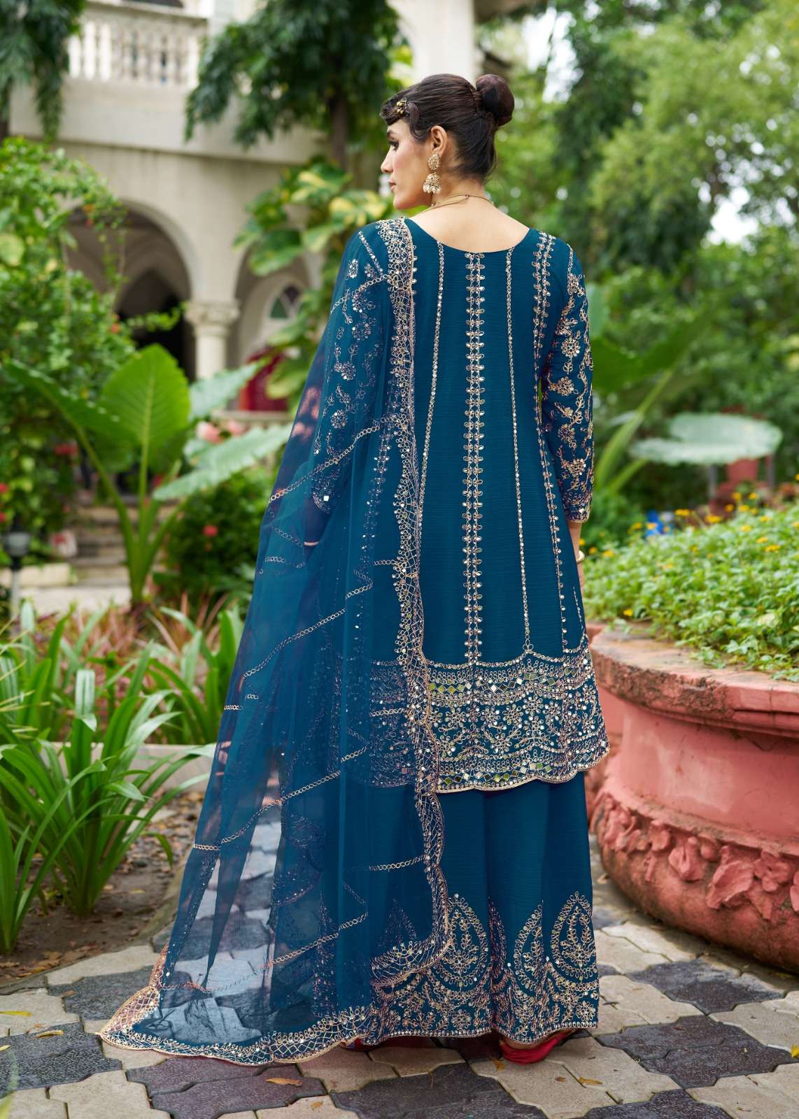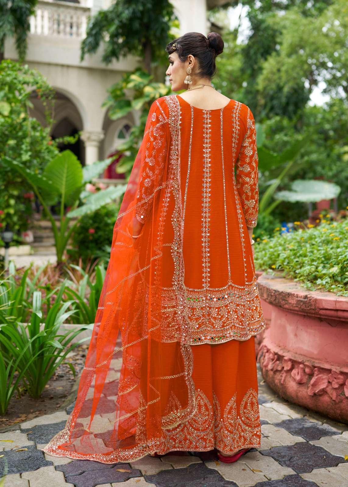 *SHARARA* -Chinon With Beautiful real mirror Embroidery.(BOTH SIDE WORK ) *Dupatta Fabrics* -net .