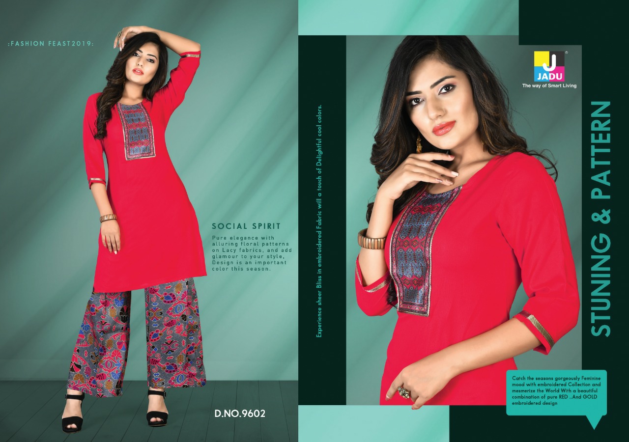 Buy Online Sahoo By Jadu Kurtis Wholesale Supplier And Dealer Surat 8 Pcs of Full Catalogue at Wholesale Price. Looking for Sahoo By Jadu Kurtis Wholesale Supplier And Dealer Surat Full Catalouge at Best Price? Buy Now Sahoo By Jadu Kurtis Wholesale Supplier And Dealer Surat at Wholesale Rate of Rs 4560 with Total 8 Pcs from authroized dealer and supplier of BRAND'S Brand. Cost of Each piece is just only Rs 570 which is very low and affordable price to resale the product in your retail store ,This is Surat based Wholesale Supplier & Dealer of BRAND'S Brand. Click on Brand name to Know more about BRAND'S Brand's products.Call or Whatsapp on 9898838984 for booking or enquiry