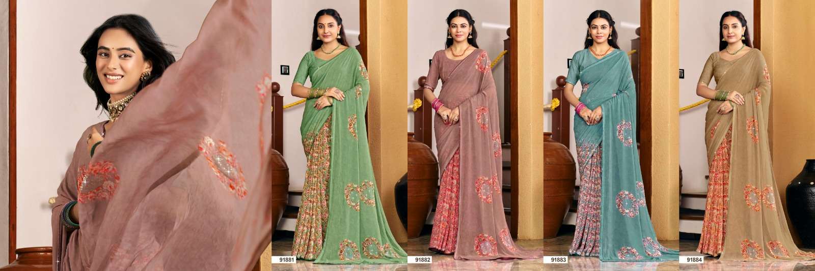 Buy Online SAIYAARA VOL 08 by VIPUL SAREE collection manufacturers surat 4 Pcs of Full Catalogue at Wholesale Price. Looking for SAIYAARA VOL 08 by VIPUL SAREE collection manufacturers surat Full Catalouge at Best Price? Buy Now SAIYAARA VOL 08 by VIPUL SAREE collection manufacturers surat at Wholesale Rate of Rs 3360 with Total 4 Pcs from authroized dealer and supplier of VIPUL Brand. Cost of Each piece is just only Rs 840 which is very low and affordable price to resale the product in your retail store ,This is Surat based Wholesale Supplier & Dealer of VIPUL Brand. Click on Brand name to Know more about VIPUL Brand's products.Call or Whatsapp on 9898838984 for booking or enquiry