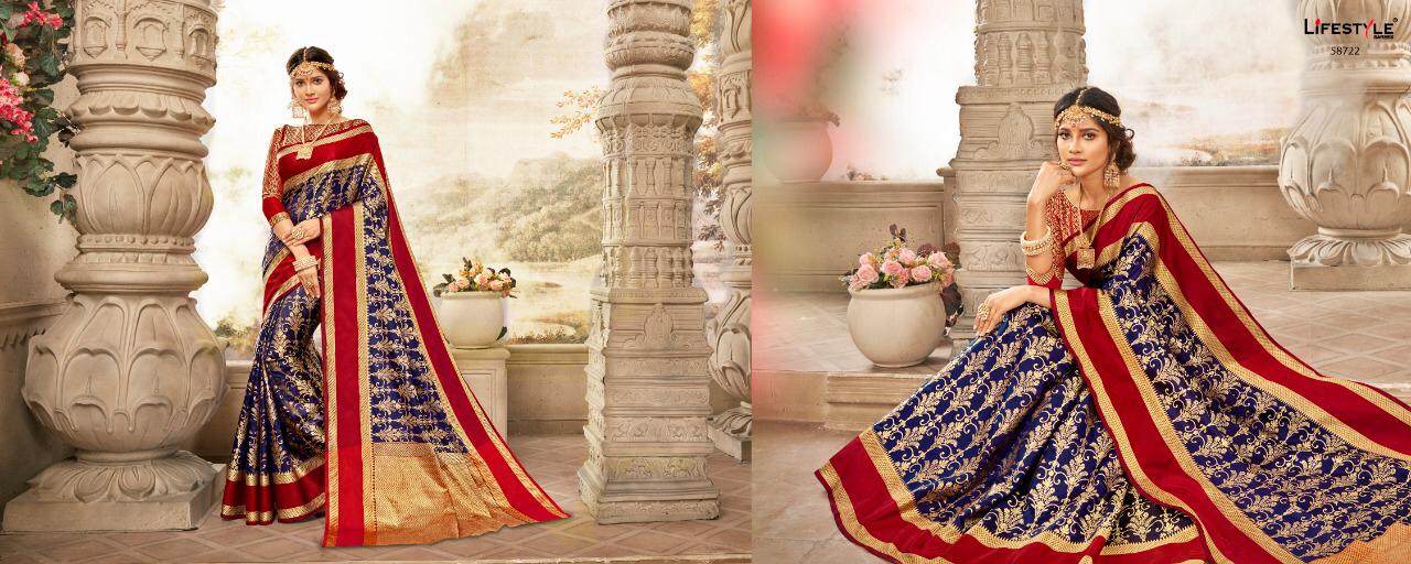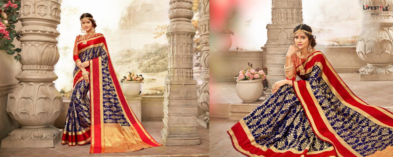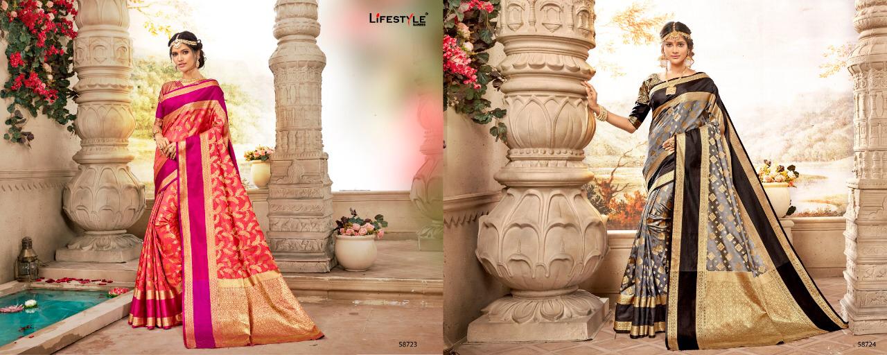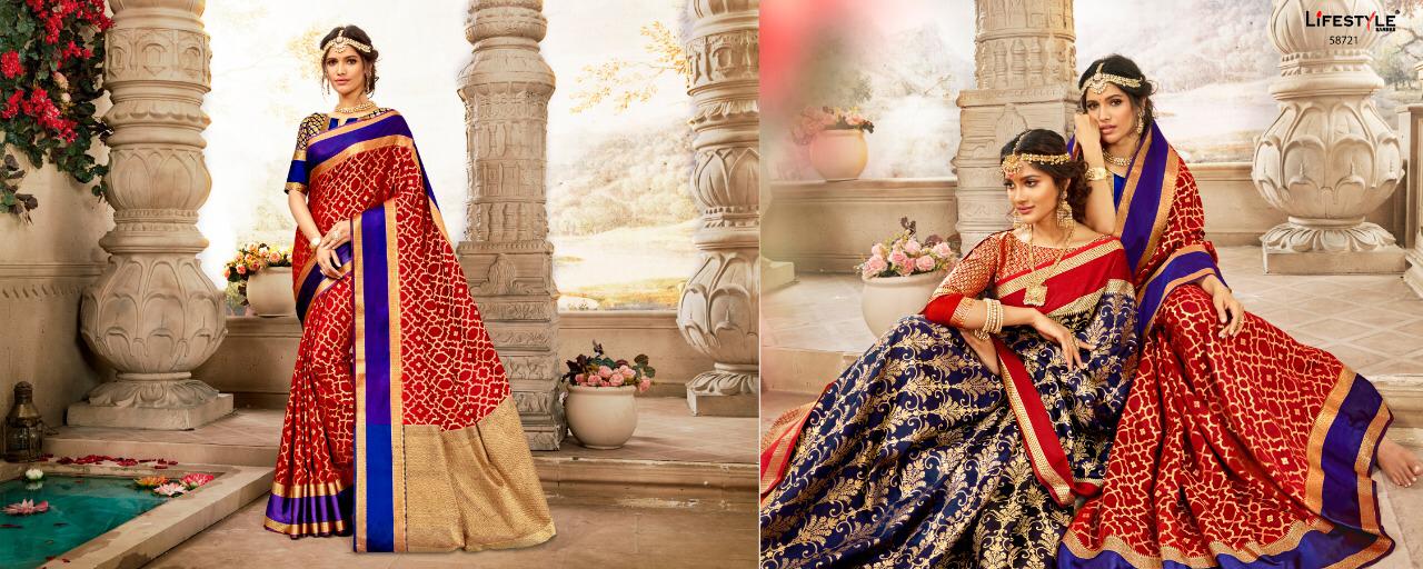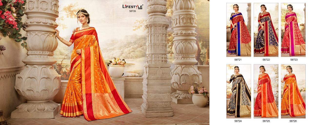 Buy Online Sajawat 2 By Lifestyle Series 58721 To 58726 Silk Designer Occasion Wear Sarees Wholesale Supplier Gujarat 6 Pcs of Full Catalogue at Wholesale Price. Looking for Sajawat 2 By Lifestyle Series 58721 To 58726 Silk Designer Occasion Wear Sarees Wholesale Supplier Gujarat Full Catalouge at Best Price? Buy Now Sajawat 2 By Lifestyle Series 58721 To 58726 Silk Designer Occasion Wear Sarees Wholesale Supplier Gujarat at Wholesale Rate of Rs 6180 with Total 6 Pcs from authroized dealer and supplier of LIFESTYLE Brand. Cost of Each piece is just only Rs 1030 which is very low and affordable price to resale the product in your retail store ,This is Surat based Wholesale Supplier & Dealer of LIFESTYLE Brand. Click on Brand name to Know more about LIFESTYLE Brand's products.Call or Whatsapp on 9898838984 for booking or enquiry