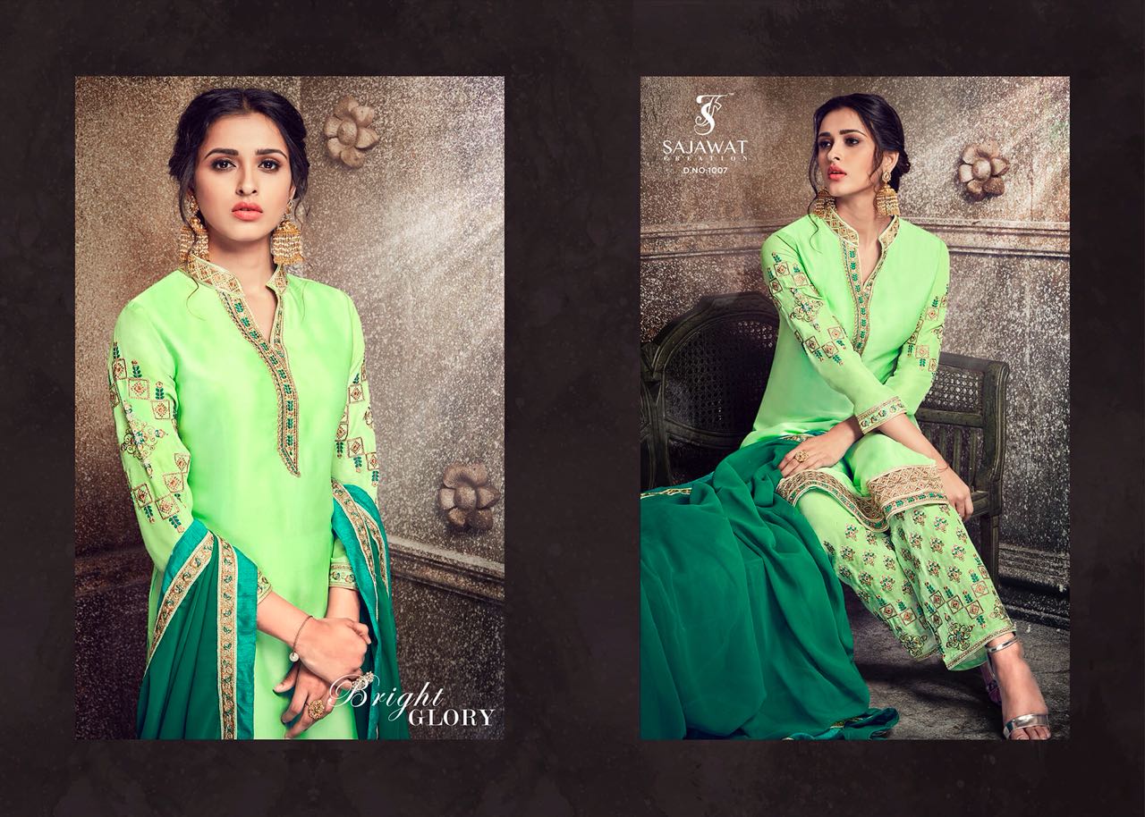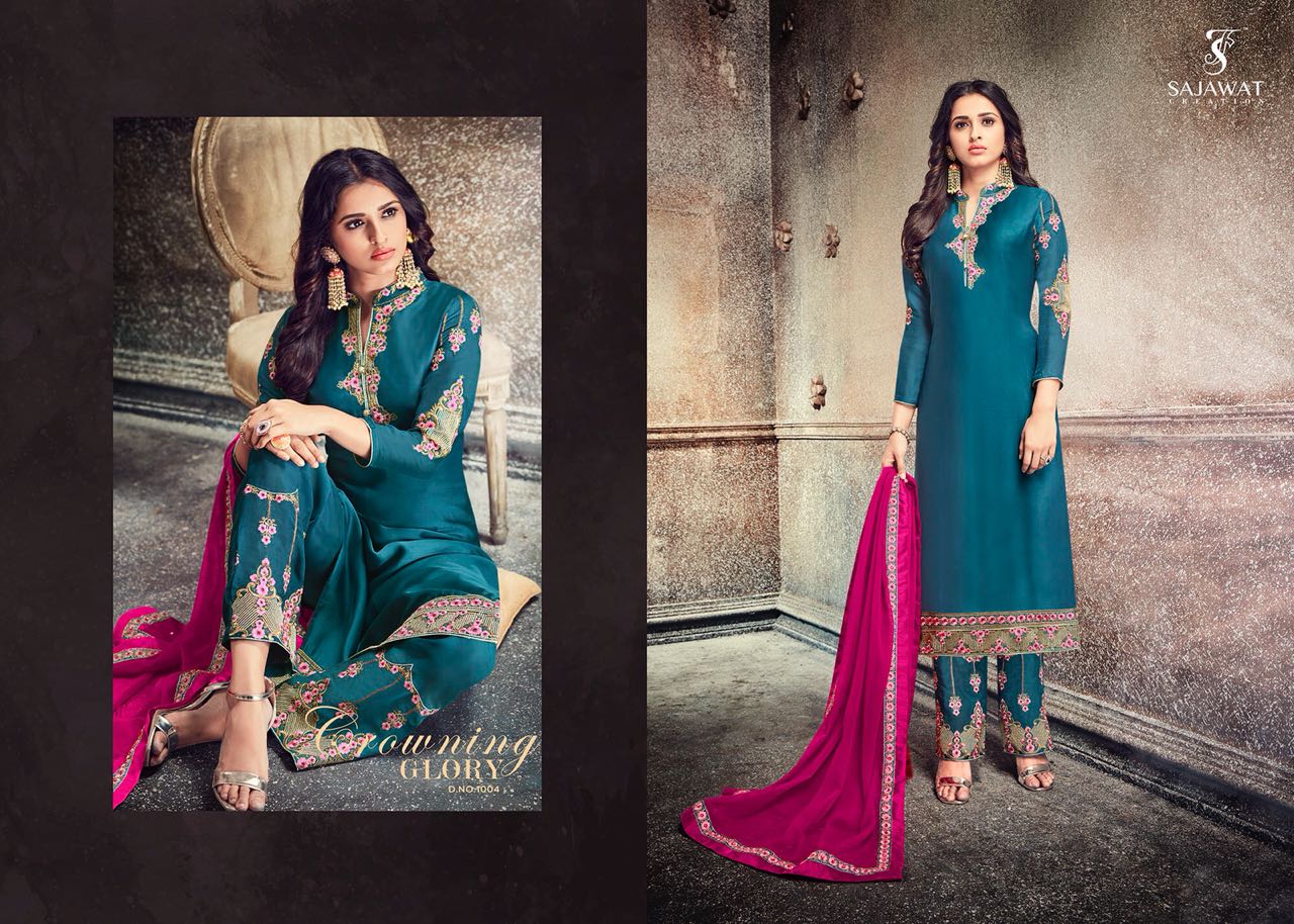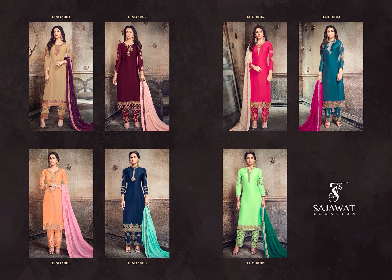 Buy Online Sajawat Fashion Silk 1001 Series Jorget Silk Salwar Kameez Catlog Wholesale Dealer And Supplier Surat 7 Pcs of Full Catalogue at Wholesale Price. Looking for Sajawat Fashion Silk 1001 Series Jorget Silk Salwar Kameez Catlog Wholesale Dealer And Supplier Surat Full Catalouge at Best Price? Buy Now Sajawat Fashion Silk 1001 Series Jorget Silk Salwar Kameez Catlog Wholesale Dealer And Supplier Surat at Wholesale Rate of Rs 8750 with Total 7 Pcs from authroized dealer and supplier of SAJAWAT Brand. Cost of Each piece is just only Rs 1250 which is very low and affordable price to resale the product in your retail store ,This is Surat based Wholesale Supplier & Dealer of SAJAWAT Brand. Click on Brand name to Know more about SAJAWAT Brand's products.Call or Whatsapp on 9898838984 for booking or enquiry