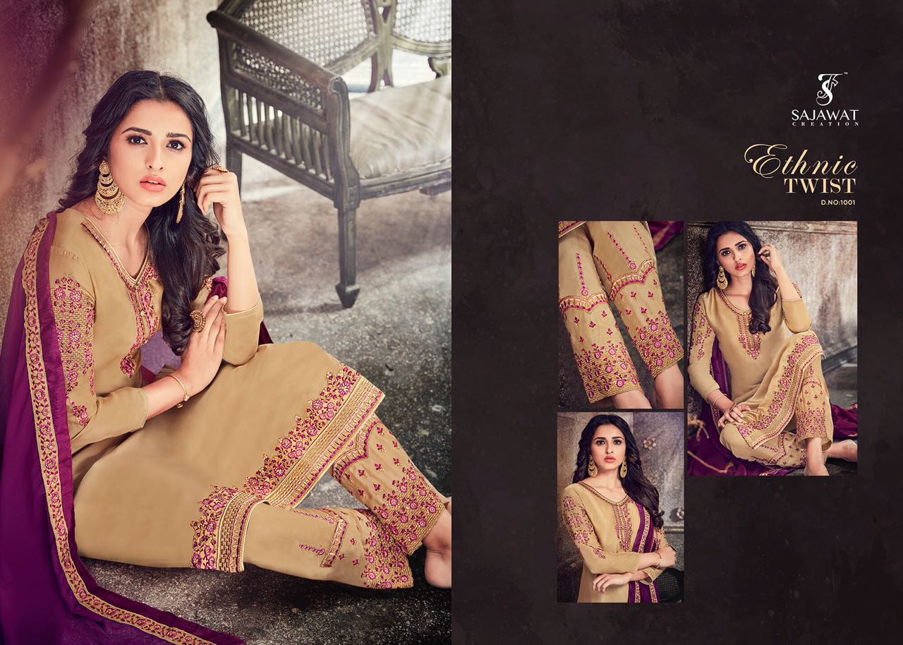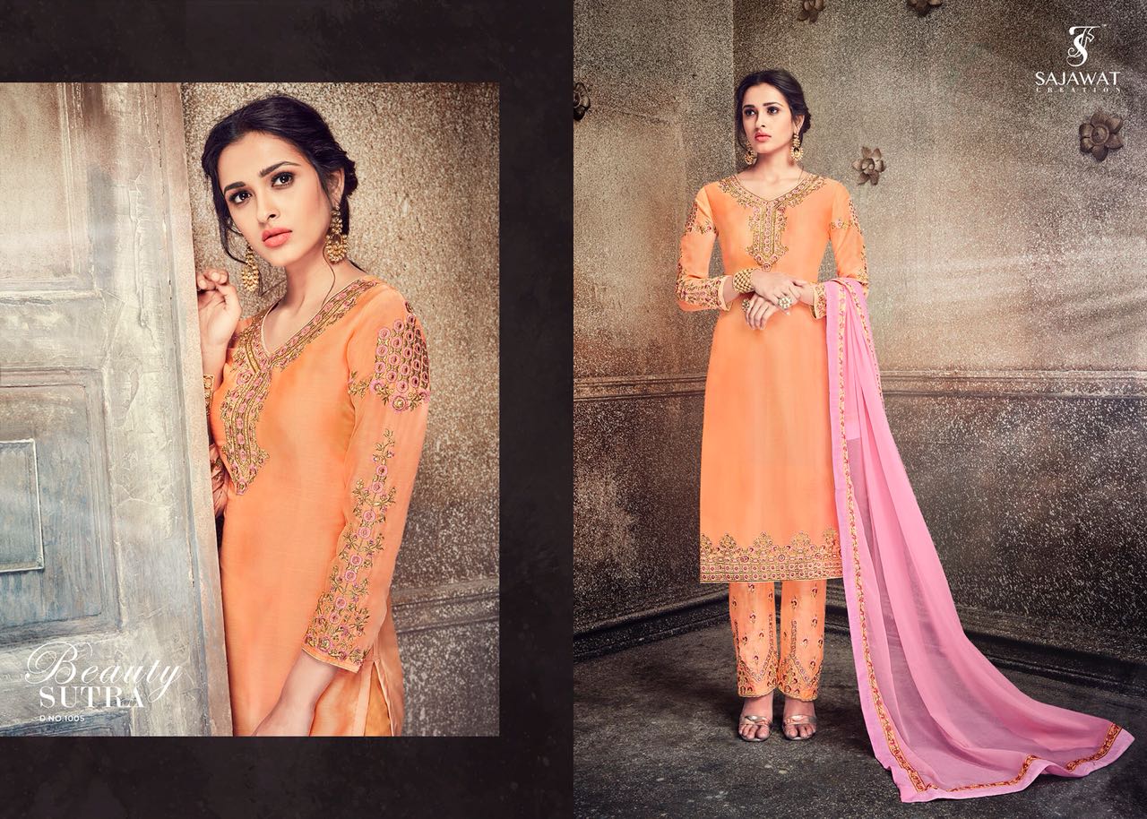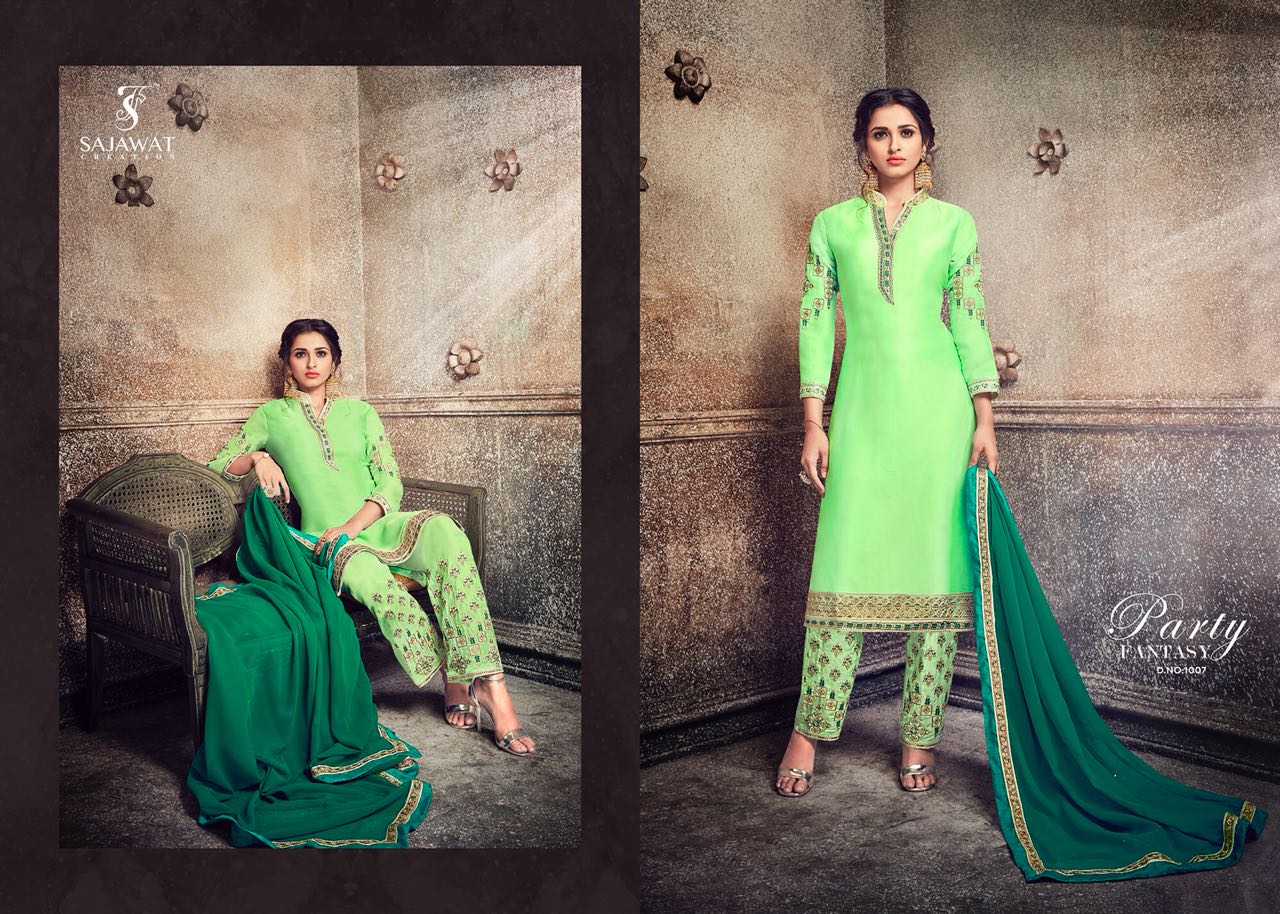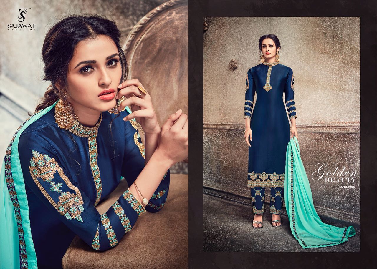 Buy Online Sajawat Fashion Silk 1001 Series Jorget Silk Salwar Kameez Catlog Wholesale Dealer And Supplier Surat 7 Pcs of Full Catalogue at Wholesale Price. Looking for Sajawat Fashion Silk 1001 Series Jorget Silk Salwar Kameez Catlog Wholesale Dealer And Supplier Surat Full Catalouge at Best Price? Buy Now Sajawat Fashion Silk 1001 Series Jorget Silk Salwar Kameez Catlog Wholesale Dealer And Supplier Surat at Wholesale Rate of Rs 8750 with Total 7 Pcs from authroized dealer and supplier of SAJAWAT Brand. Cost of Each piece is just only Rs 1250 which is very low and affordable price to resale the product in your retail store ,This is Surat based Wholesale Supplier & Dealer of SAJAWAT Brand. Click on Brand name to Know more about SAJAWAT Brand's products.Call or Whatsapp on 9898838984 for booking or enquiry