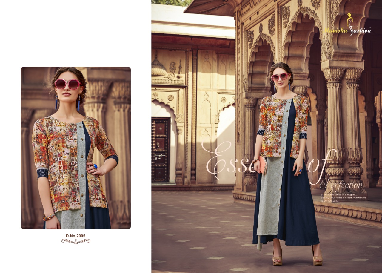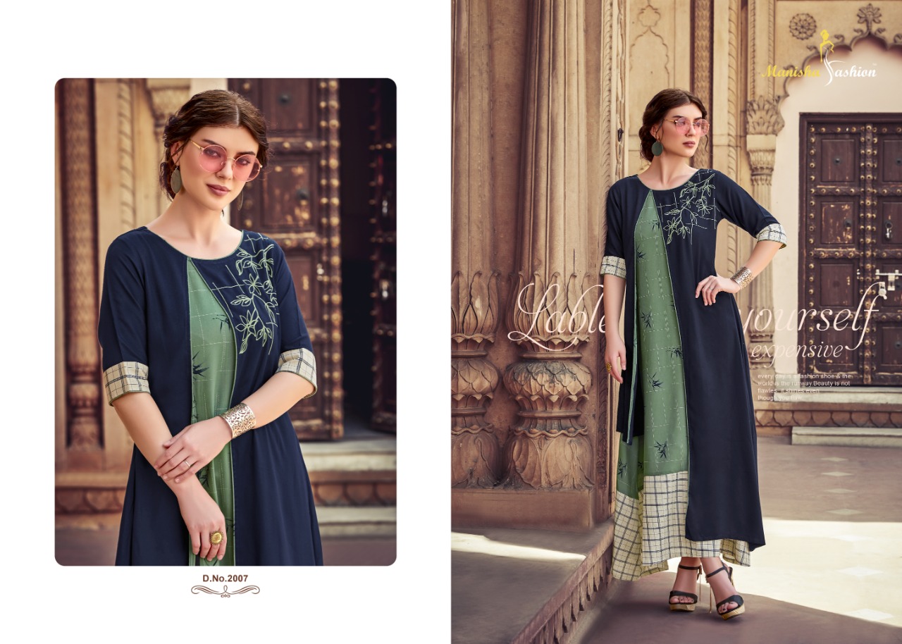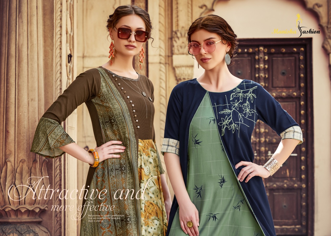 *Designer Collection Kurti* Brand : *Manisha Fashion* Catalog Name : *Samaira* Fabric : *Mix Fabric* Work : *Embroidery + Print + Embellish* Size : *M(38), L(40), XL(42), XXL(44)* No. of Pcs : *8* Price : *950/- Per Piece* + GST |