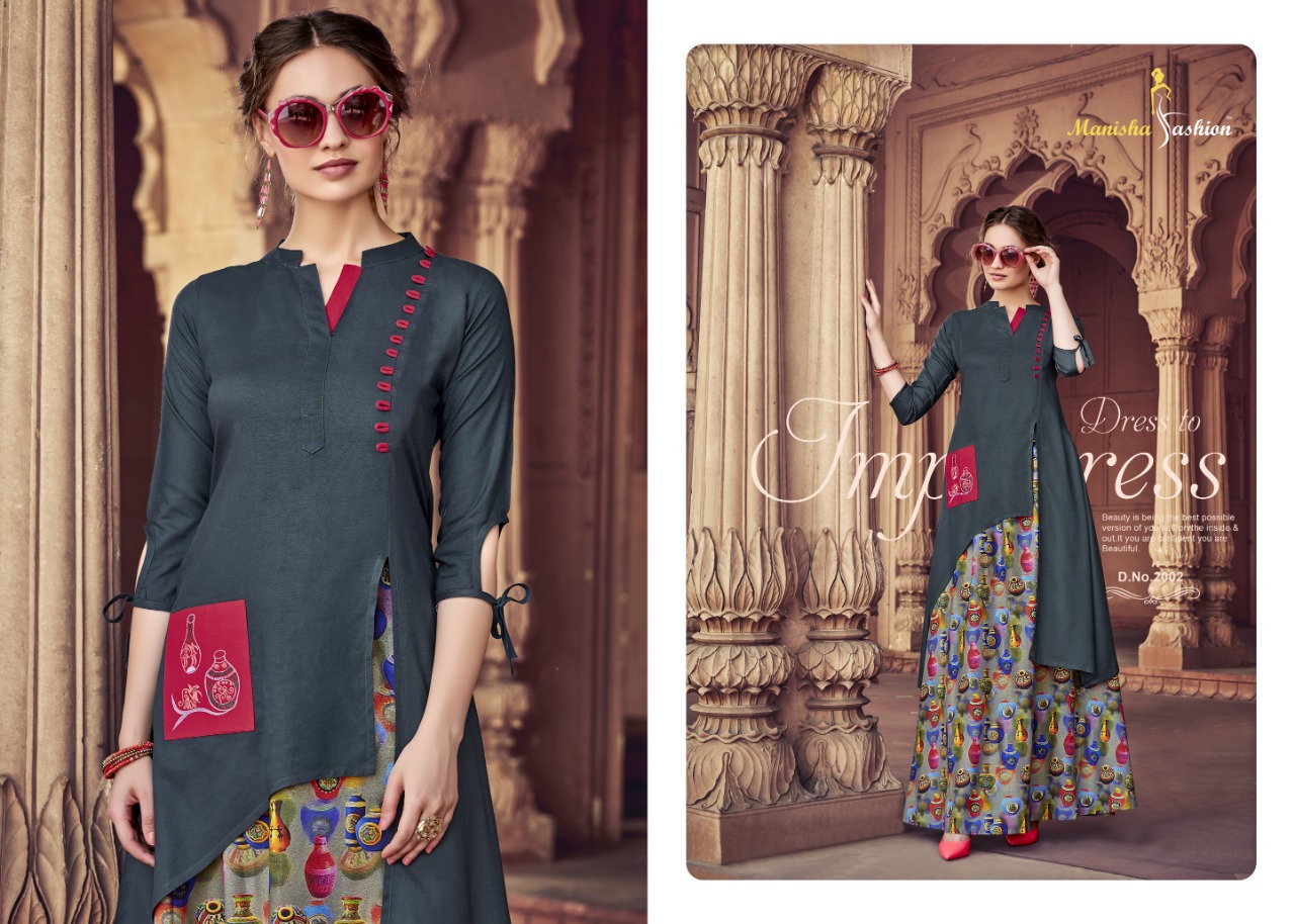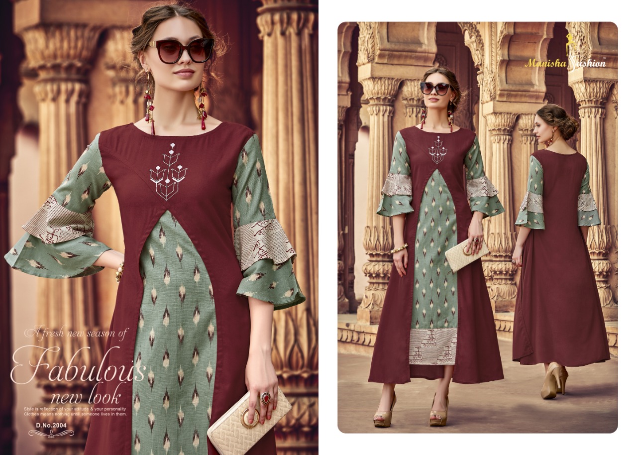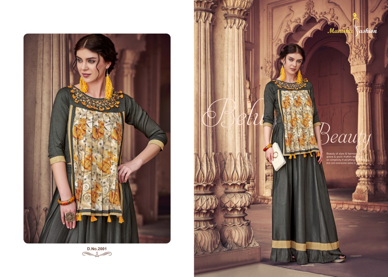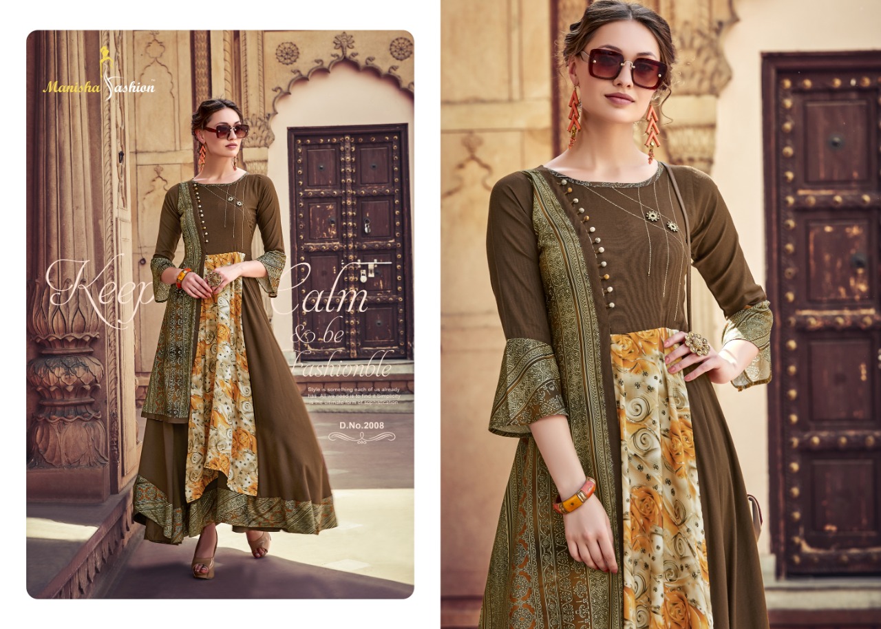 *Designer Collection Kurti* Brand : *Manisha Fashion* Catalog Name : *Samaira* Fabric : *Mix Fabric* Work : *Embroidery + Print + Embellish* Size : *M(38), L(40), XL(42), XXL(44)* No. of Pcs : *8* Price : *950/- Per Piece* + GST |