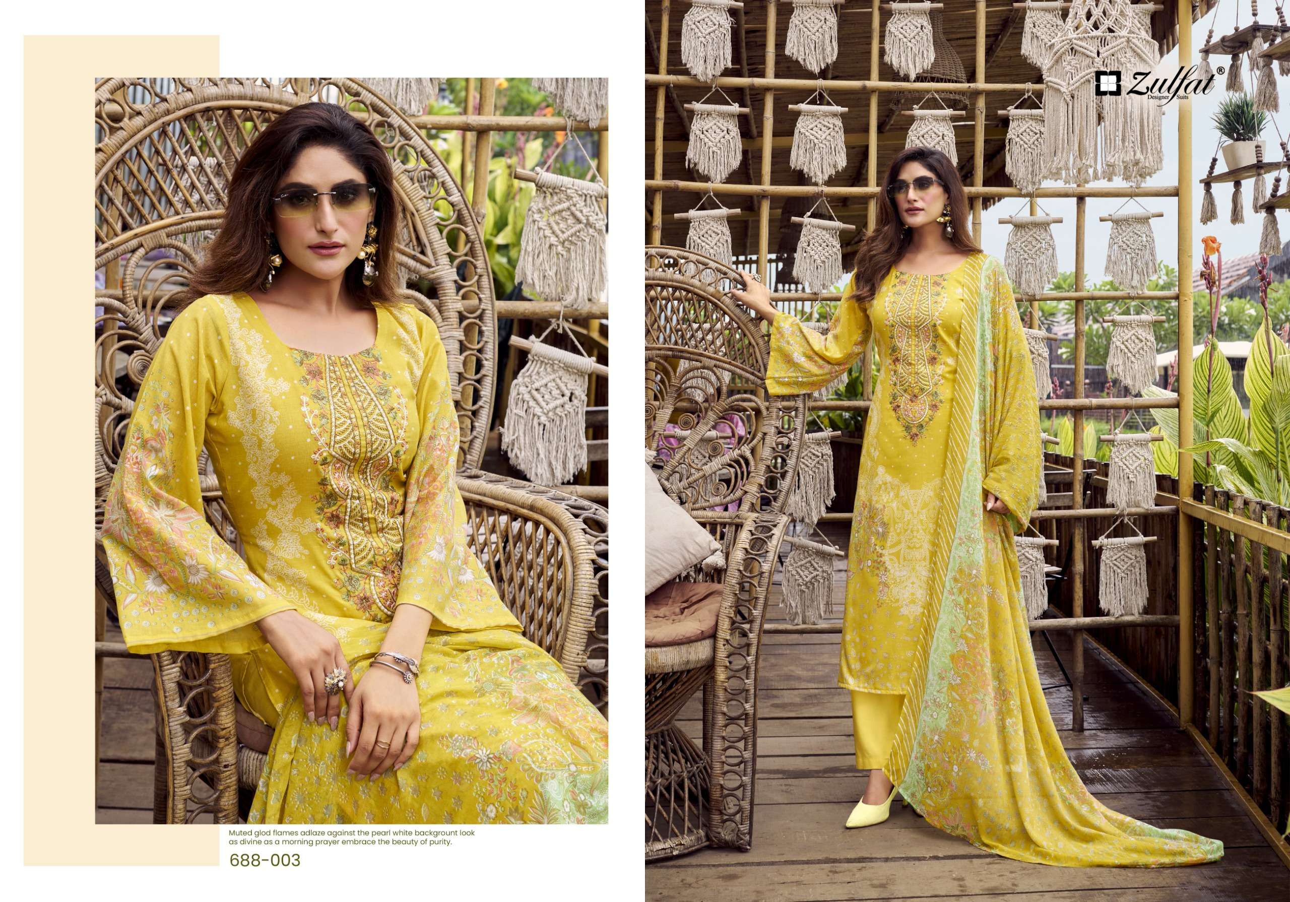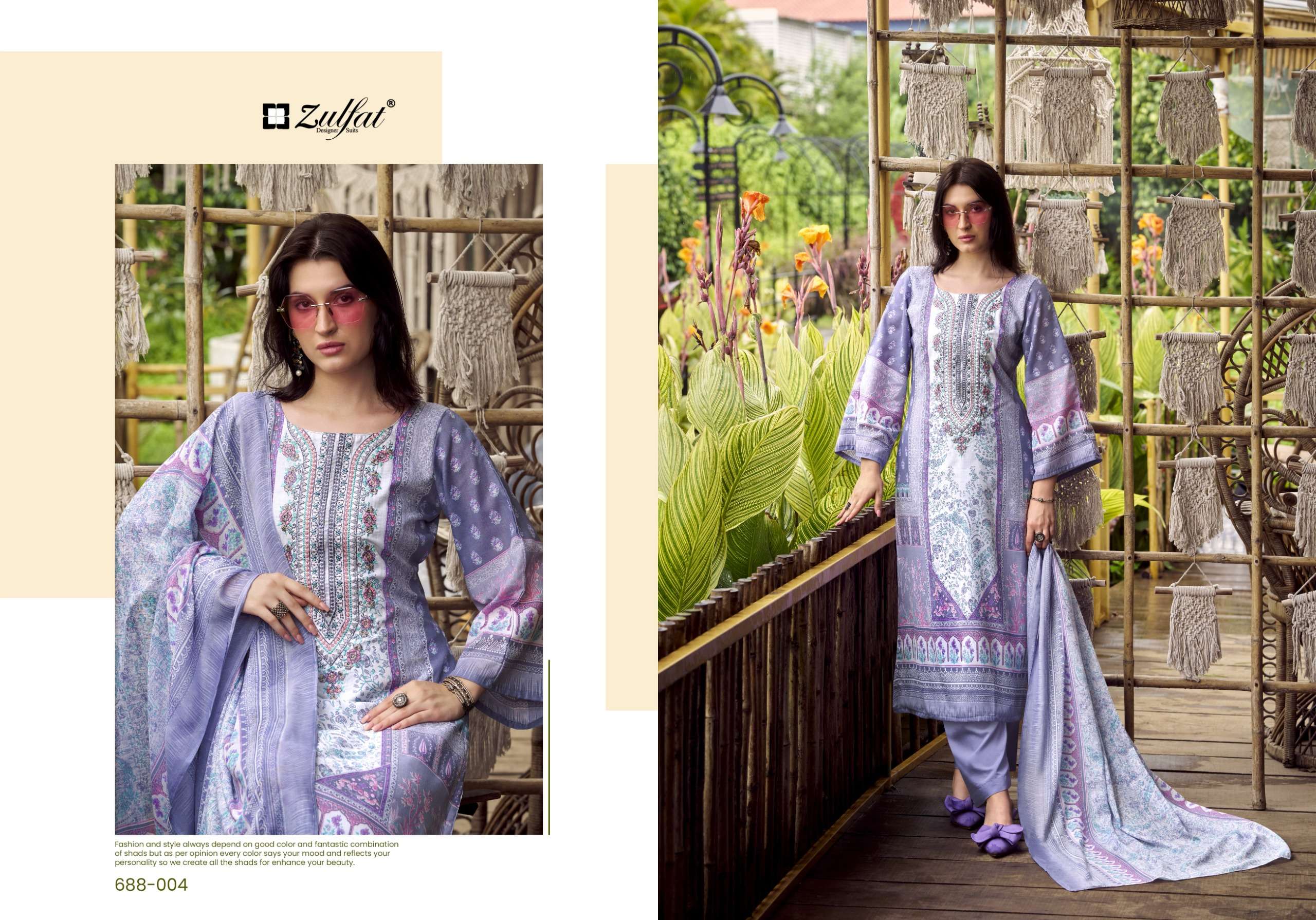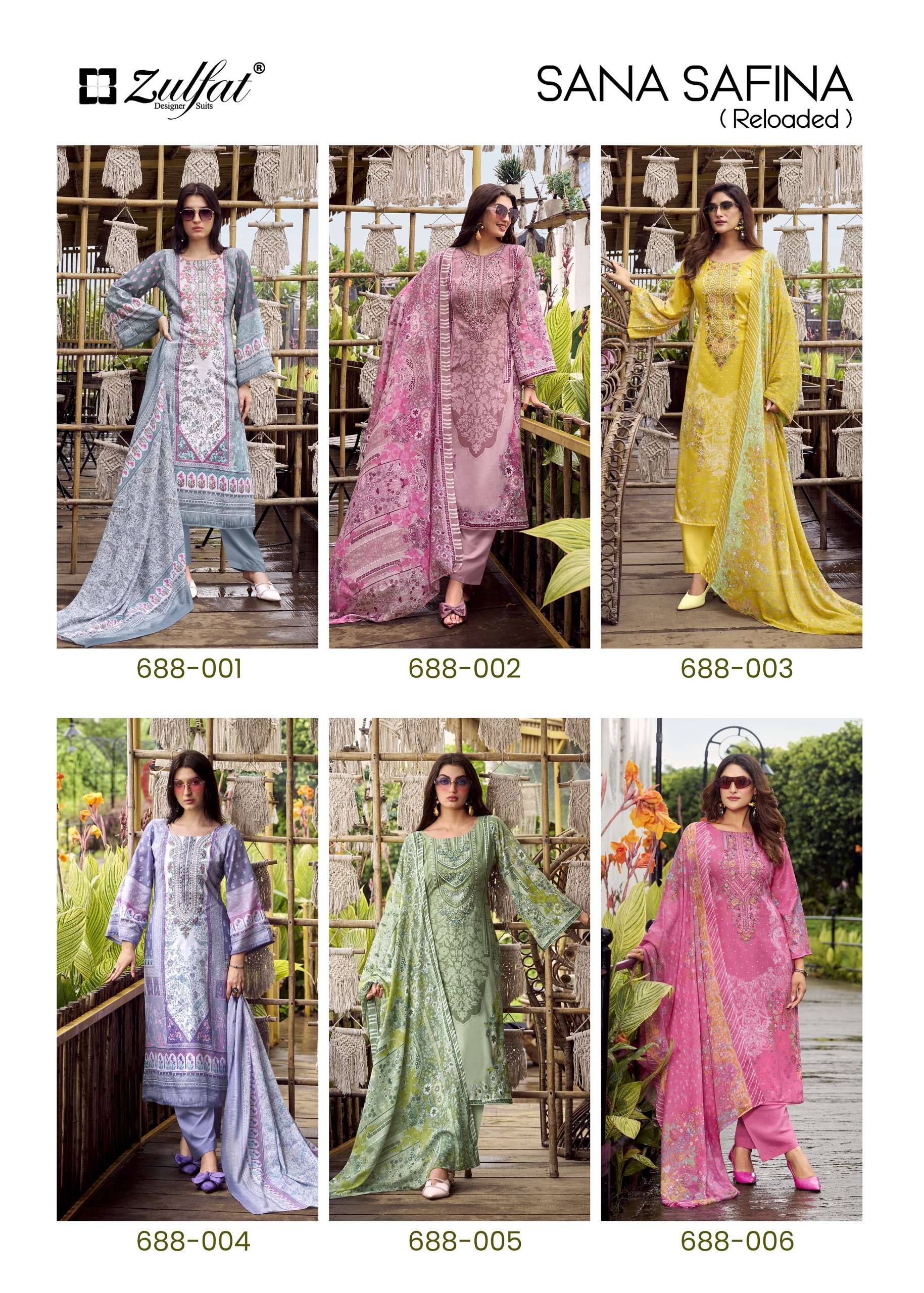 Buy Online SANA SAFINA by Zulfat Designer Suit collection manufacturer Surat 6 Pcs of Full Catalogue at Wholesale Price. Looking for SANA SAFINA by Zulfat Designer Suit collection manufacturer Surat Full Catalouge at Best Price? Buy Now SANA SAFINA by Zulfat Designer Suit collection manufacturer Surat at Wholesale Rate of Rs 2700 with Total 6 Pcs from authroized dealer and supplier of Zulfat Brand. Cost of Each piece is just only Rs 450 which is very low and affordable price to resale the product in your retail store ,This is Surat based Wholesale Supplier & Dealer of Zulfat Brand. Click on Brand name to Know more about Zulfat Brand's products.Call or Whatsapp on 9898838984 for booking or enquiry