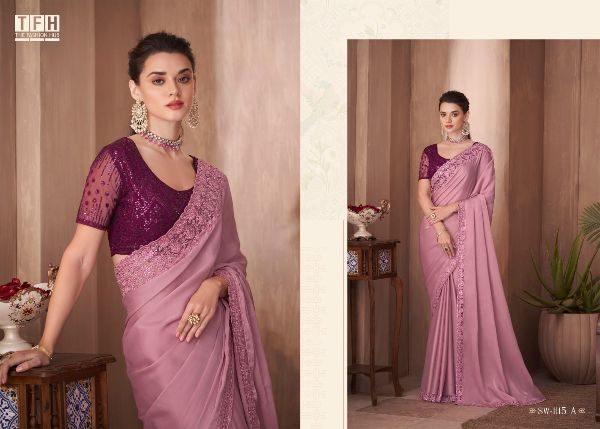?Now we present ...... Designer Party wear Concept?? Brand :- TFH Catalog :- Sandalwood 11th Edition Hits Fabric :- Soft Glass Silk, Fancy Fabric PRICE +5% GST D.NO PRICE FABRIC 1115. 1950/- Glass Silk ??Book fast ??Single also 100+ SINGLE |