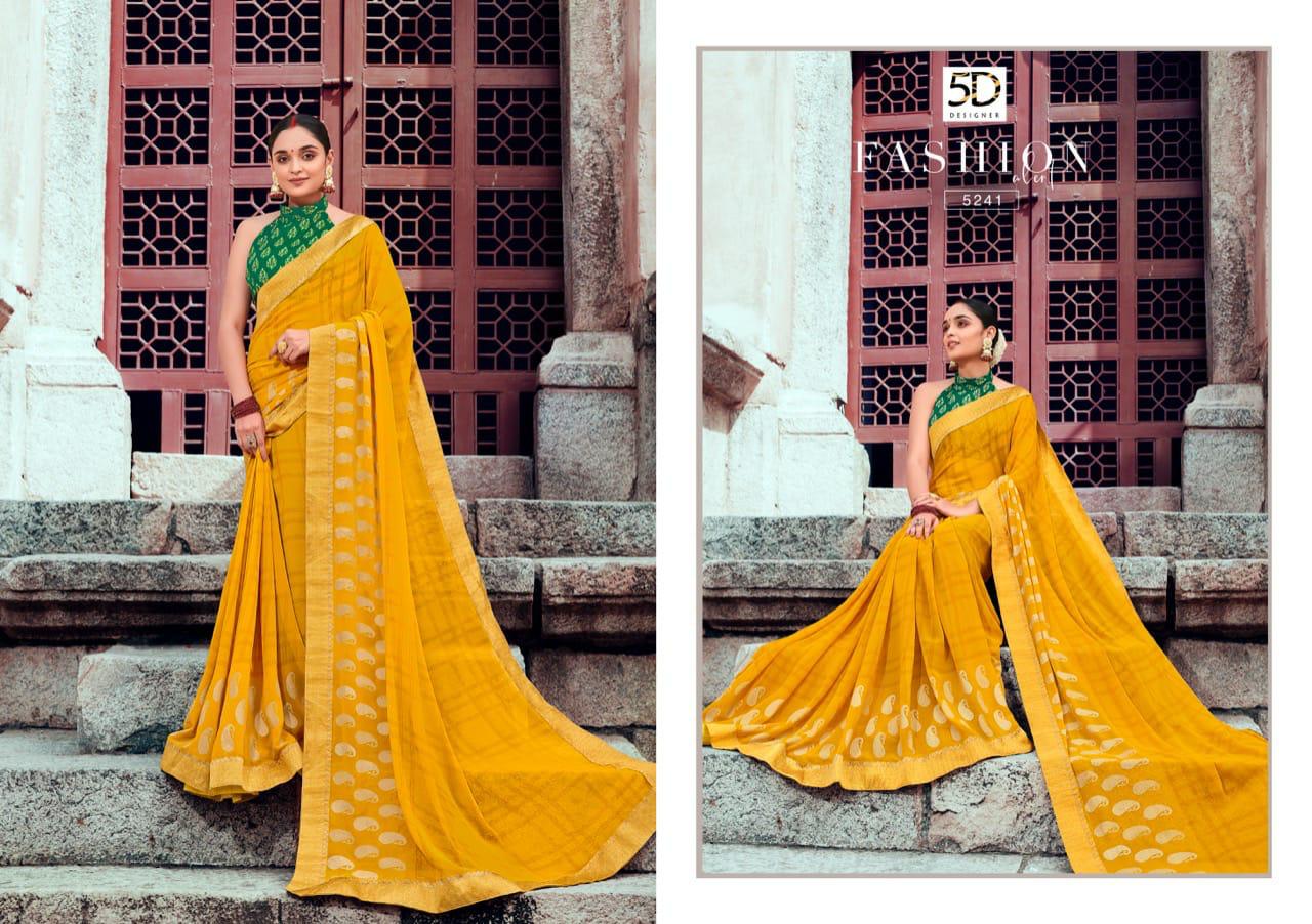 _NEW INTRODUCING_ _*SANGINI-2*_ _Brand:- *5D DESIGNER*_ _Rate:- *605-/* _Fabric:- *PURE GEORGATE WITH PRINTED BLOUSE AND WEAVING LACE* _Total Designs:- *10*_ _Packing pcs :- set to set _Matching :- *SINGLE COLOR*_ _Cut :- *6/30mtr* Delivery 2 days |