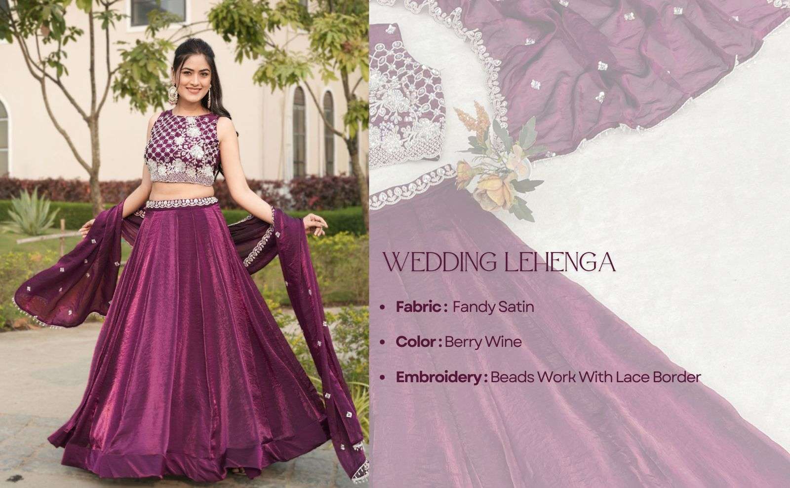 *Steal the spotlight in Wine! ✨ Presenting our latest arrival: This elegant deep Wine lehenga features a heavily beaded unstitched Blouse, lustrous silk skirt with a matching Bead and embroidered waistband and a coordinated dupatta.*✨👜
