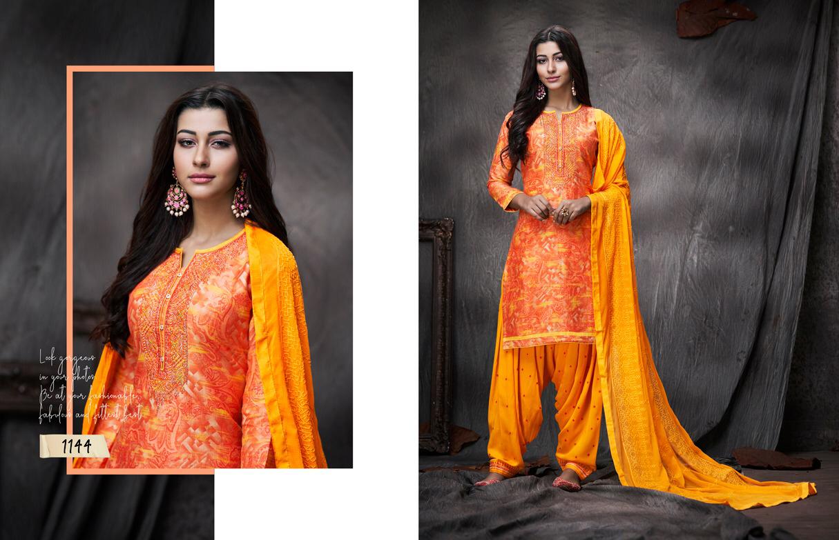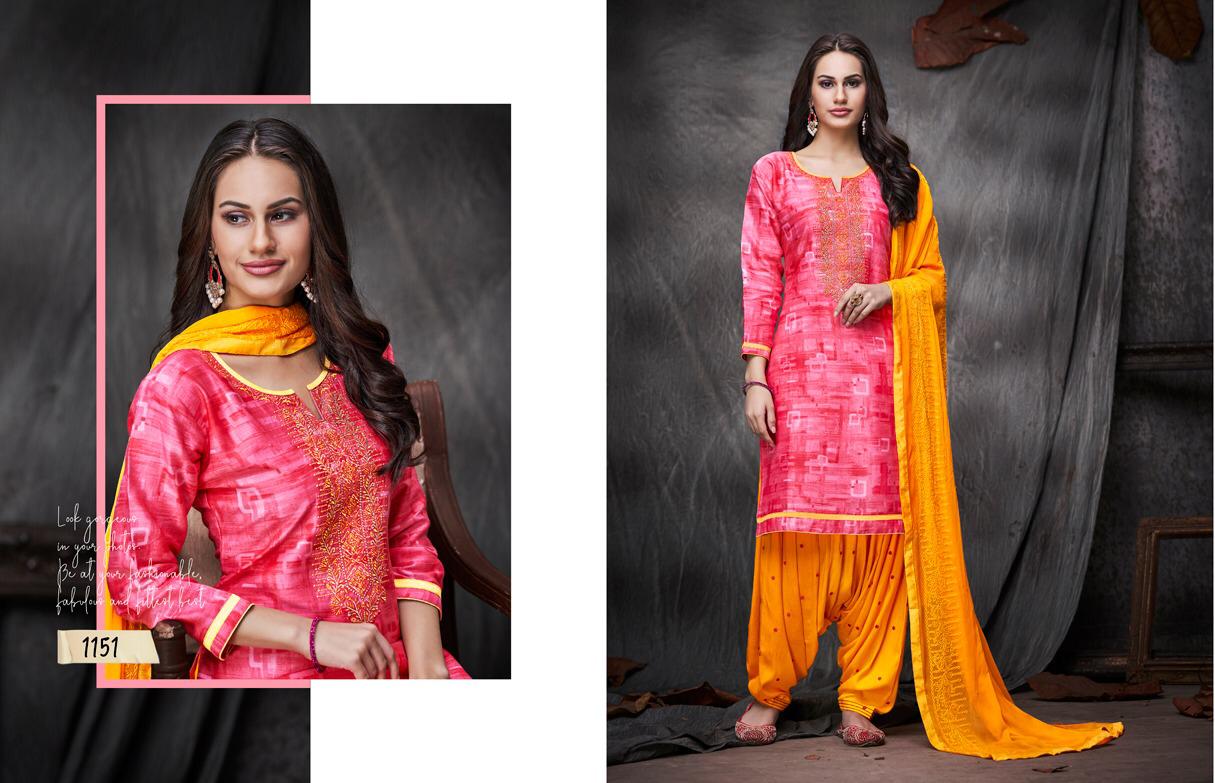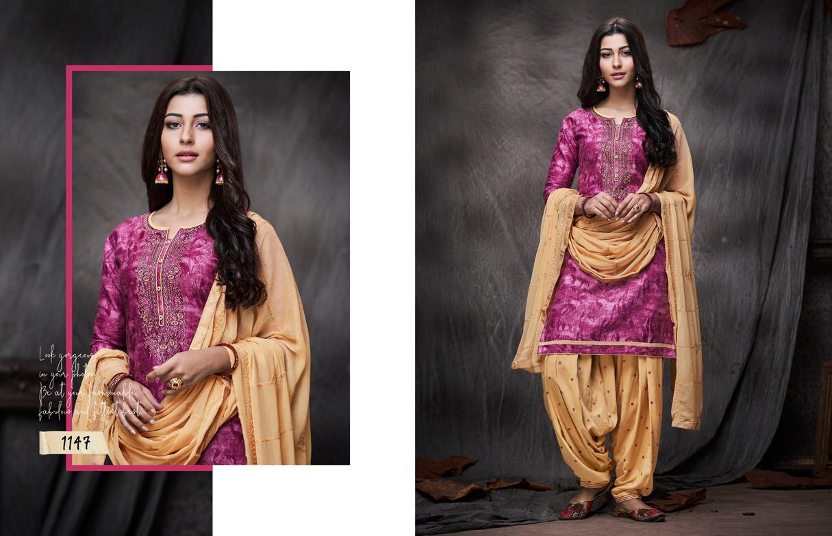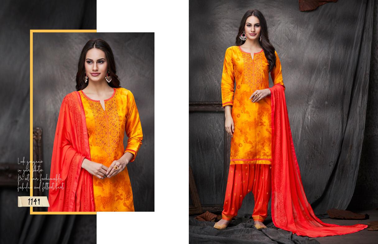 ? *Kajree* has launched _Catalog name_ : *Saptrang by Patiyala Vol - 4* ? _Fabric Details_ ? ?Top :- COTTON SATIN PRINT WITH WORK WITH COTTON INNER ?Bottom :- PURE RAYON WITH EMBROIDERY WORK ?Duppatta :- NAZNEEN WITH WORK ?Total Design :- 12 ?Size:- L-40, XL-42, XXL-44 Rate -1055 per pcs . Set To Set. GST 5 Percent Extra. ?Dispatching 5 to 6 days later ?Booking started from now... ?Order yours soon.... |
