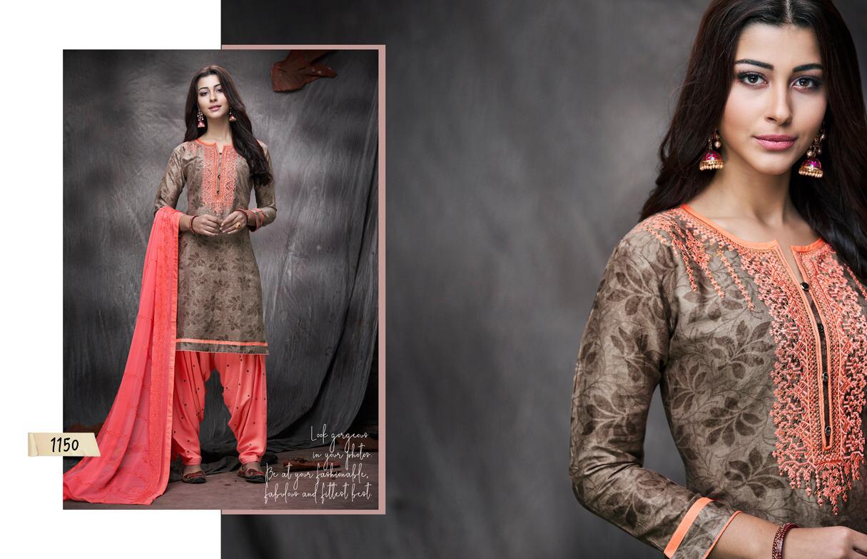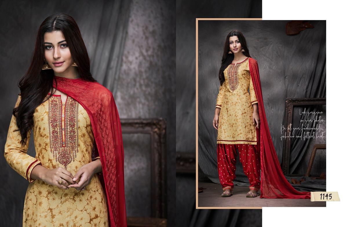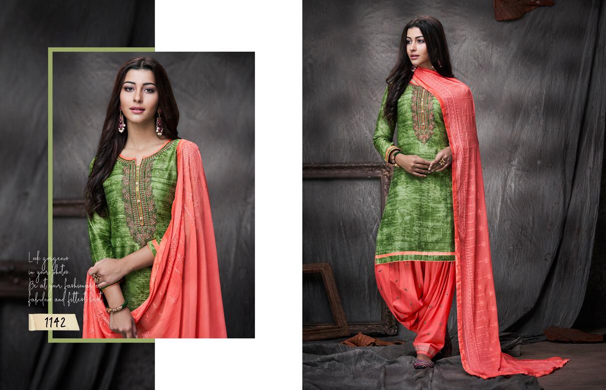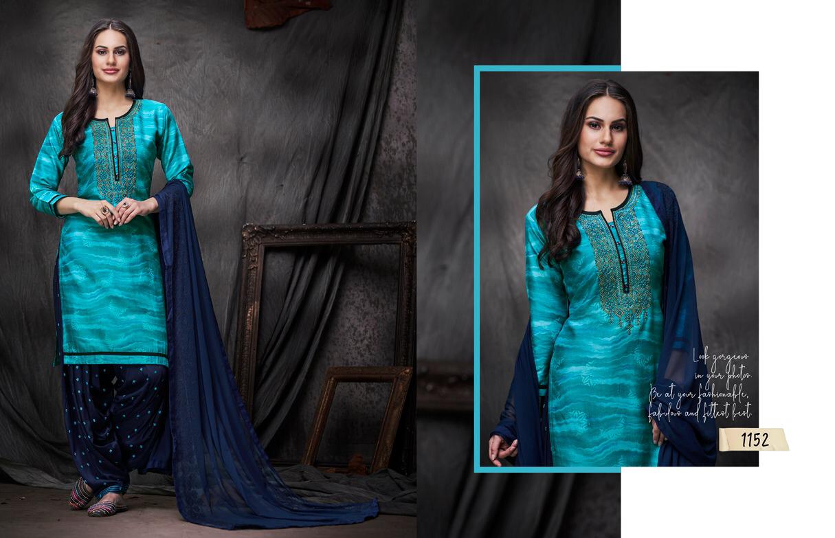 ? *Kajree* has launched _Catalog name_ : *Saptrang by Patiyala Vol - 4* ? _Fabric Details_ ? ?Top :- COTTON SATIN PRINT WITH WORK WITH COTTON INNER ?Bottom :- PURE RAYON WITH EMBROIDERY WORK ?Duppatta :- NAZNEEN WITH WORK ?Total Design :- 12 ?Size:- L-40, XL-42, XXL-44 Rate -1055 per pcs . Set To Set. GST 5 Percent Extra. ?Dispatching 5 to 6 days later ?Booking started from now... ?Order yours soon.... |
