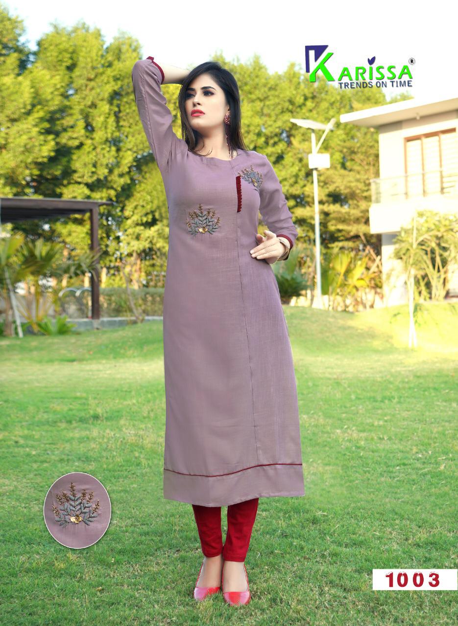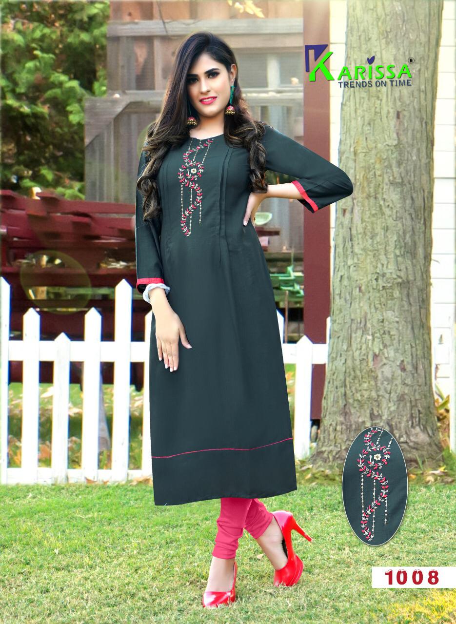 This seasion karissa brand is bringing the Kurties of cool prices comfortable to wear for making all the days good. Brand : KARISSA Catalog : SARGAM Design : 8 Fabric : havvy Rayon slub Quality : liva premium Work : khatli work Size : M(38),L(40), XL(42), XXL(44),3XL(46) Lenght : "46Â? Rate : Rs. 450/- +5% GST Dispatch Time : 8 February 20 Book Your Order Now |