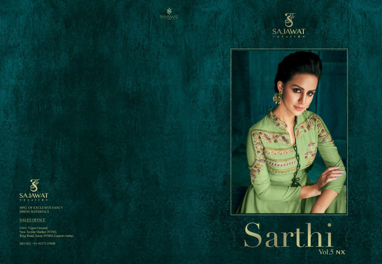 Buy Online Sarthi Vol 5 Nx Muslin Designer Ready To Wear Suits Wholesale Supplier Gujarat 4 Pcs of Full Catalogue at Wholesale Price. Looking for Sarthi Vol 5 Nx Muslin Designer Ready To Wear Suits Wholesale Supplier Gujarat Full Catalouge at Best Price? Buy Now Sarthi Vol 5 Nx Muslin Designer Ready To Wear Suits Wholesale Supplier Gujarat at Wholesale Rate of Rs 5400 with Total 4 Pcs from authroized dealer and supplier of SAJAWAT Brand. Cost of Each piece is just only Rs 1350 which is very low and affordable price to resale the product in your retail store ,This is Surat based Wholesale Supplier & Dealer of SAJAWAT Brand. Click on Brand name to Know more about SAJAWAT Brand's products.Call or Whatsapp on 9898838984 for booking or enquiry