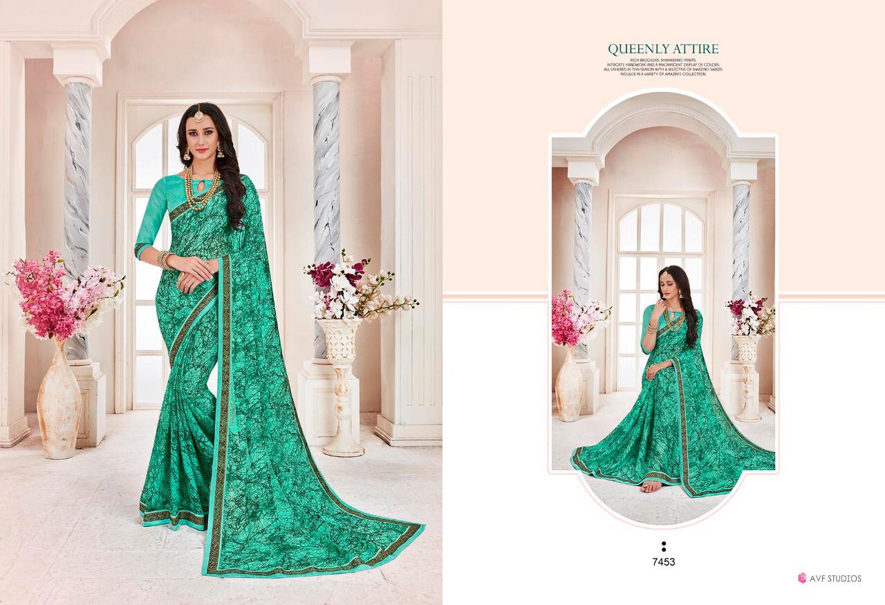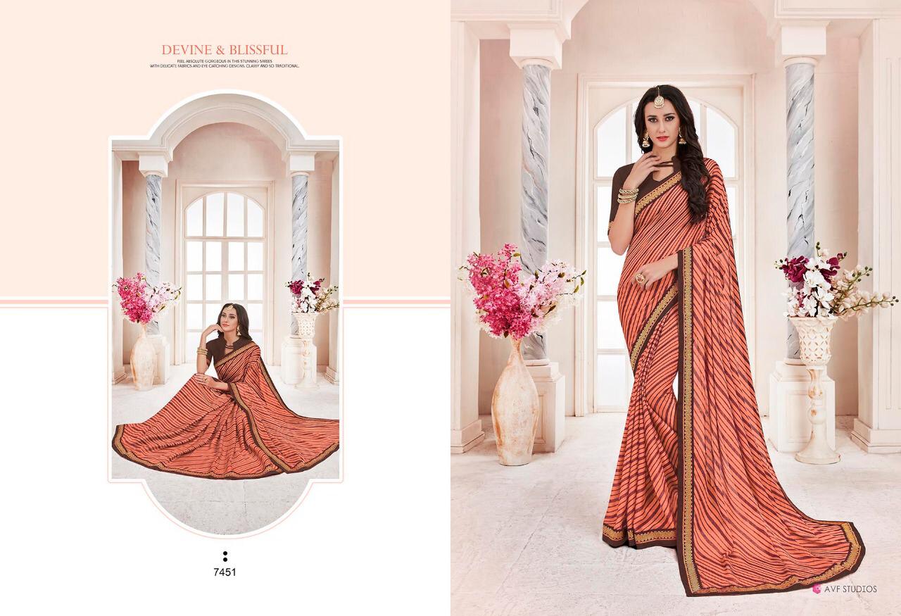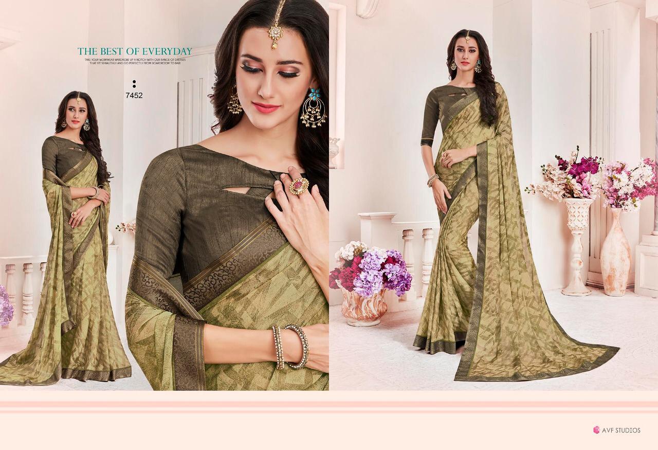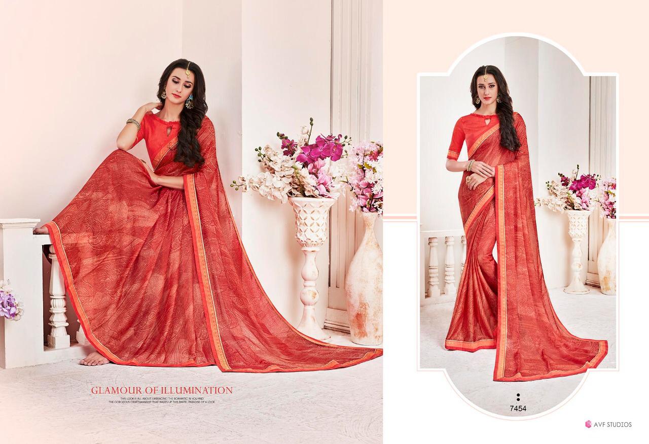 Buy Online Satva By Mintorsi Varsiddhi 7451 Series Fancy Chiffon Printed Saree Catlog Wholesaler Surat 11 Pcs of Full Catalogue at Wholesale Price. Looking for Satva By Mintorsi Varsiddhi 7451 Series Fancy Chiffon Printed Saree Catlog Wholesaler Surat Full Catalouge at Best Price? Buy Now Satva By Mintorsi Varsiddhi 7451 Series Fancy Chiffon Printed Saree Catlog Wholesaler Surat at Wholesale Rate of Rs 7821 with Total 11 Pcs from authroized dealer and supplier of VARSIDDHI SAREE Brand. Cost of Each piece is just only Rs 711 which is very low and affordable price to resale the product in your retail store ,This is Surat based Wholesale Supplier & Dealer of VARSIDDHI SAREE Brand. Click on Brand name to Know more about VARSIDDHI SAREE Brand's products.Call or Whatsapp on 9898838984 for booking or enquiry