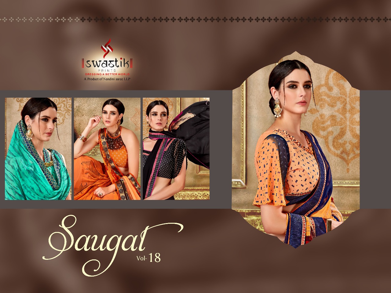 Saugat Vol 18 By Swastik Prints 18001 Series Fancy Weightless Printed Saree Catlog Wholesale Dealer Surat