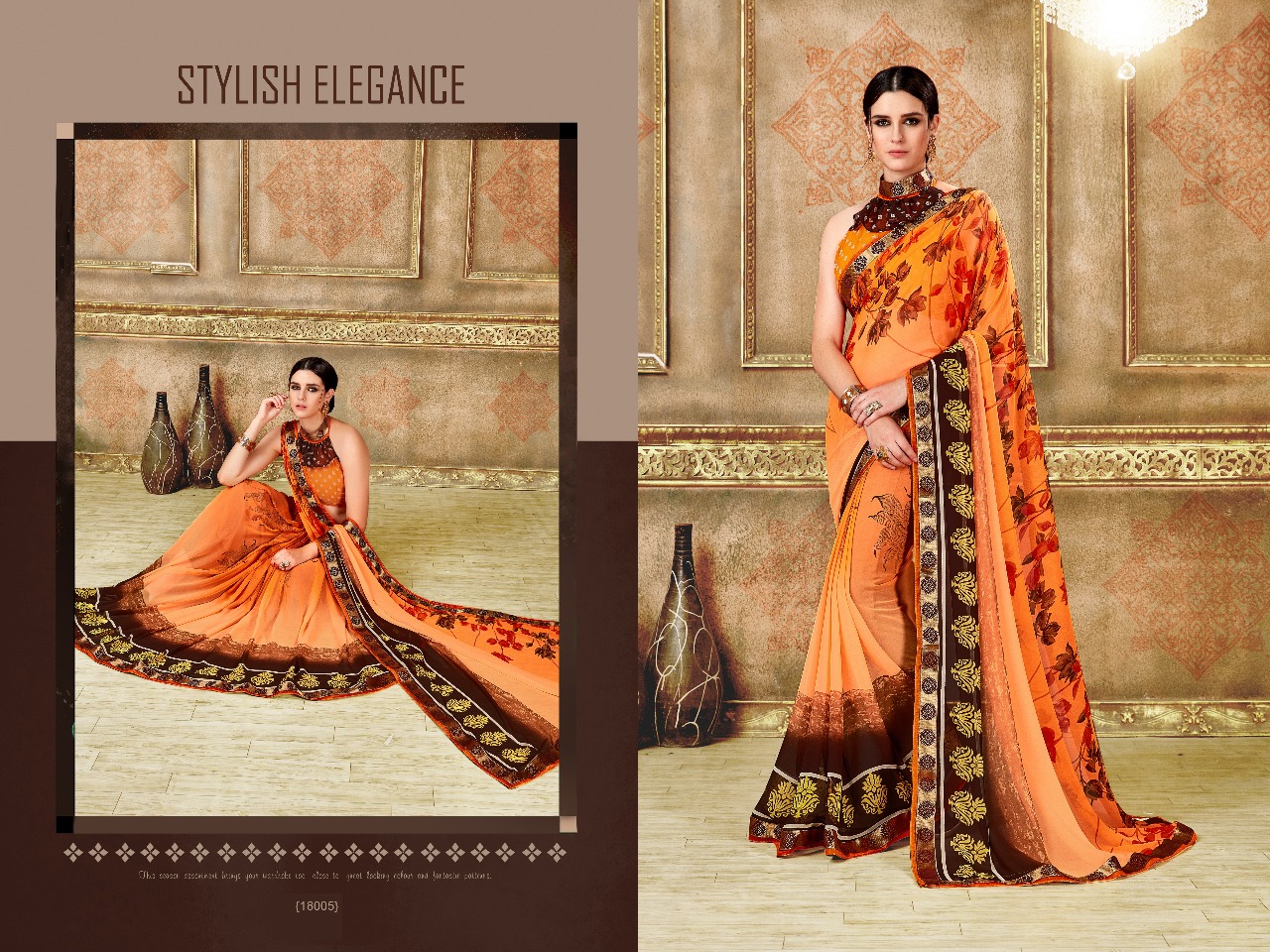 Buy Online Saugat Vol 18 By Swastik Prints 18001 Series Fancy Weightless Printed Saree Catlog Wholesale Dealer Surat 12 Pcs of Full Catalogue at Wholesale Price. Looking for Saugat Vol 18 By Swastik Prints 18001 Series Fancy Weightless Printed Saree Catlog Wholesale Dealer Surat Full Catalouge at Best Price? Buy Now Saugat Vol 18 By Swastik Prints 18001 Series Fancy Weightless Printed Saree Catlog Wholesale Dealer Surat at Wholesale Rate of Rs 5388 with Total 12 Pcs from authroized dealer and supplier of NITYA NX Brand. Cost of Each piece is just only Rs 449 which is very low and affordable price to resale the product in your retail store ,This is Surat based Wholesale Supplier & Dealer of NITYA NX Brand. Click on Brand name to Know more about NITYA NX Brand's products.Call or Whatsapp on 9898838984 for booking or enquiry