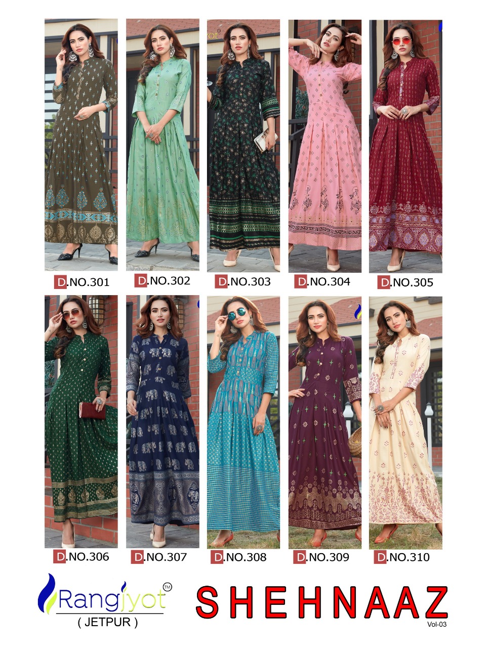 Sehnaaz Vol 3 By Rangjyot Designer Kurtis Wholesale Dealer And Exporter India