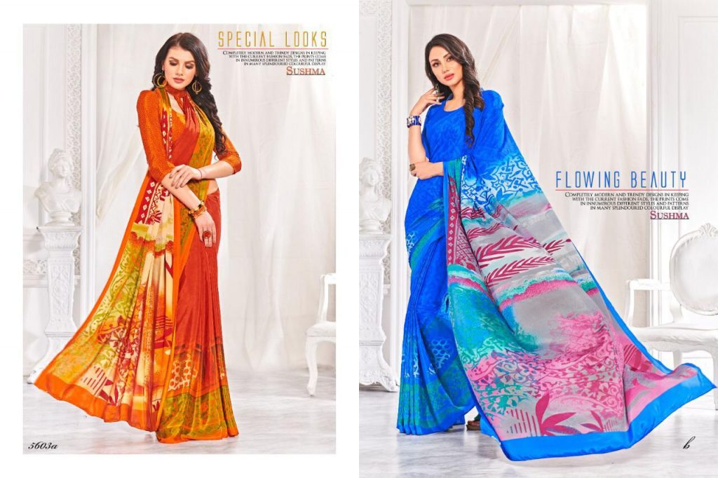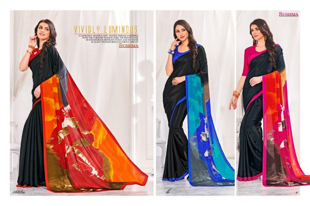 Buy Online Selfy Crape By Sushma Crepe Printed Sarees Wholesale Supplier And Dealer Surat 20 Pcs of Full Catalogue at Wholesale Price. Looking for Selfy Crape By Sushma Crepe Printed Sarees Wholesale Supplier And Dealer Surat Full Catalouge at Best Price? Buy Now Selfy Crape By Sushma Crepe Printed Sarees Wholesale Supplier And Dealer Surat at Wholesale Rate of Rs 12100 with Total 20 Pcs from authroized dealer and supplier of SUSHMA Brand. Cost of Each piece is just only Rs 605 which is very low and affordable price to resale the product in your retail store ,This is Surat based Wholesale Supplier & Dealer of SUSHMA Brand. Click on Brand name to Know more about SUSHMA Brand's products.Call or Whatsapp on 9898838984 for booking or enquiry