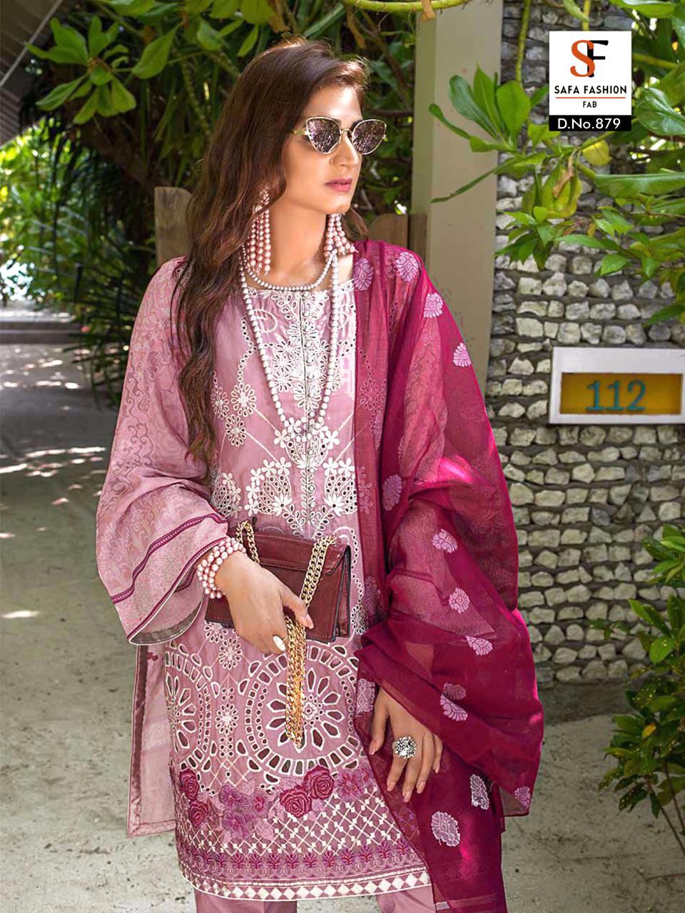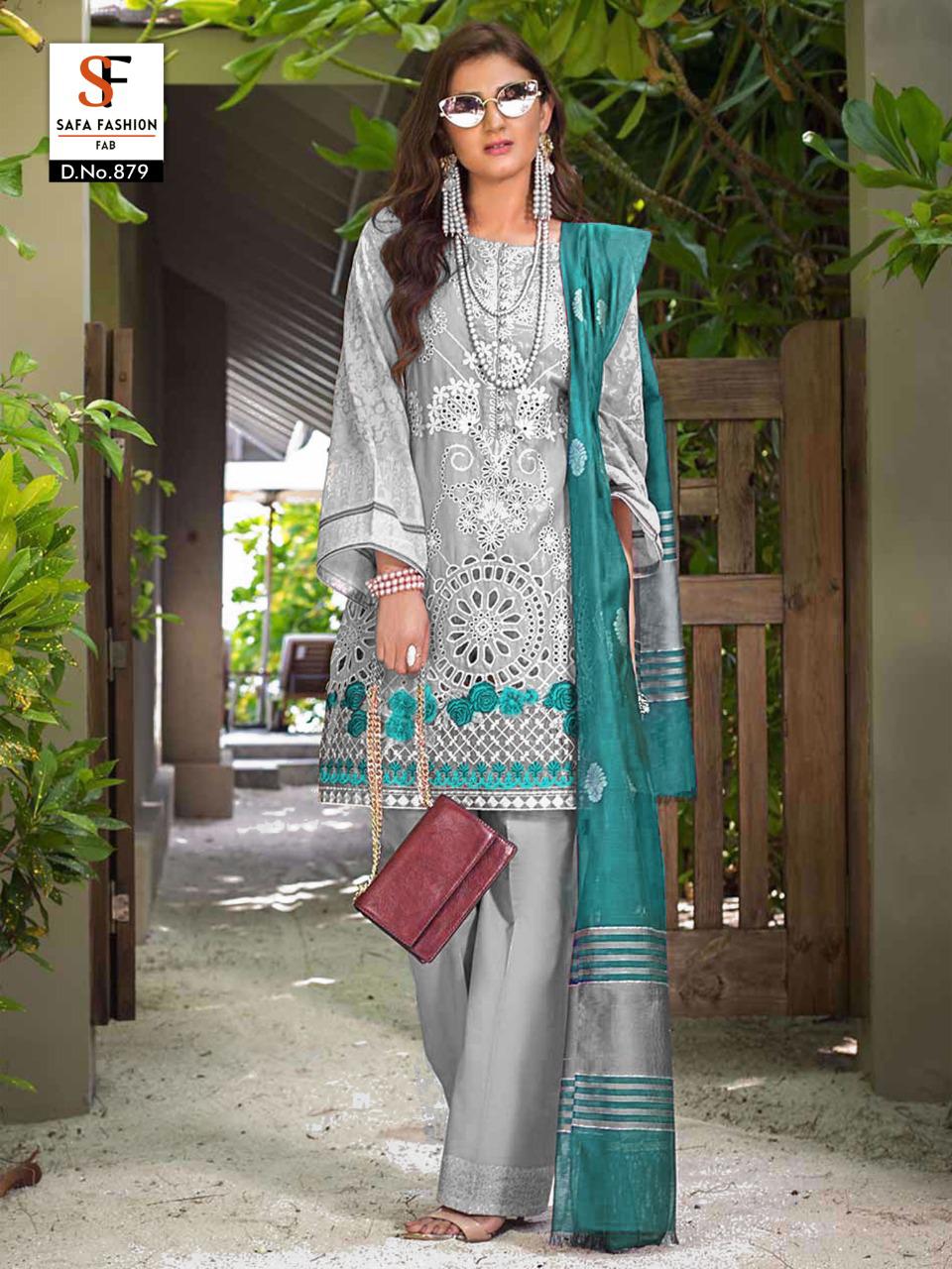 Buy Online Sf 879 By Safa Fashion Designer Party Wear Suits Wholesale Supplier Gujarat 2 Pcs of Full Catalogue at Wholesale Price. Looking for Sf 879 By Safa Fashion Designer Party Wear Suits Wholesale Supplier Gujarat Full Catalouge at Best Price? Buy Now Sf 879 By Safa Fashion Designer Party Wear Suits Wholesale Supplier Gujarat at Wholesale Rate of Rs 1900 with Total 2 Pcs from authroized dealer and supplier of Brand. Cost of Each piece is just only Rs 950 which is very low and affordable price to resale the product in your retail store ,This is Surat based Wholesale Supplier & Dealer of Brand. Click on Brand name to Know more about Brand's products.Call or Whatsapp on 9898838984 for booking or enquiry