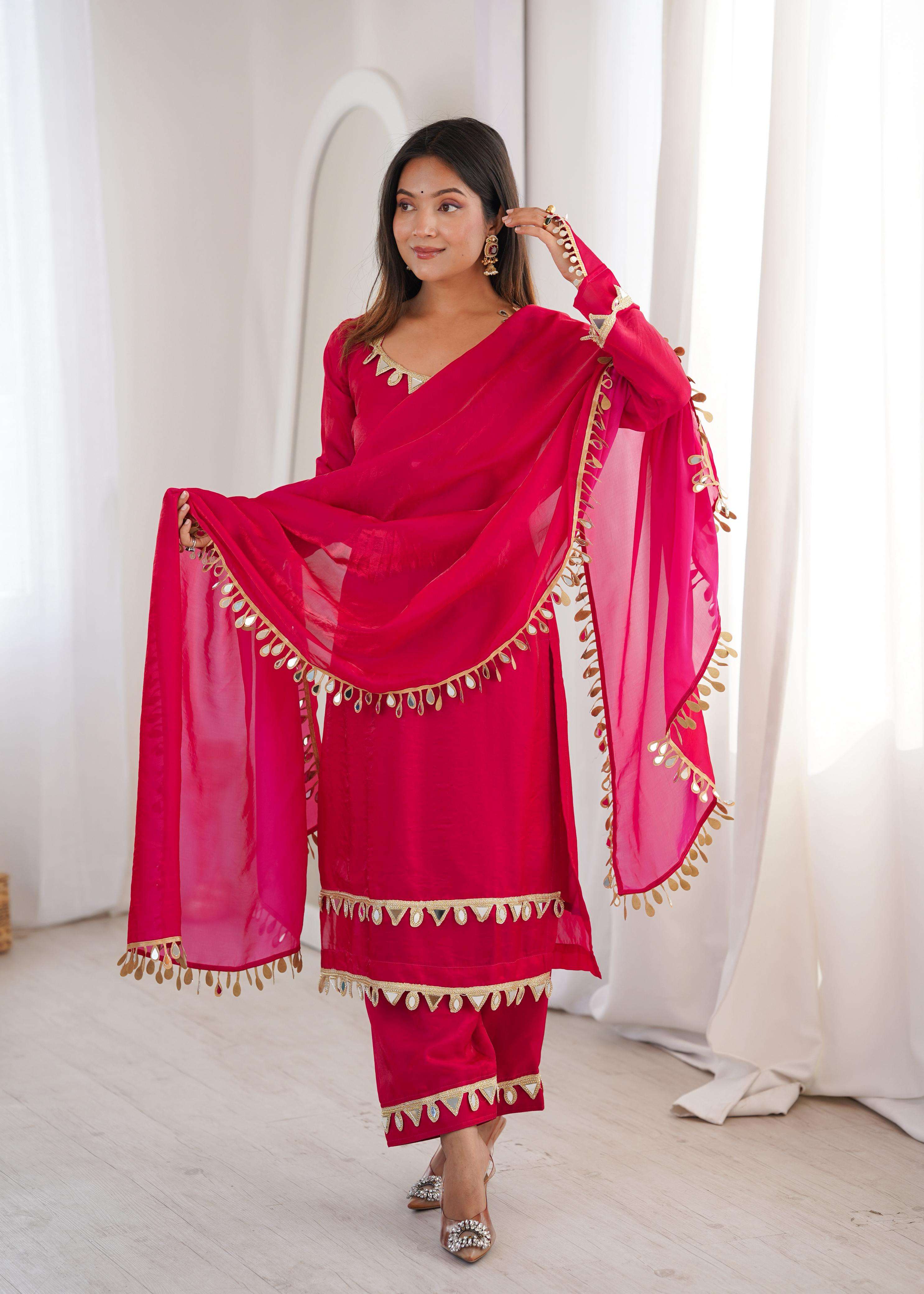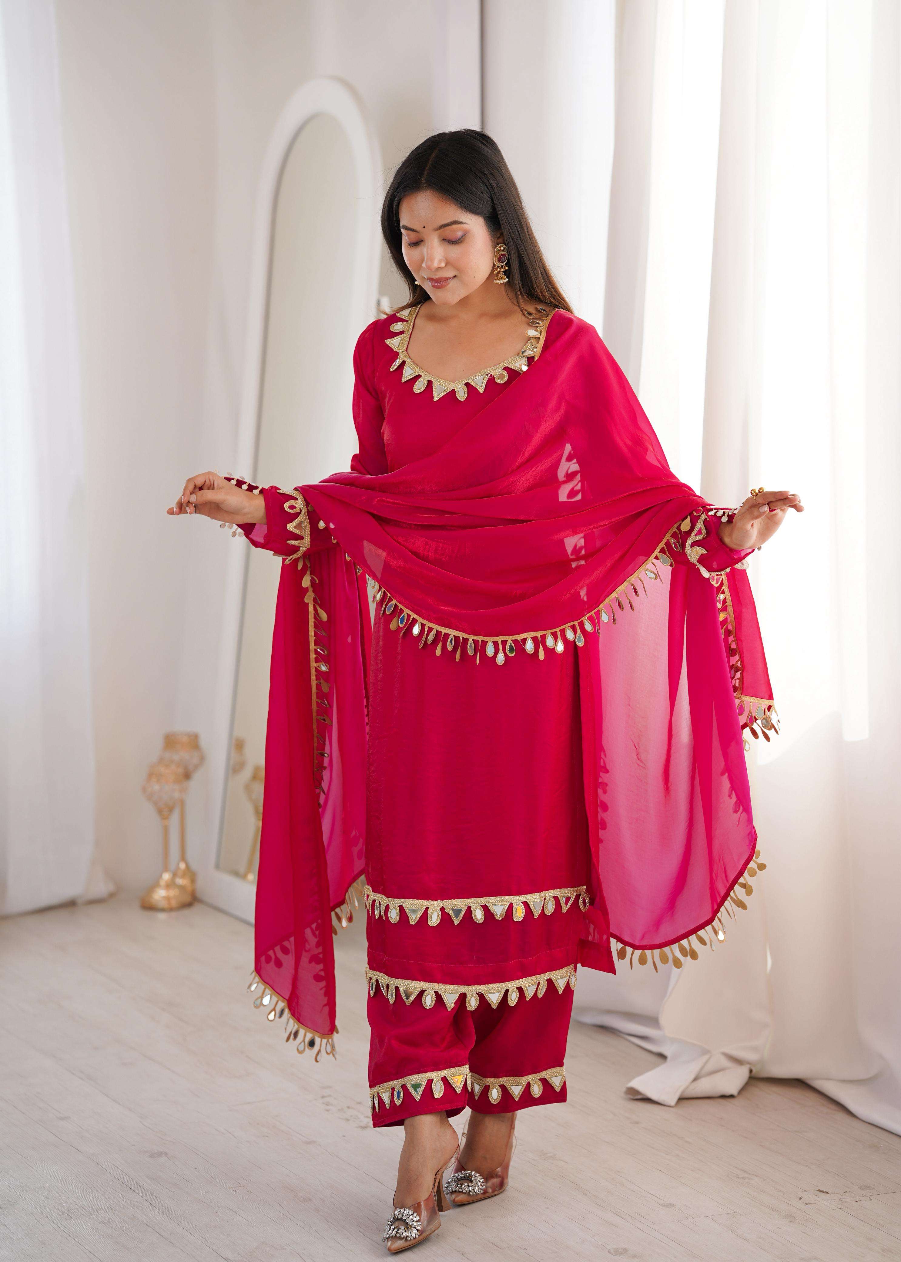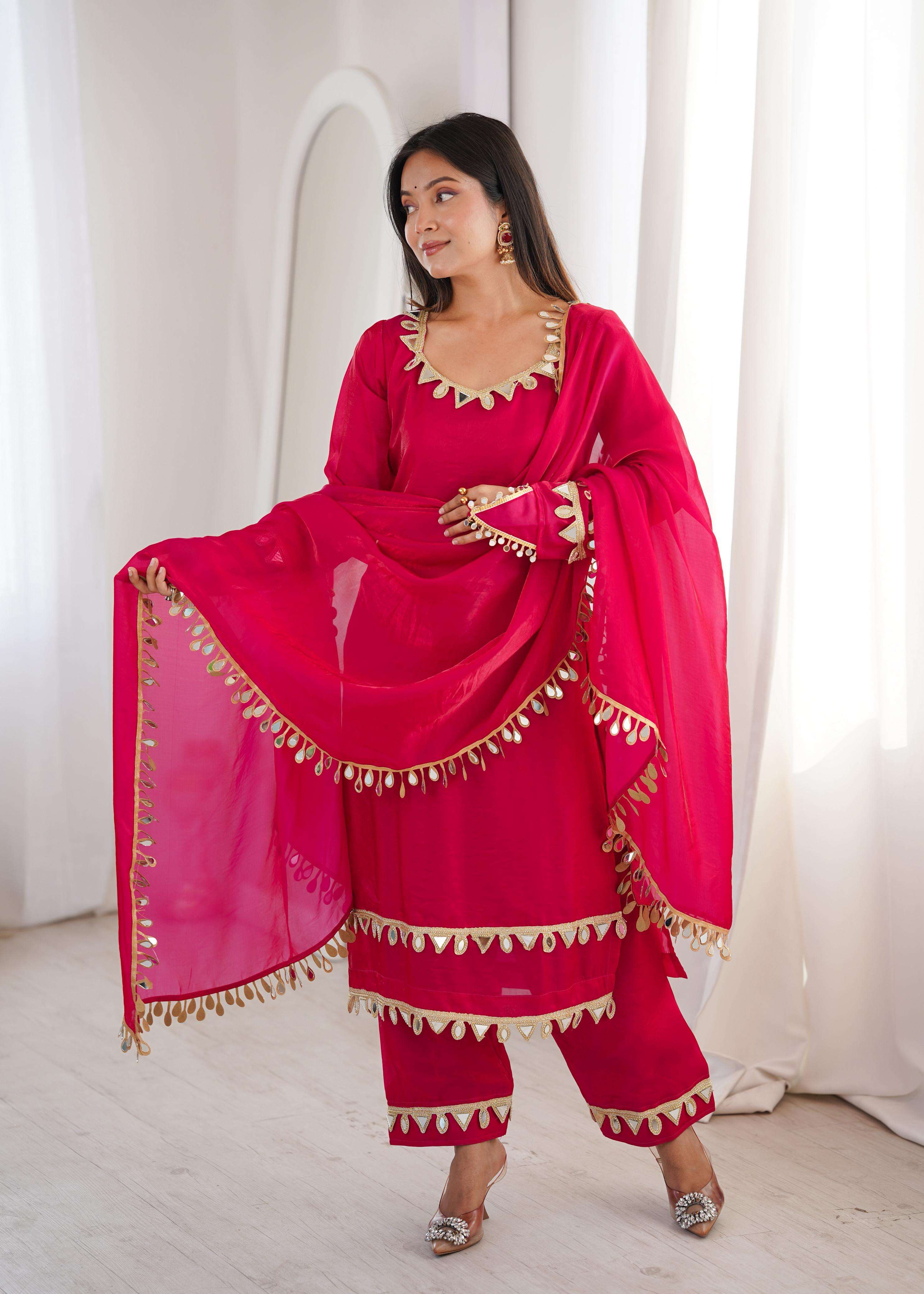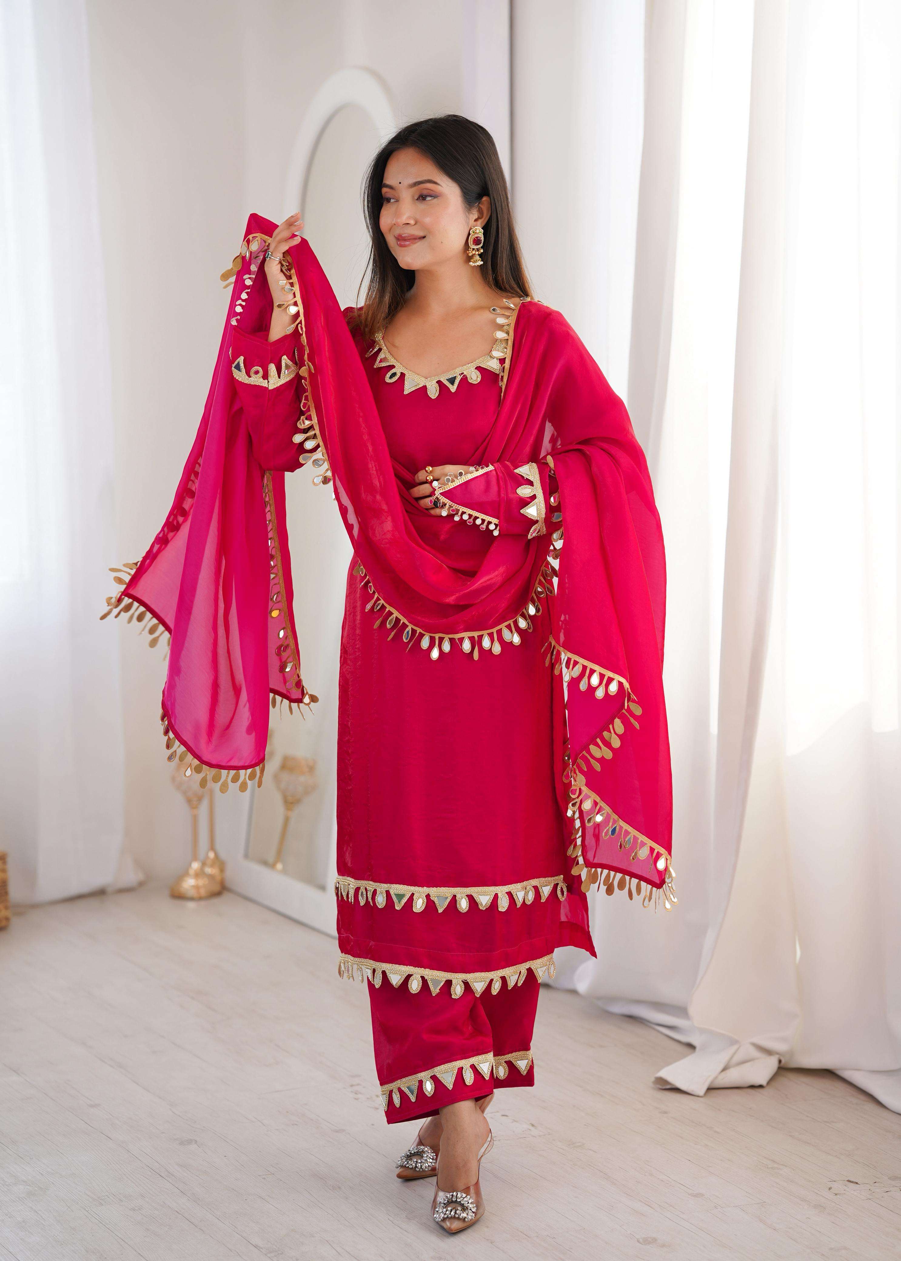 *DUPATTA*: FENDY SILK WITH REAL MIRROR WORK LACE (2.3 METER)