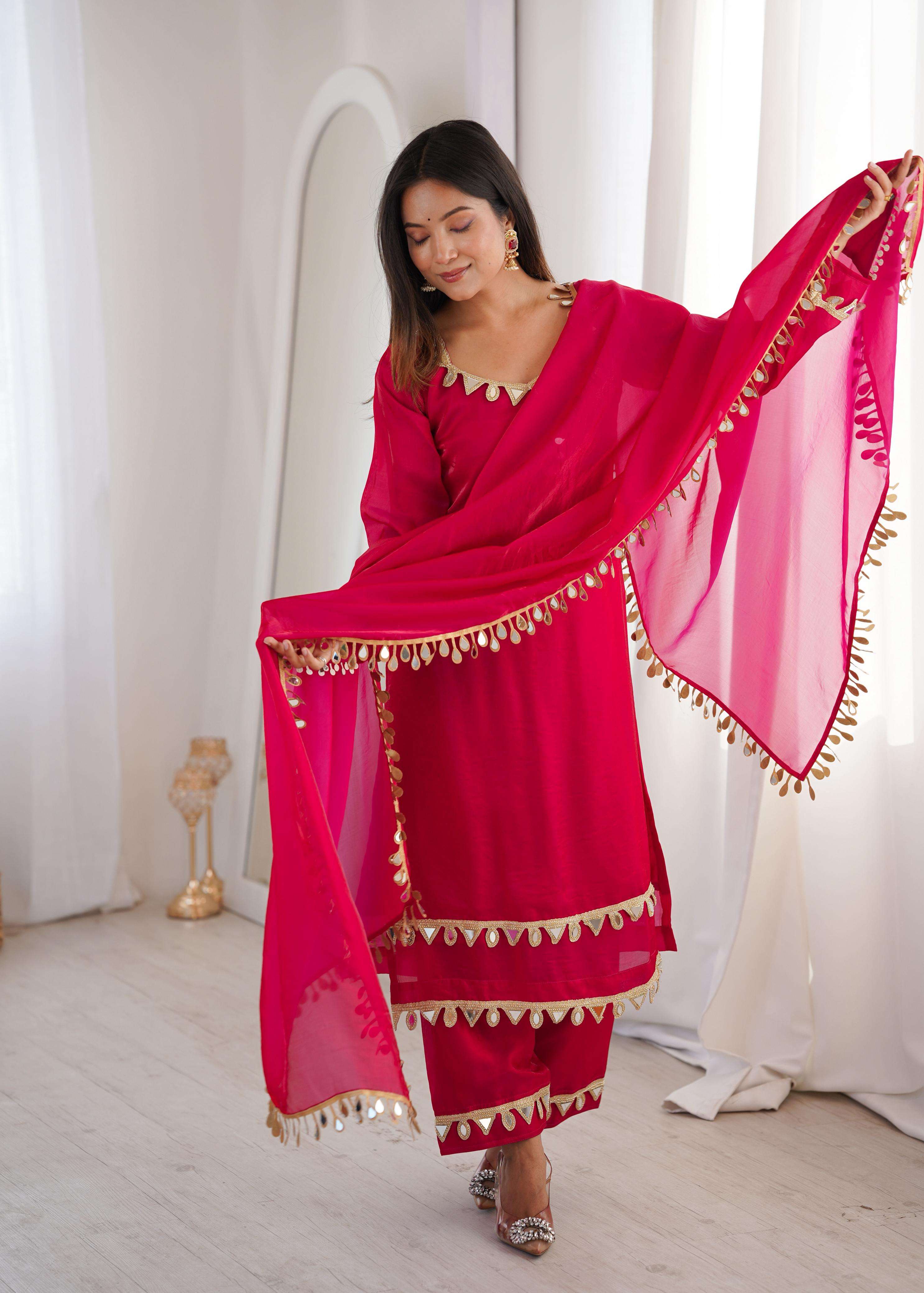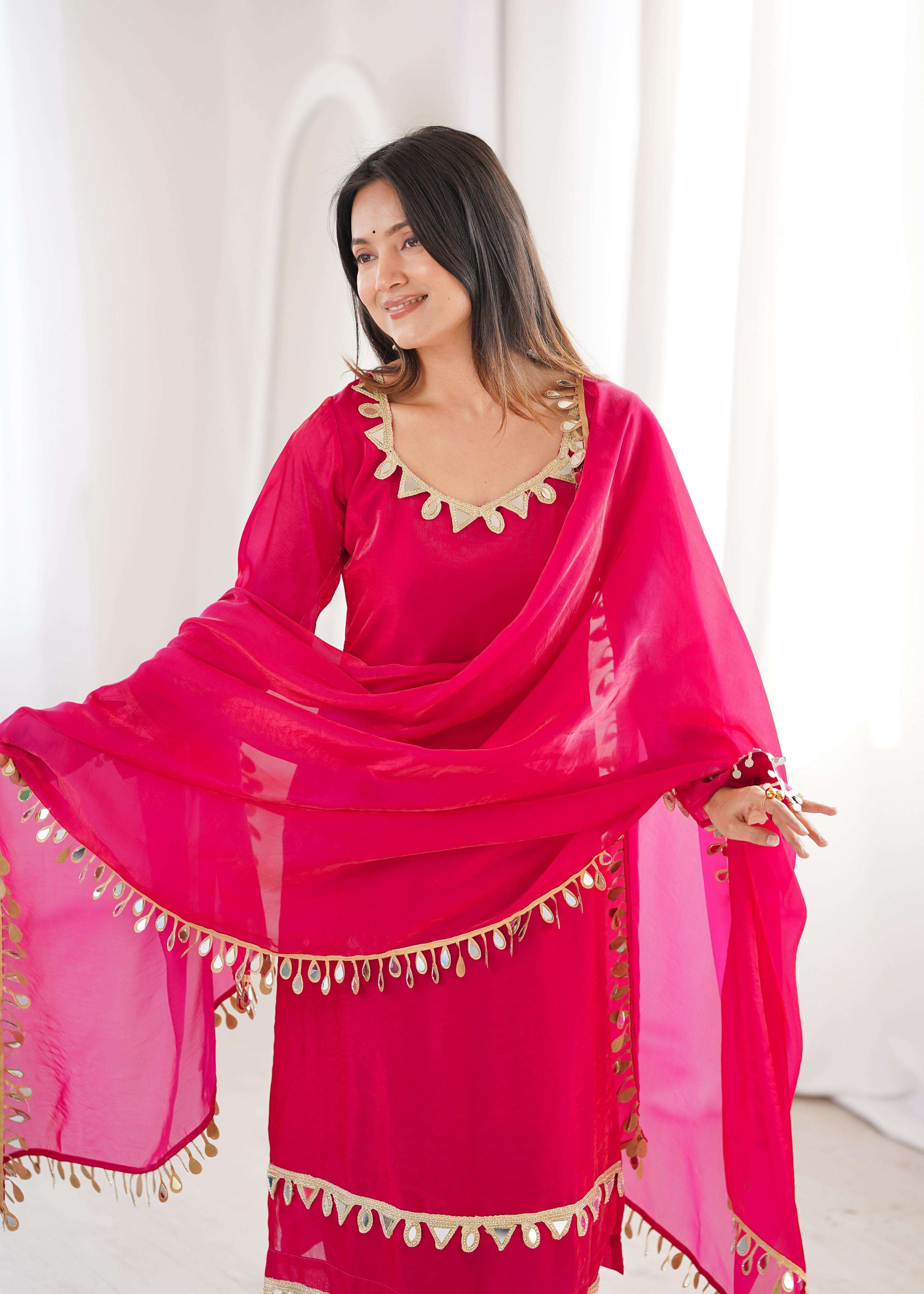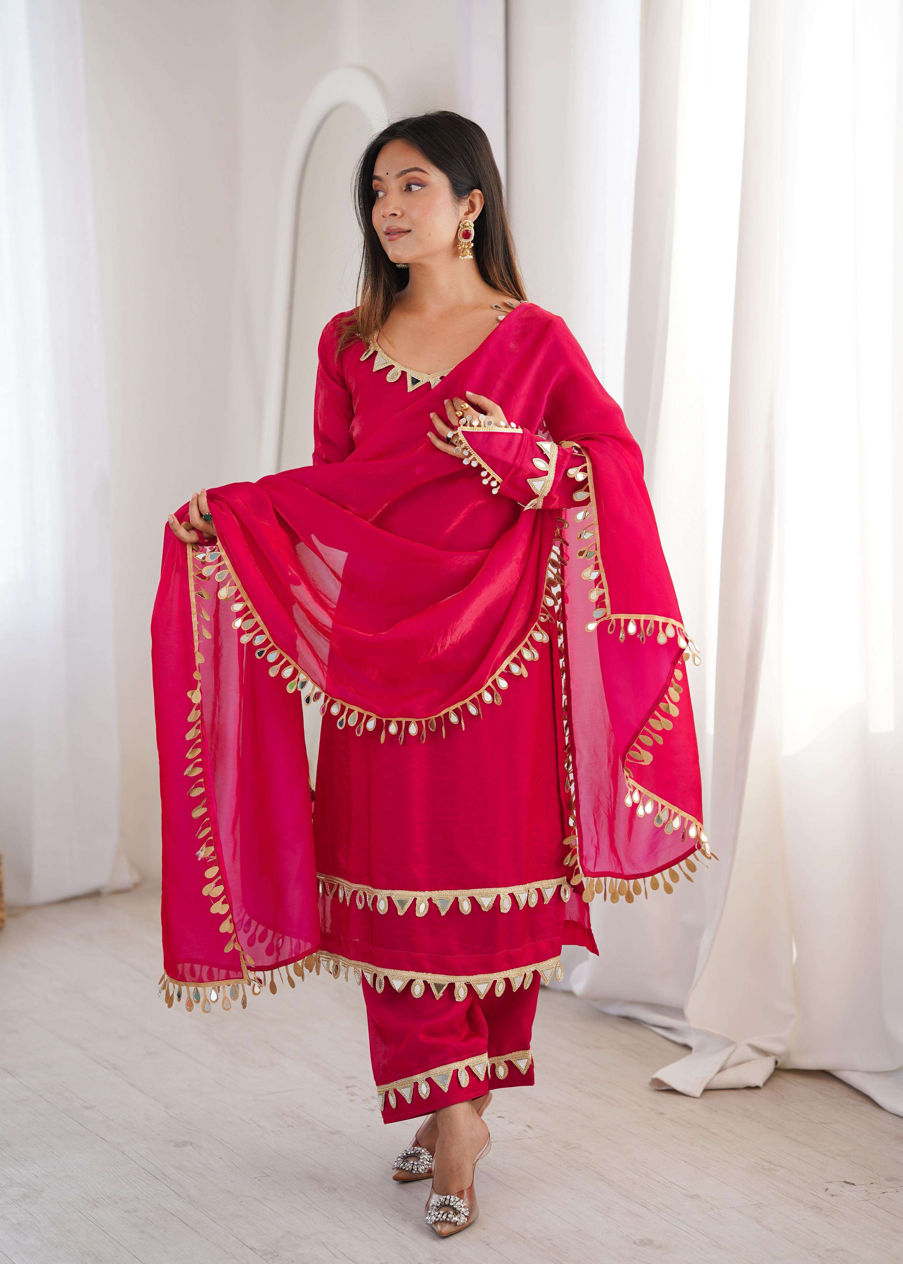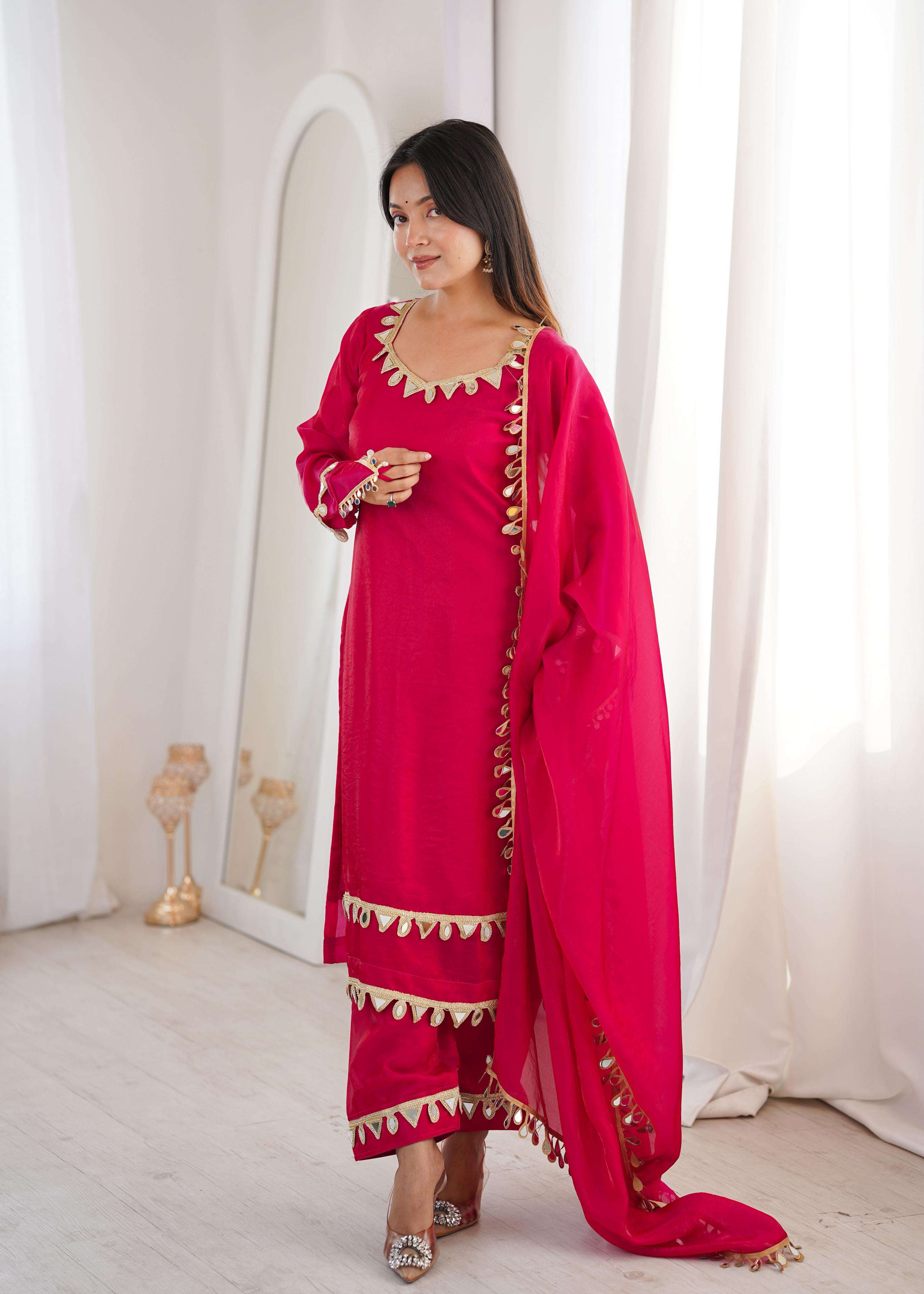 *DUPATTA*: FENDY SILK WITH REAL MIRROR WORK LACE (2.3 METER)