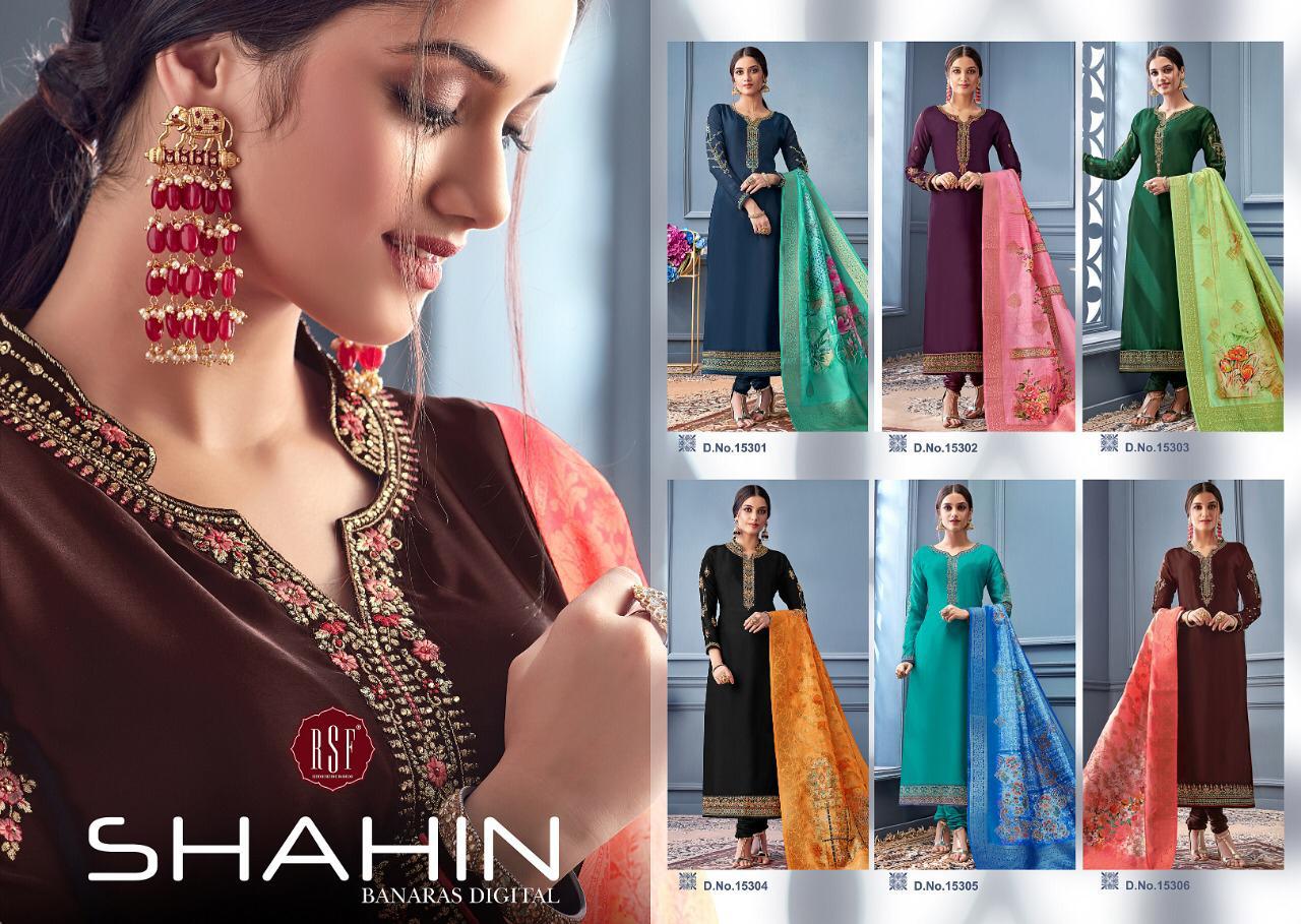 Buy Online Shahin Banaras Digital By Riddhi Siddhi Fashion Series 15301 To 15306 Satin Georgette Designer Party Wear Suits Wholesaler Surat 6 Pcs of Full Catalogue at Wholesale Price. Looking for Shahin Banaras Digital By Riddhi Siddhi Fashion Series 15301 To 15306 Satin Georgette Designer Party Wear Suits Wholesaler Surat Full Catalouge at Best Price? Buy Now Shahin Banaras Digital By Riddhi Siddhi Fashion Series 15301 To 15306 Satin Georgette Designer Party Wear Suits Wholesaler Surat at Wholesale Rate of Rs 8370 with Total 6 Pcs from authroized dealer and supplier of RSF Brand. Cost of Each piece is just only Rs 1395 which is very low and affordable price to resale the product in your retail store ,This is Surat based Wholesale Supplier & Dealer of RSF Brand. Click on Brand name to Know more about RSF Brand's products.Call or Whatsapp on 9898838984 for booking or enquiry