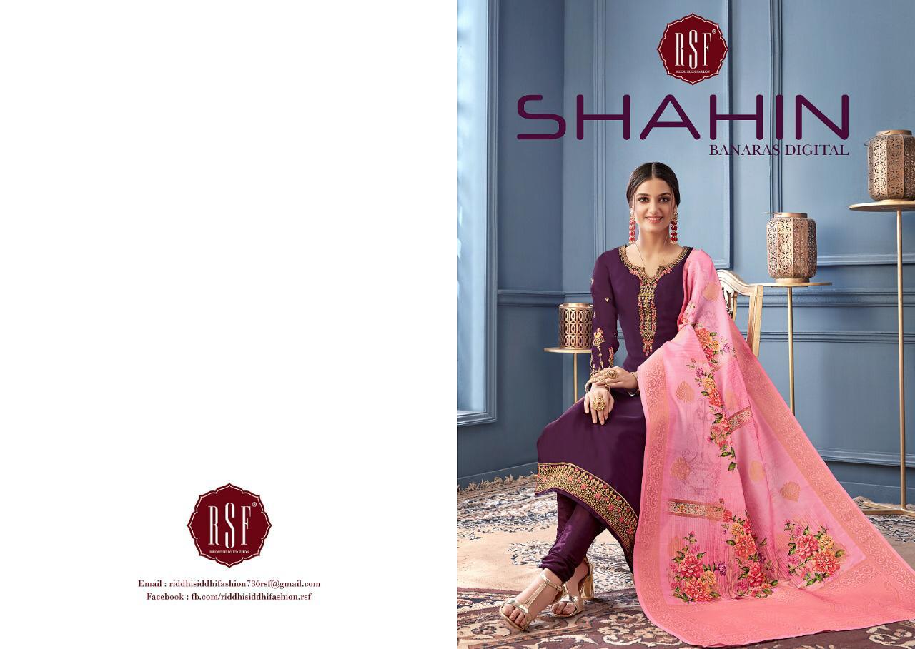 Shahin Banaras Digital By Riddhi Siddhi Fashion Series 15301 To 15306 Satin Georgette Designer Party Wear Suits Wholesaler Surat