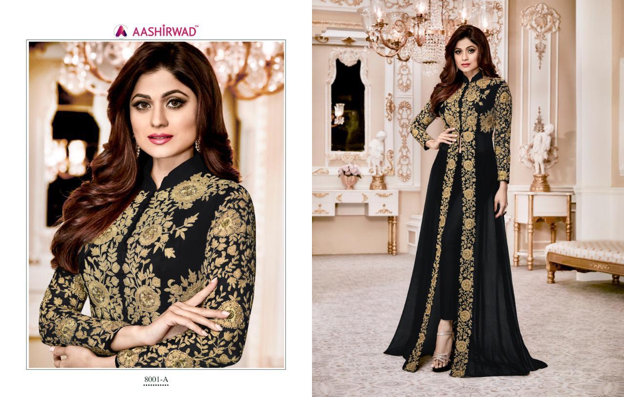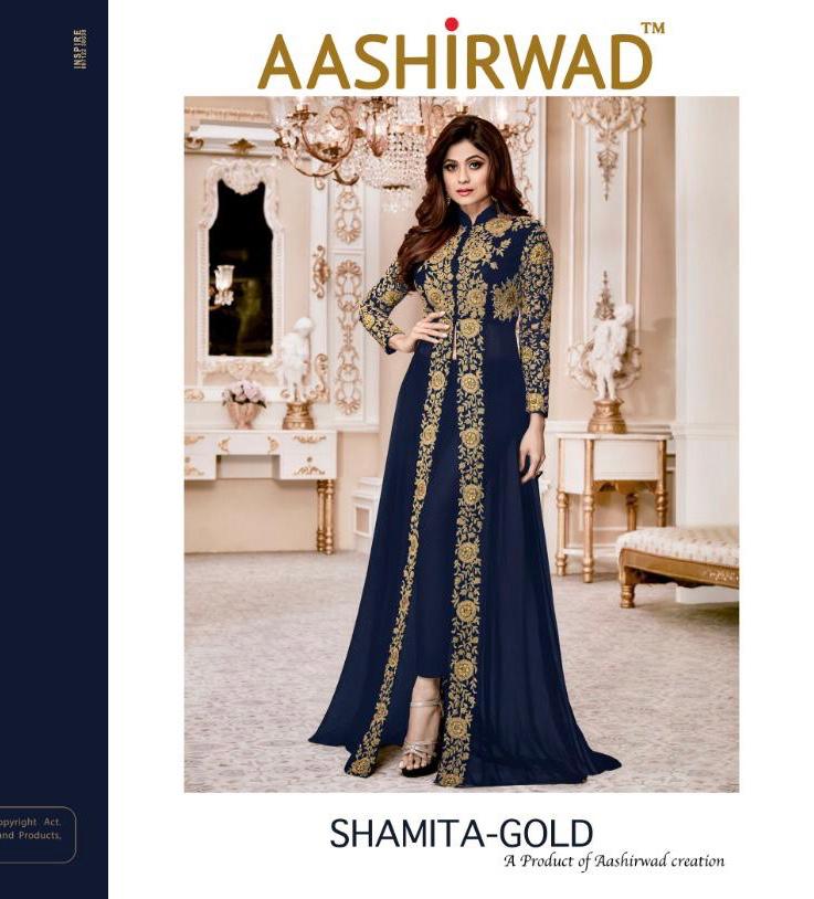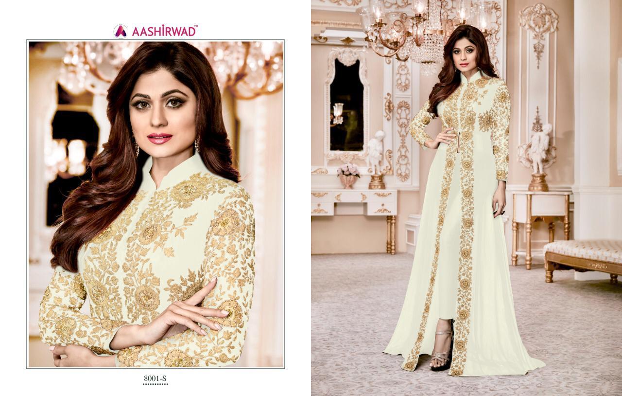 Buy Online Shamita Gold By Ashirwad Series 8001 Colours Georgette Designer Party Wear Suits Wholesale Supplier Surat 10 Pcs of Full Catalogue at Wholesale Price. Looking for Shamita Gold By Ashirwad Series 8001 Colours Georgette Designer Party Wear Suits Wholesale Supplier Surat Full Catalouge at Best Price? Buy Now Shamita Gold By Ashirwad Series 8001 Colours Georgette Designer Party Wear Suits Wholesale Supplier Surat at Wholesale Rate of Rs 17950 with Total 10 Pcs from authroized dealer and supplier of AASHIRWAD Brand. Cost of Each piece is just only Rs 1795 which is very low and affordable price to resale the product in your retail store ,This is Surat based Wholesale Supplier & Dealer of AASHIRWAD Brand. Click on Brand name to Know more about AASHIRWAD Brand's products.Call or Whatsapp on 9898838984 for booking or enquiry