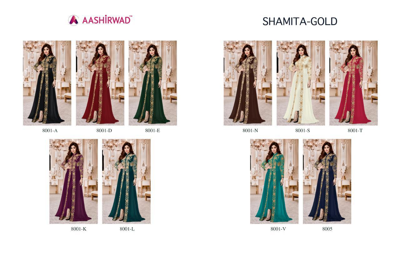 Shamita Gold By Ashirwad Series 8001 Colours Georgette Designer Party Wear Suits Wholesale Supplier Surat