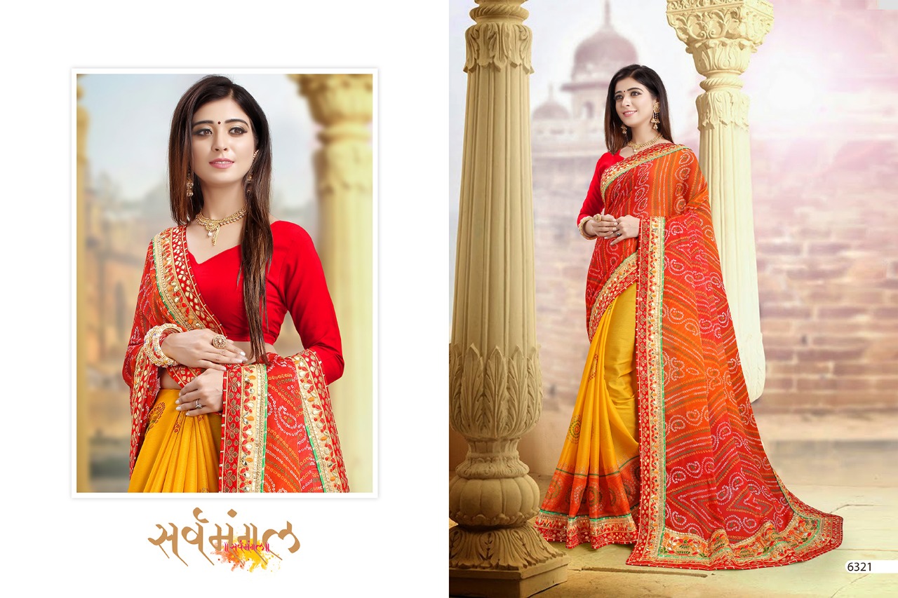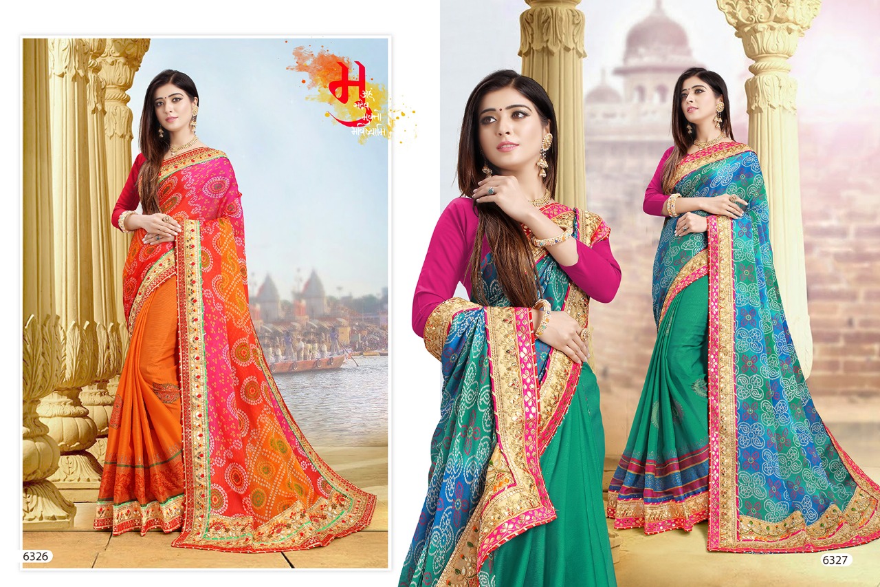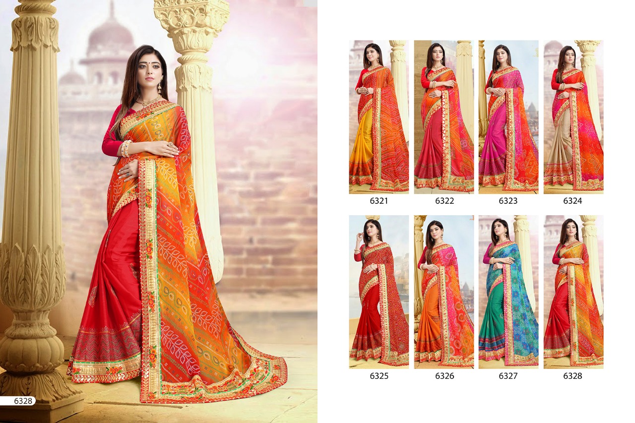 New HALF HAlLF Bandani catlouge with heavy Jari and Border Brand jalnidhi NAME - SHANGRILLA PCS - 8 PCS RATE - 895/- FABRICS - Moss chiffon Set to set |