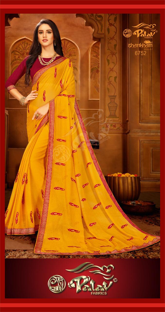 Buy Online Shankhanm 17 By Palav Series 6750 Sarees Wholesale Supplier And Dealer Gujarat 0 Pcs of Full Catalogue at Wholesale Price. Looking for Shankhanm 17 By Palav Series 6750 Sarees Wholesale Supplier And Dealer Gujarat Full Catalouge at Best Price? Buy Now Shankhanm 17 By Palav Series 6750 Sarees Wholesale Supplier And Dealer Gujarat at Wholesale Rate of Rs 0 with Total 0 Pcs from authroized dealer and supplier of BRAND'S Brand. Cost of Each piece is just only Rs 0 which is very low and affordable price to resale the product in your retail store ,This is Surat based Wholesale Supplier & Dealer of BRAND'S Brand. Click on Brand name to Know more about BRAND'S Brand's products.Call or Whatsapp on 9898838984 for booking or enquiry