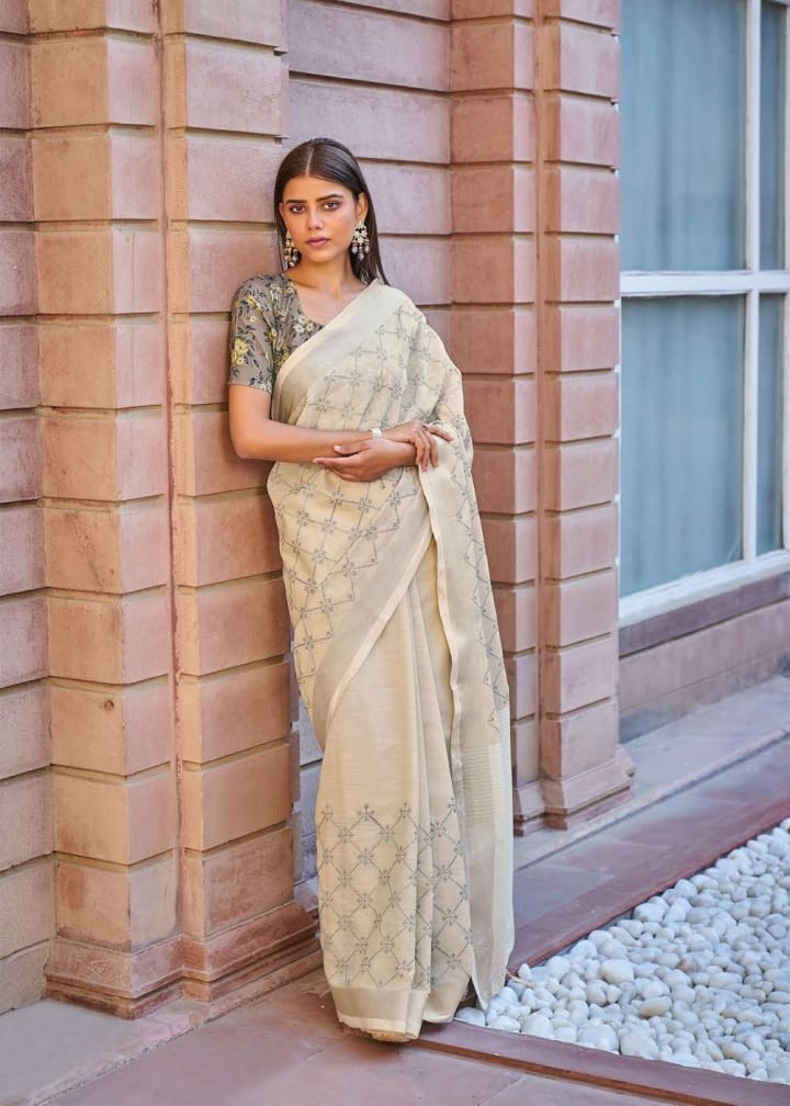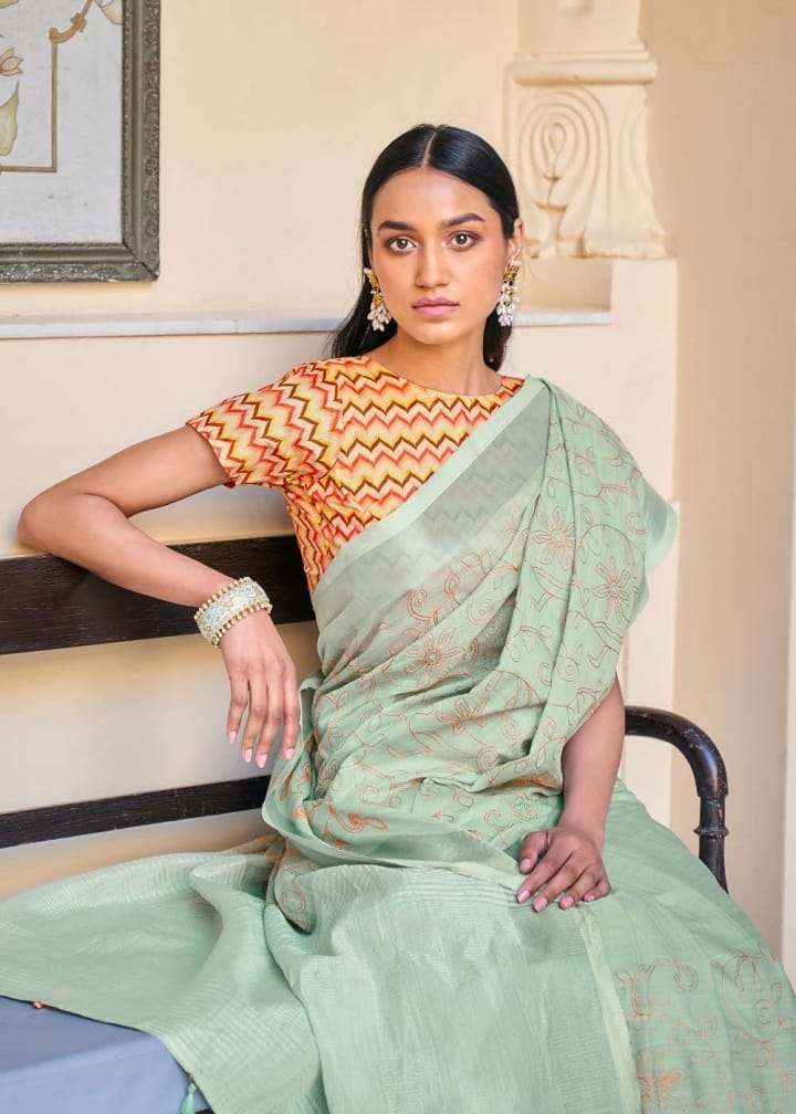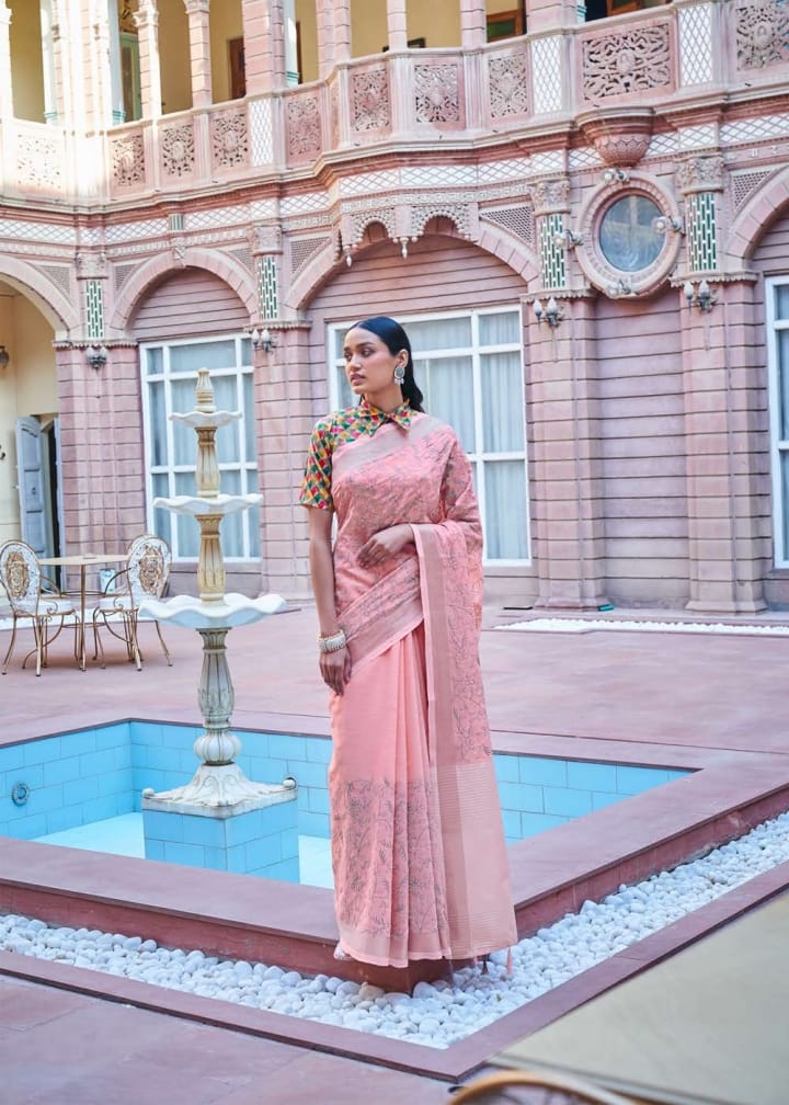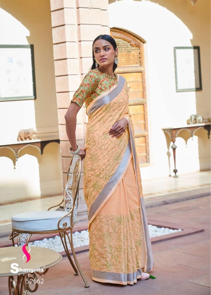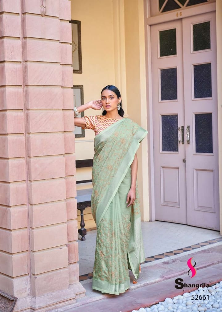 Shantam vol 2 Shangrila Present Pure Weaving Linen Saree With Kalamkari Thread Work And Digital Print Blouse...!! 8 pc 8 design 895/- |
