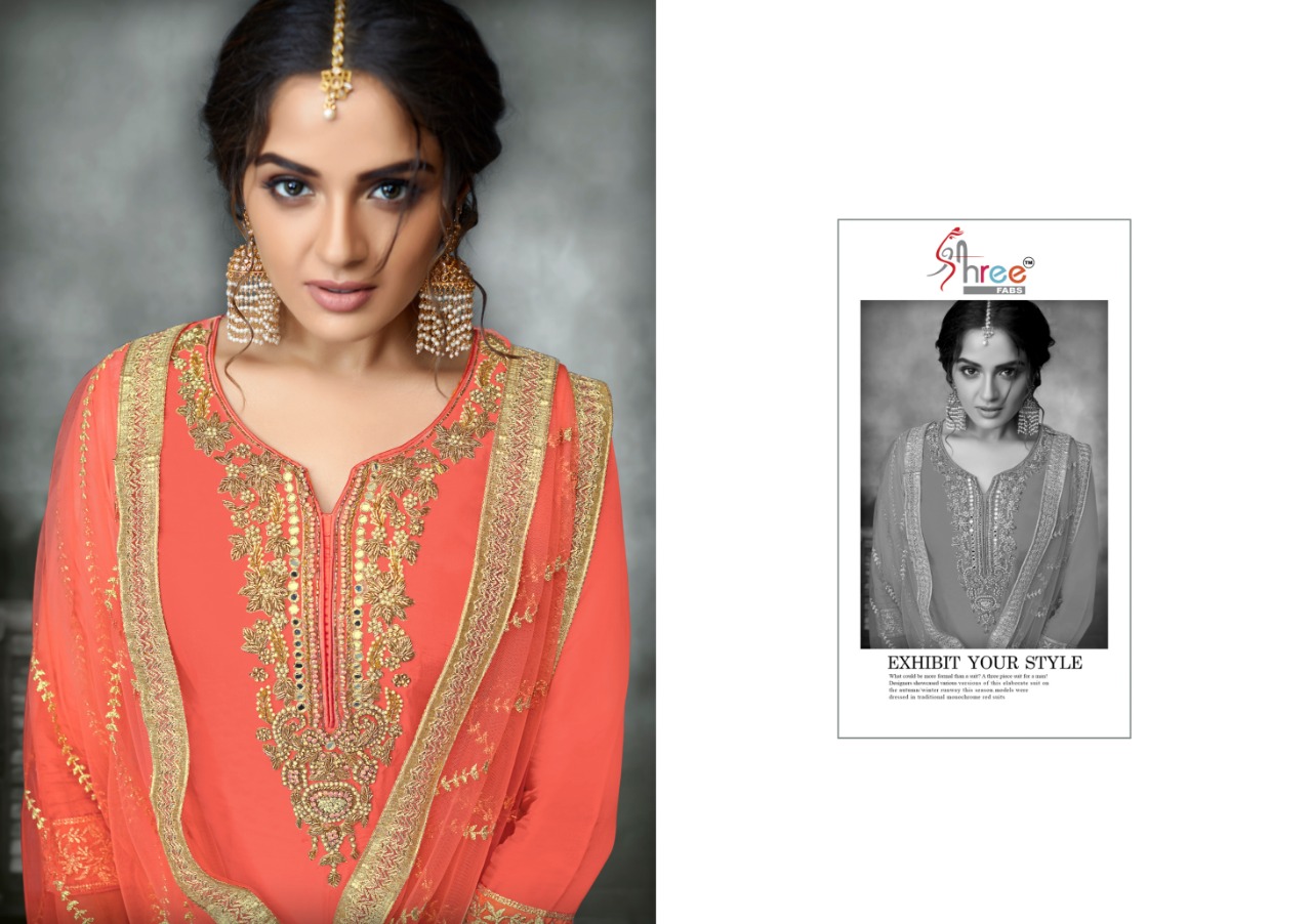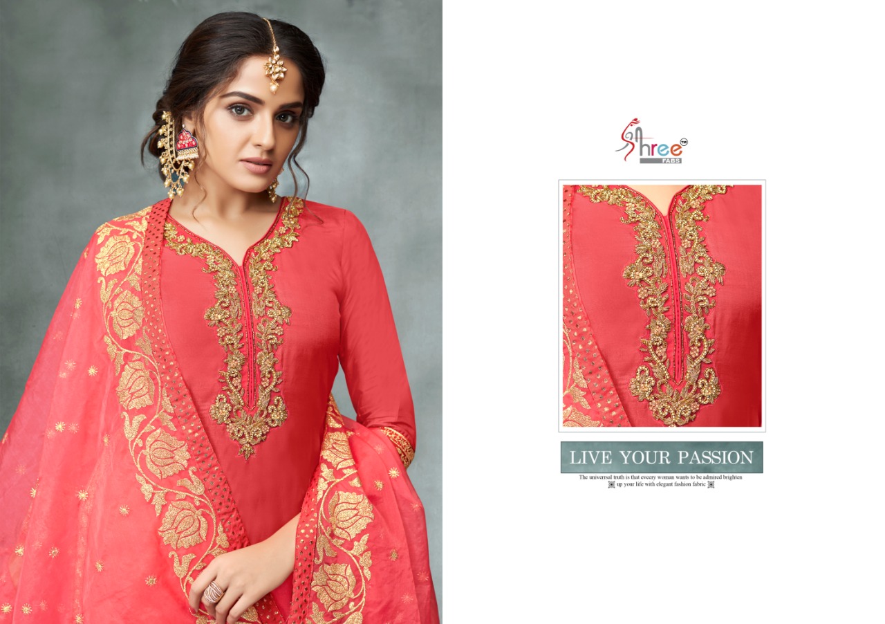 shehnai vol 10 top pure viscose opada silk with khatli & embrodery work( semistich ) palzo fox jorget with santoon inner( free size stich ) duppta net & organja embroderd des 5 top leanth 45+ rate 1899 + gst shree fabs surat |