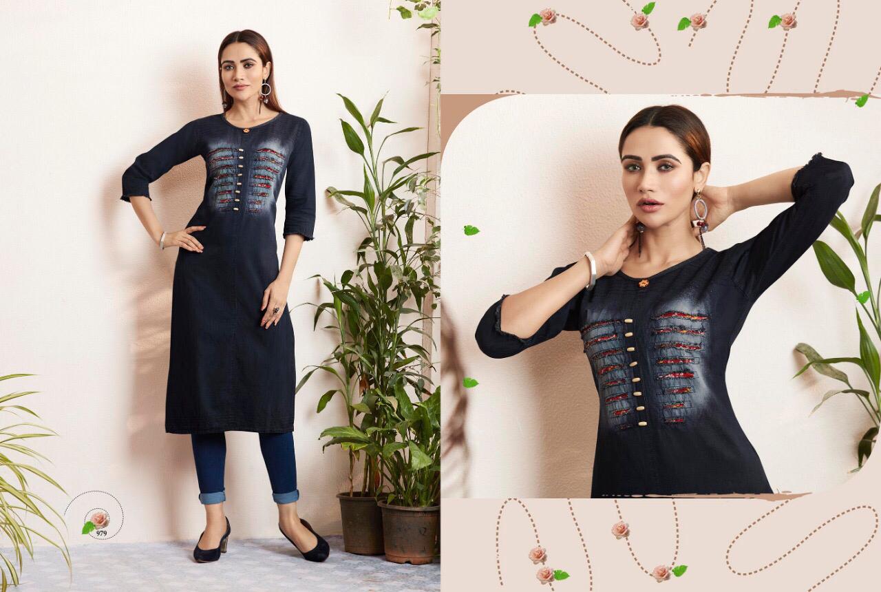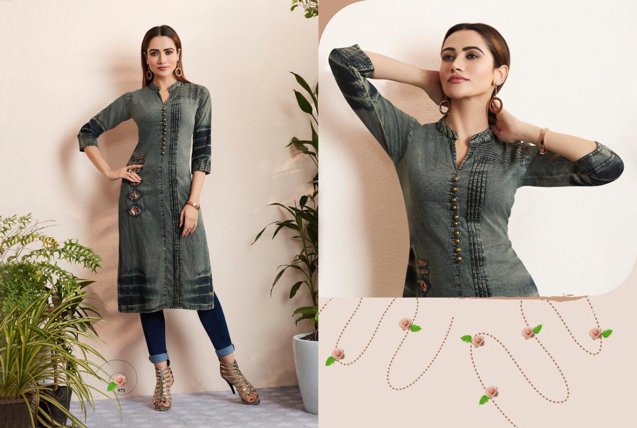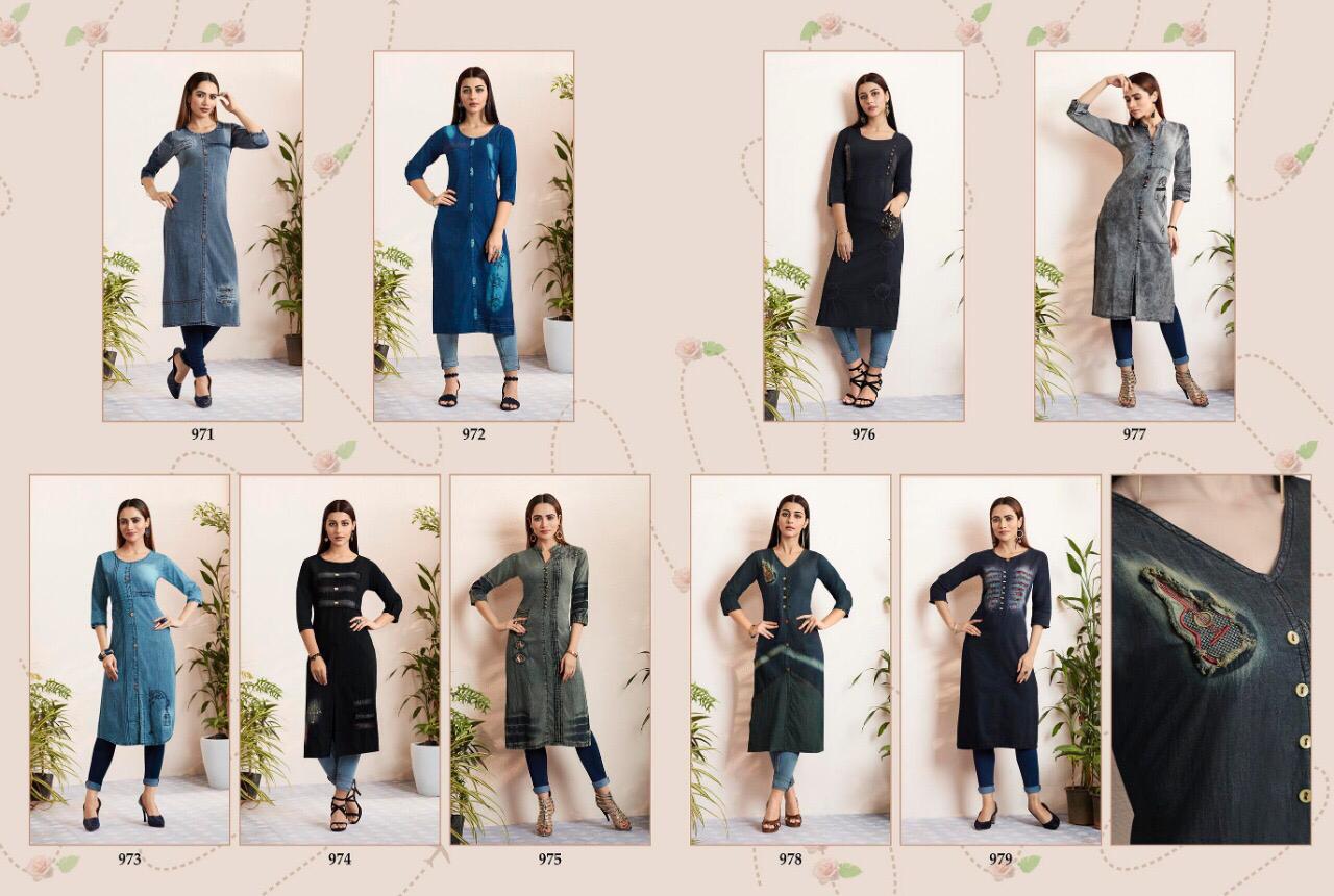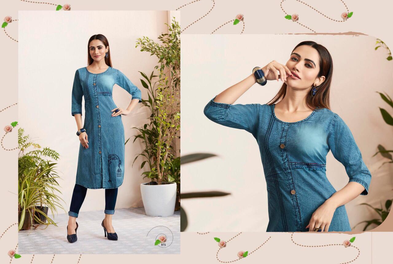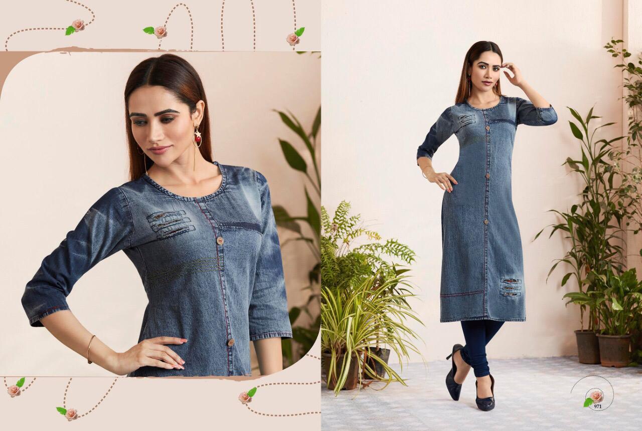 Shehzaadi Vol 3 By Kajree 971 Series Fancy Denim Printed Kurti Catlog Wholesaler Surat