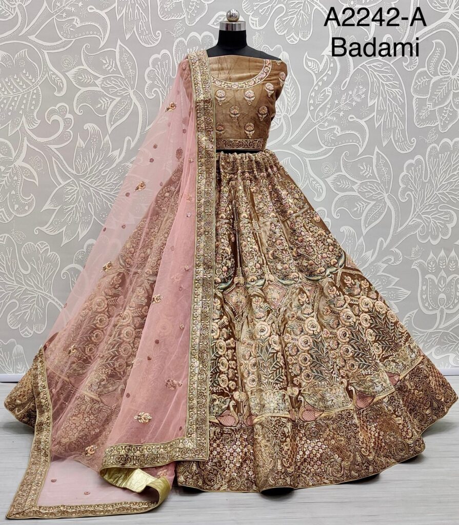 Shiny Velvet Detailed Embroidered Work Designer Wedding Lehengacholi Wholesaler Supplier From Surat