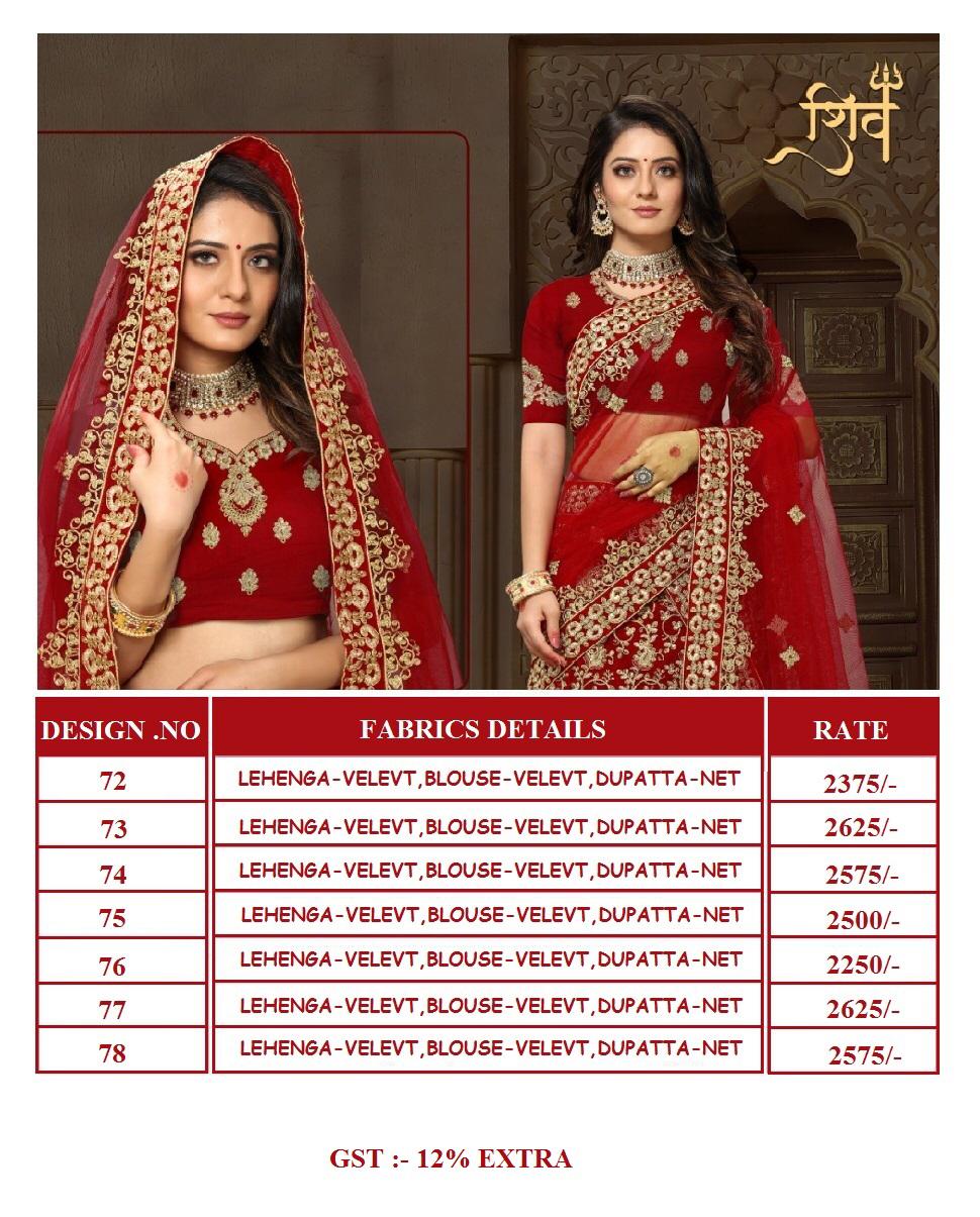 Shiv Lehnga Series 72 To 78 Occasion Designer Lehngas Wholesale Supplier And Dealer Gujarat