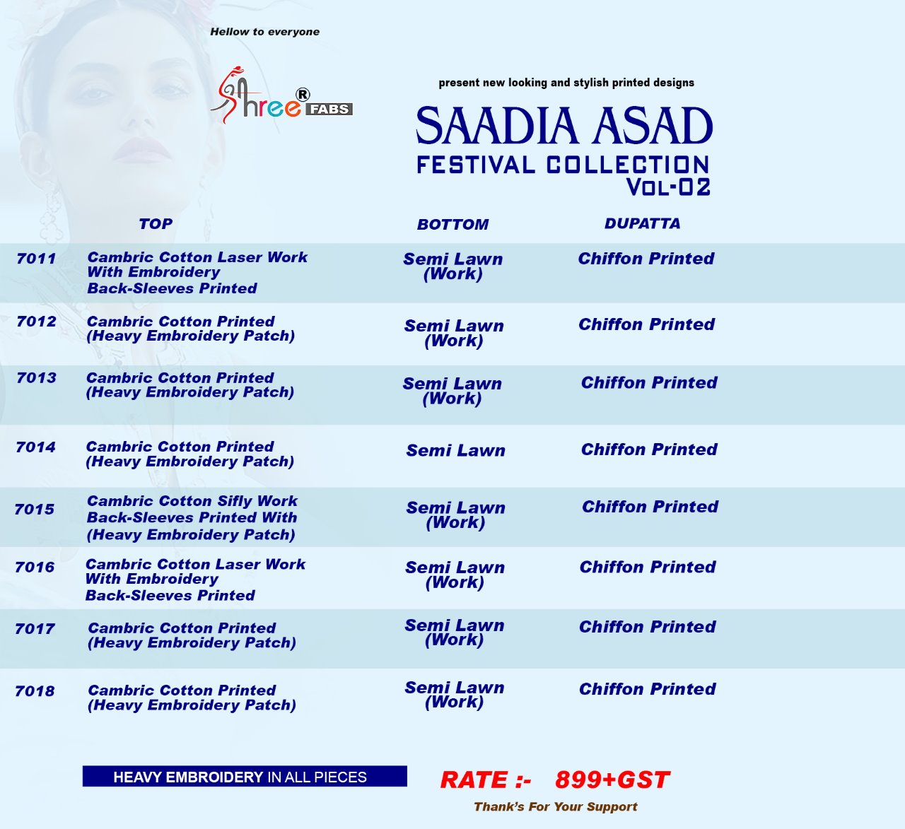 SHREE HIT CATLOG SAADIA ASAD VO 2 PIC 8 RATE 899 |