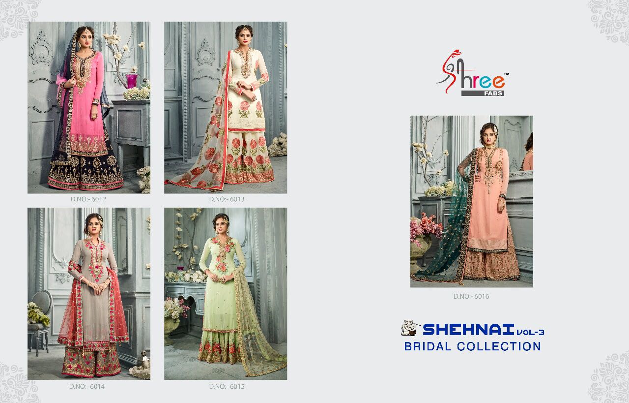 Buy Online Shree Fabs Shehnai Bridal Vol 3 6012 Series Heav Bridal Suit 5 Pcs of Full Catalogue at Wholesale Price. Looking for Shree Fabs Shehnai Bridal Vol 3 6012 Series Heav Bridal Suit Full Catalouge at Best Price? Buy Now Shree Fabs Shehnai Bridal Vol 3 6012 Series Heav Bridal Suit at Wholesale Rate of Rs 9495 with Total 5 Pcs from authroized dealer and supplier of SHREE FABS Brand. Cost of Each piece is just only Rs 1899 which is very low and affordable price to resale the product in your retail store ,This is Surat based Wholesale Supplier & Dealer of SHREE FABS Brand. Click on Brand name to Know more about SHREE FABS Brand's products.Call or Whatsapp on 9898838984 for booking or enquiry