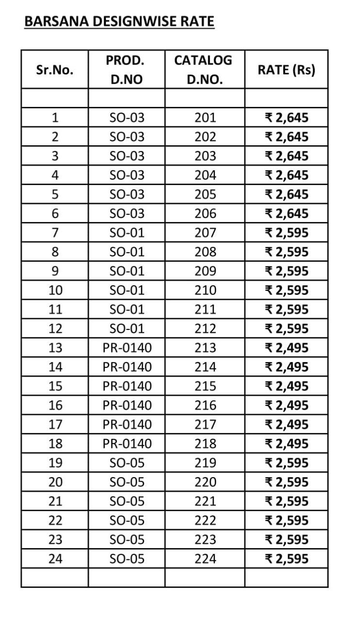 Buy Online Shruti Barsana Series 201 To 224 Designer Party Wear Sarees Wholesale Supplier Gujarat 24 Pcs of Full Catalogue at Wholesale Price. Looking for Shruti Barsana Series 201 To 224 Designer Party Wear Sarees Wholesale Supplier Gujarat Full Catalouge at Best Price? Buy Now Shruti Barsana Series 201 To 224 Designer Party Wear Sarees Wholesale Supplier Gujarat at Wholesale Rate of Rs 0 with Total 24 Pcs from authroized dealer and supplier of BRAND'S Brand. Cost of Each piece is just only Rs 0 which is very low and affordable price to resale the product in your retail store ,This is Surat based Wholesale Supplier & Dealer of BRAND'S Brand. Click on Brand name to Know more about BRAND'S Brand's products.Call or Whatsapp on 9898838984 for booking or enquiry