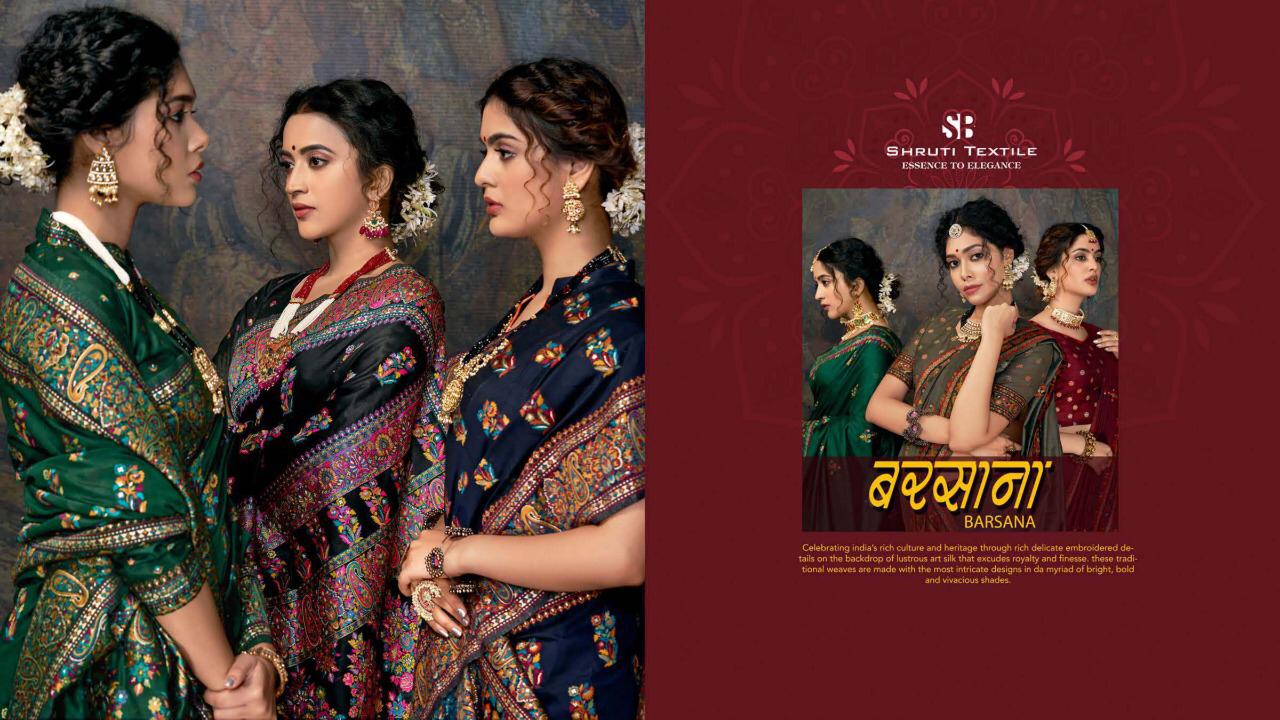 Brand - *SHRUTI TEXTILE* . Catlog name - *BARSANA* . Series - *201 TO 224*. *set & loose & Single* Fabric- Cotton weaving silk . RATE LIST ATTACH GST 5 Percent Extra. Delivery from today BOOK YOUR ORDER NOW |