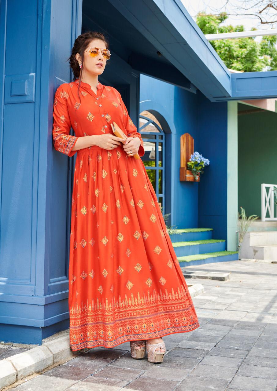 ?? *???? ????* ?? ??? ?????? ?? ???? ?????? ???? ??????? ??????? ????? ??? ?????????. ? Catlouge Name :- *Shruti Vol-3* ? Design :- 8 Pis. *Fabric* :- *14 Kg Rayon* Bringing this festive season, the right mix of gold & glamour! By Rang Jyot launches GOLD print Gowns Gorgeous Designs and Collection.. Size :- *M L Xl XXL 3XL* RATE .599 per Pcs Set to set. GST 5 Percent Extra. Delivery 3-4 days + 5 gst Length :- 52 Limited Stock!!! ????????Plz, Hurry Up Book Your Order Fast...?? #Thanks_for_your_kind_support.?? |