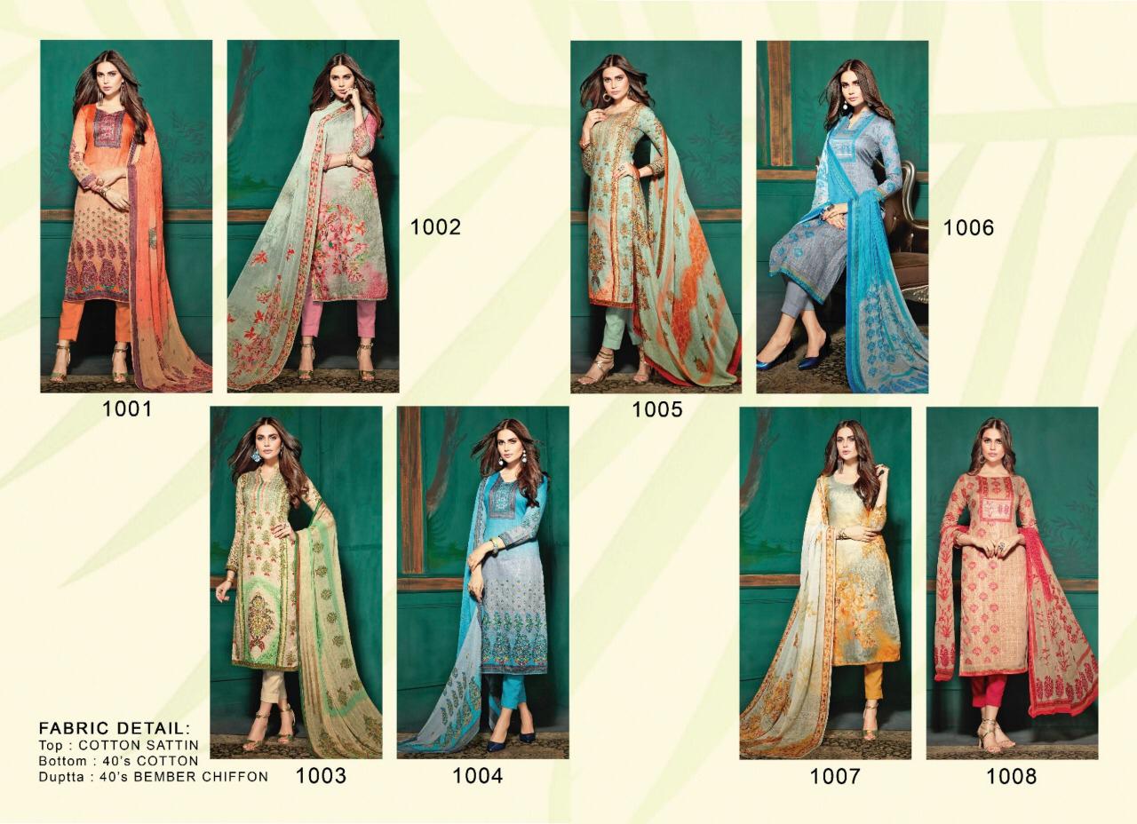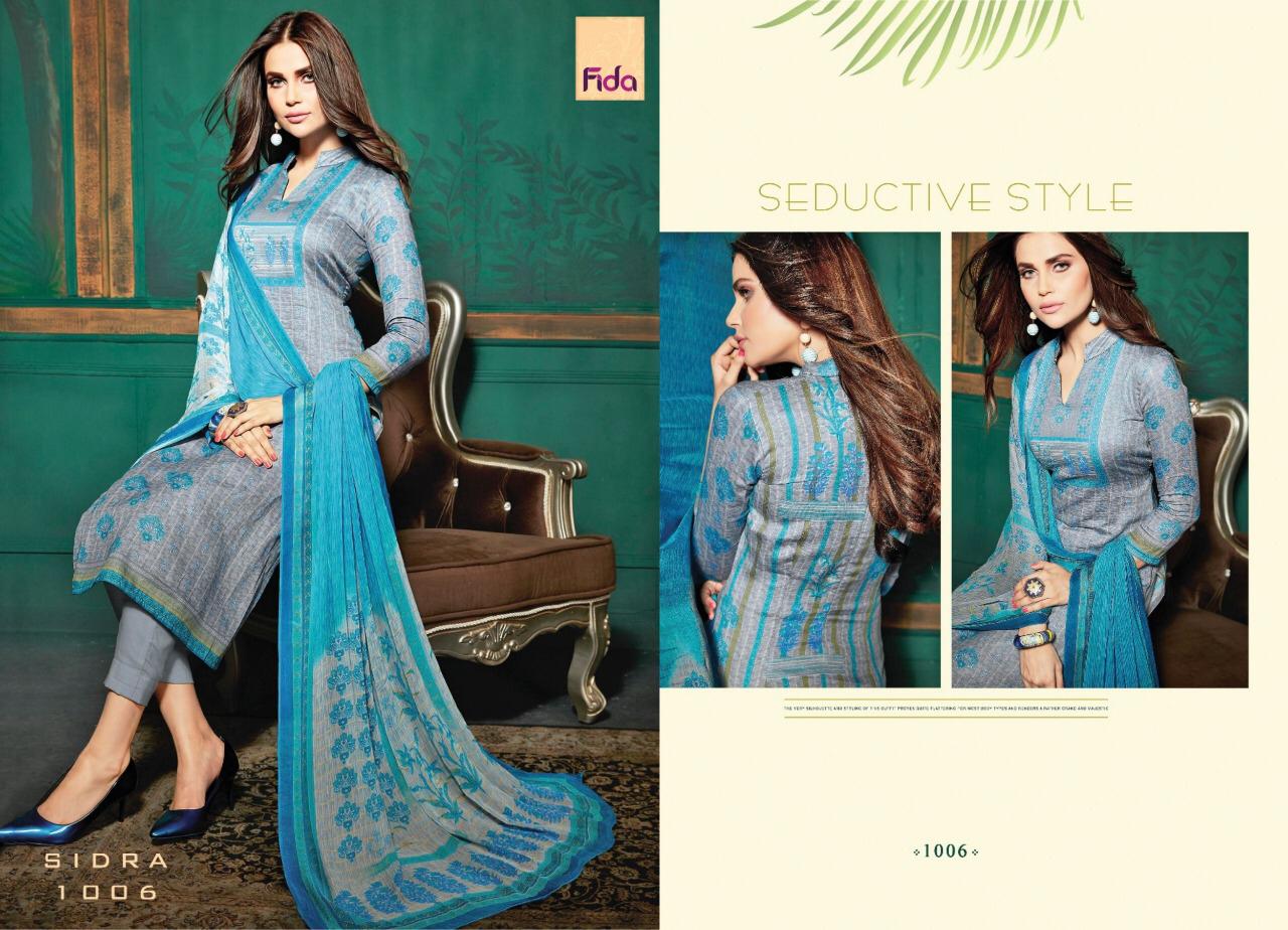 Buy Online Sidra By Fida International 1001 Series Fancy Cotton Satin Printed Salwar Kameez Catlog Wholesaler Surat 8 Pcs of Full Catalogue at Wholesale Price. Looking for Sidra By Fida International 1001 Series Fancy Cotton Satin Printed Salwar Kameez Catlog Wholesaler Surat Full Catalouge at Best Price? Buy Now Sidra By Fida International 1001 Series Fancy Cotton Satin Printed Salwar Kameez Catlog Wholesaler Surat at Wholesale Rate of Rs 6120 with Total 8 Pcs from authroized dealer and supplier of Brand. Cost of Each piece is just only Rs 765 which is very low and affordable price to resale the product in your retail store ,This is Surat based Wholesale Supplier & Dealer of Brand. Click on Brand name to Know more about Brand's products.Call or Whatsapp on 9898838984 for booking or enquiry