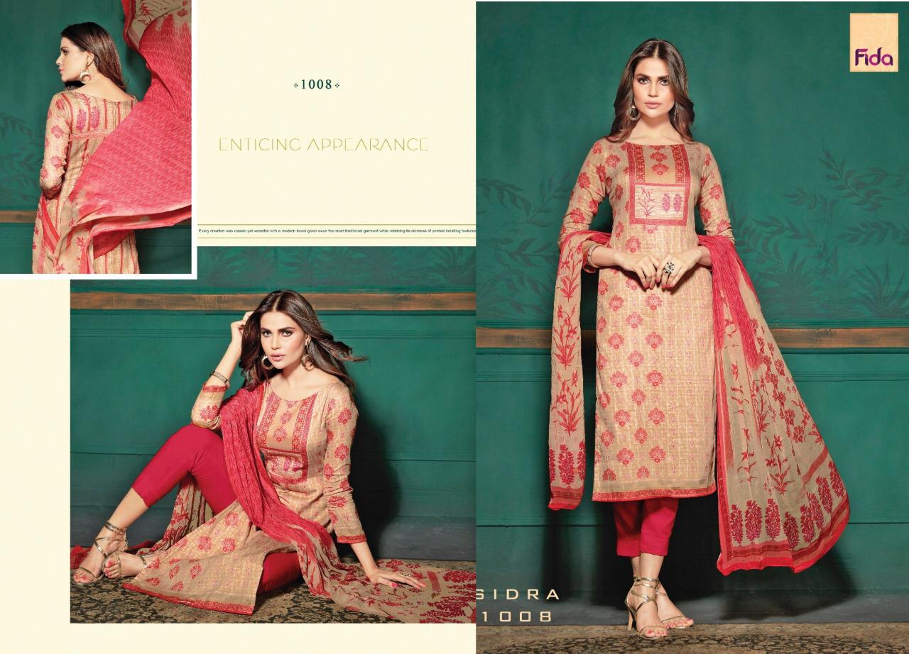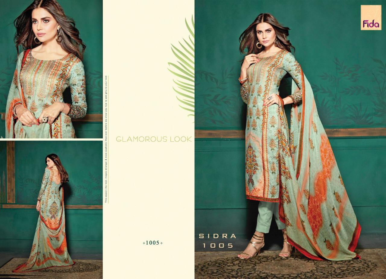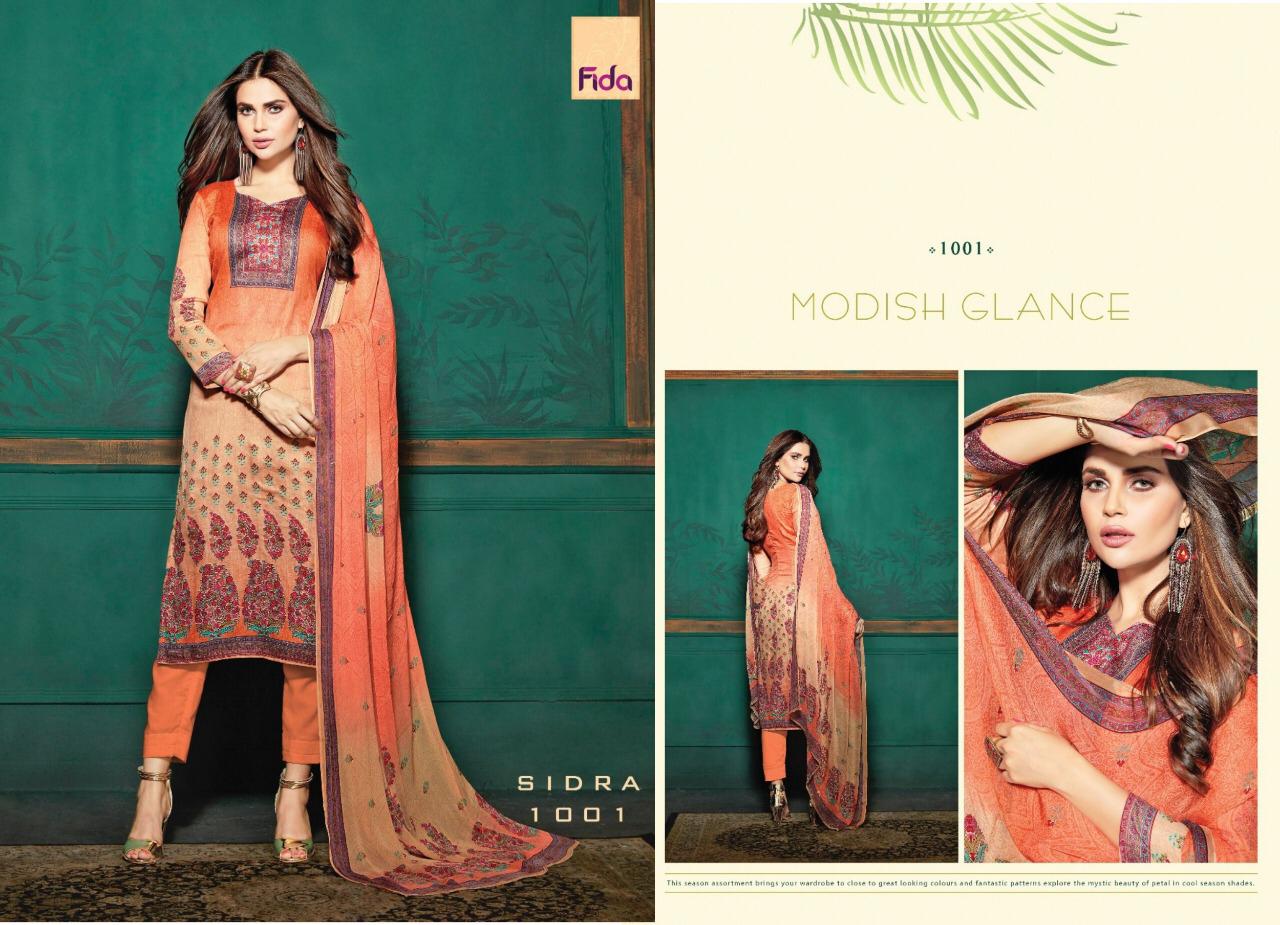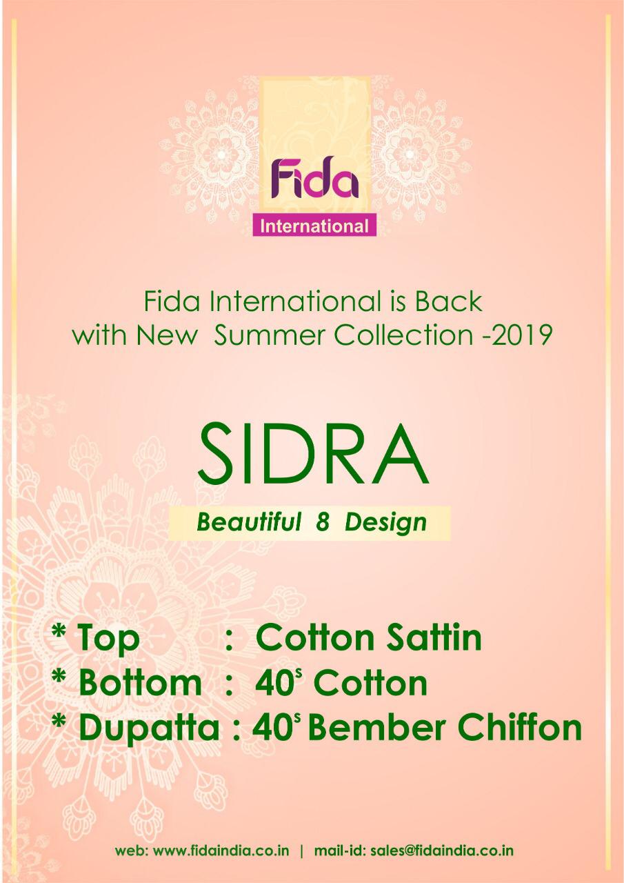 Sidra By Fida International 1001 Series Fancy Cotton Satin Printed Salwar Kameez Catlog Wholesaler Surat