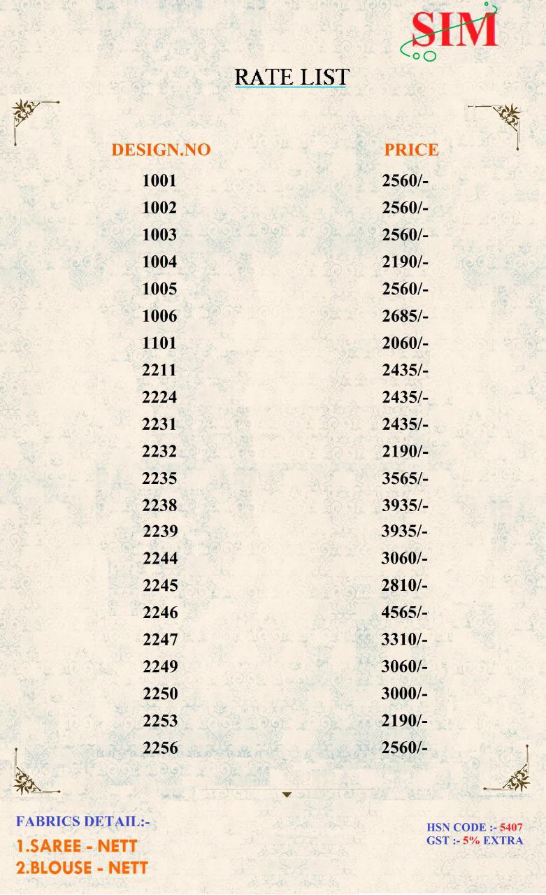 Sim Series 1001 Net Designer Sarees Wholesale Supplier And Trader Surat