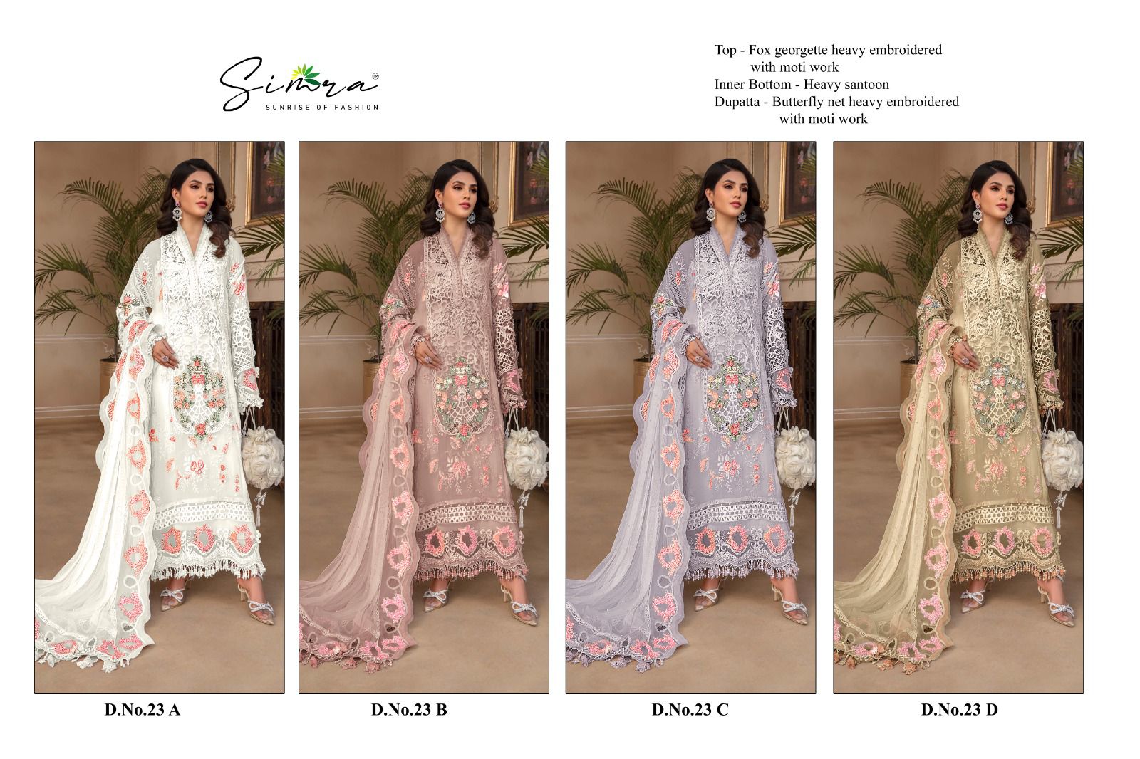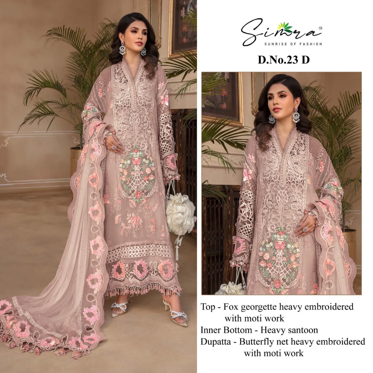 Simra New Design 23a To 23d Designer Georgette Pakistani Suit Manufacture Surat