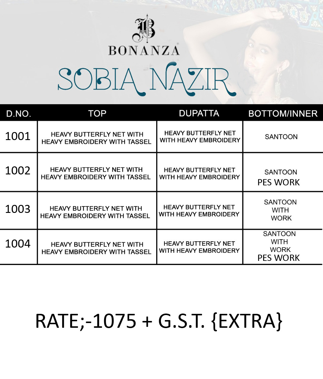 Sobia Nazir By Bonanza B Series 1001 To 1004 Butterfly Net Embroidered Pakistani Suits Collection Wholesale Supplier Gujarat