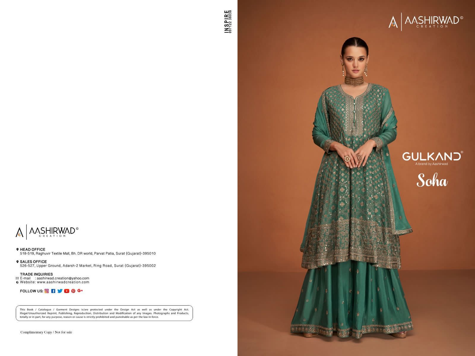 Buy Online Soha By Aashirwad Premium Chinnon Silk Free Size Suits For Women Beauty Suart 5 Pcs of Full Catalogue at Wholesale Price. Looking for Soha By Aashirwad Premium Chinnon Silk Free Size Suits For Women Beauty Suart Full Catalouge at Best Price? Buy Now Soha By Aashirwad Premium Chinnon Silk Free Size Suits For Women Beauty Suart at Wholesale Rate of Rs 12495 with Total 5 Pcs from authroized dealer and supplier of AASHIRWAD Brand. Cost of Each piece is just only Rs 2499 which is very low and affordable price to resale the product in your retail store ,This is Surat based Wholesale Supplier & Dealer of AASHIRWAD Brand. Click on Brand name to Know more about AASHIRWAD Brand's products.Call or Whatsapp on 9898838984 for booking or enquiry