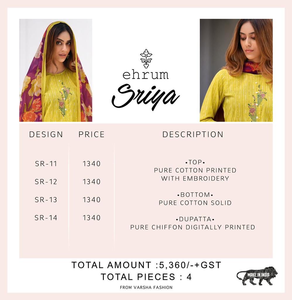 Sriya By Ehrum Designer Cotton Suit Dealer From India