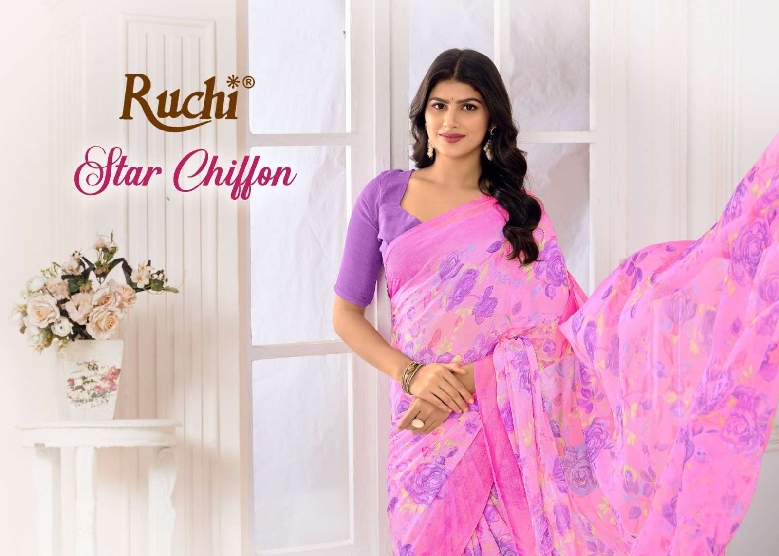 Buy Online STAR CHIFOON 185 by by RUCHI chiffon SAREE collection manufacturer surat 12 Pcs of Full Catalogue at Wholesale Price. Looking for STAR CHIFOON 185 by by RUCHI chiffon SAREE collection manufacturer surat Full Catalouge at Best Price? Buy Now STAR CHIFOON 185 by by RUCHI chiffon SAREE collection manufacturer surat at Wholesale Rate of Rs 5004 with Total 12 Pcs from authroized dealer and supplier of RUCHI SAREE Brand. Cost of Each piece is just only Rs 417 which is very low and affordable price to resale the product in your retail store ,This is Surat based Wholesale Supplier & Dealer of RUCHI SAREE Brand. Click on Brand name to Know more about RUCHI SAREE Brand's products.Call or Whatsapp on 9898838984 for booking or enquiry