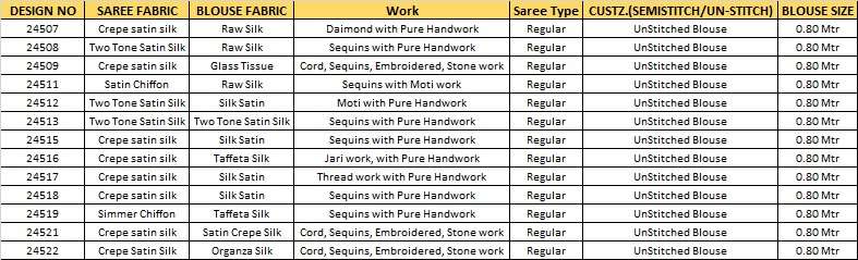 *PRICE :-* *24507-3575/-* *24508-3445/-* *24509-3635/-* *24511-3345/-* *24512-3355/-* *24513-3535/-* *24515-3465/-* *24516-3325/-* *24517-3045/-* *24518-3495/-* *24519-3465/-* *24521-2795/-* *24522-2895/-* +*5% GST EXTRA*