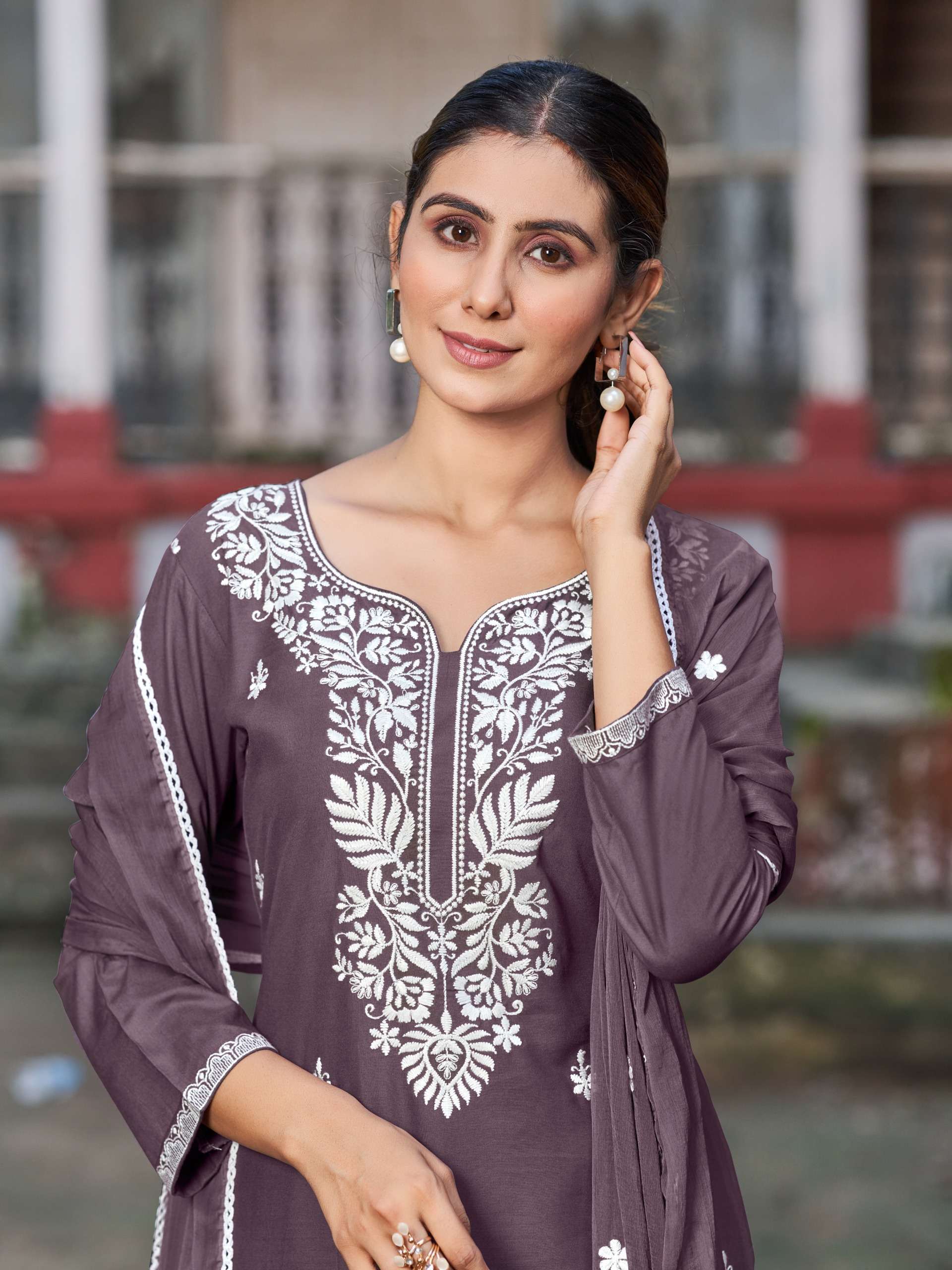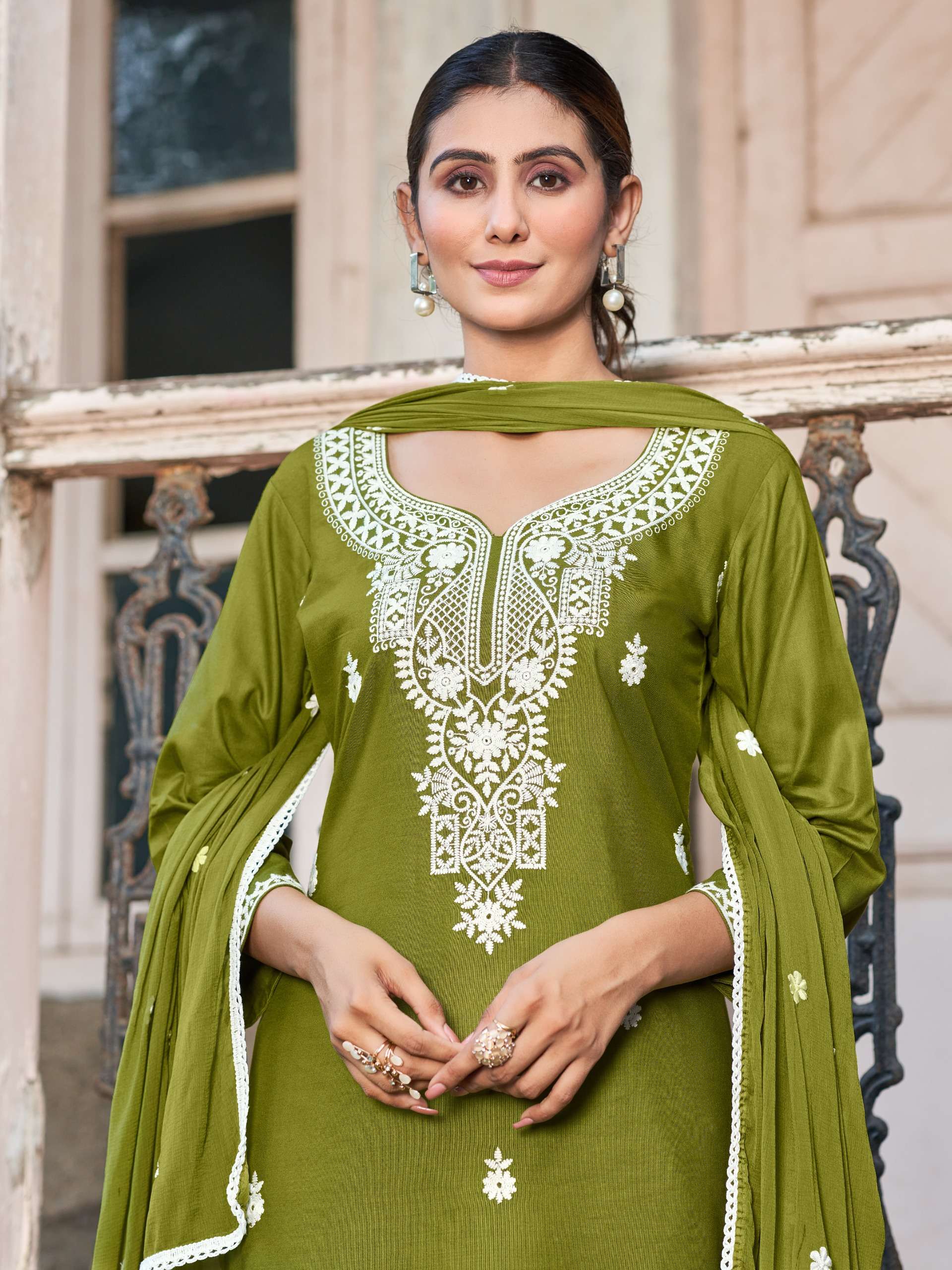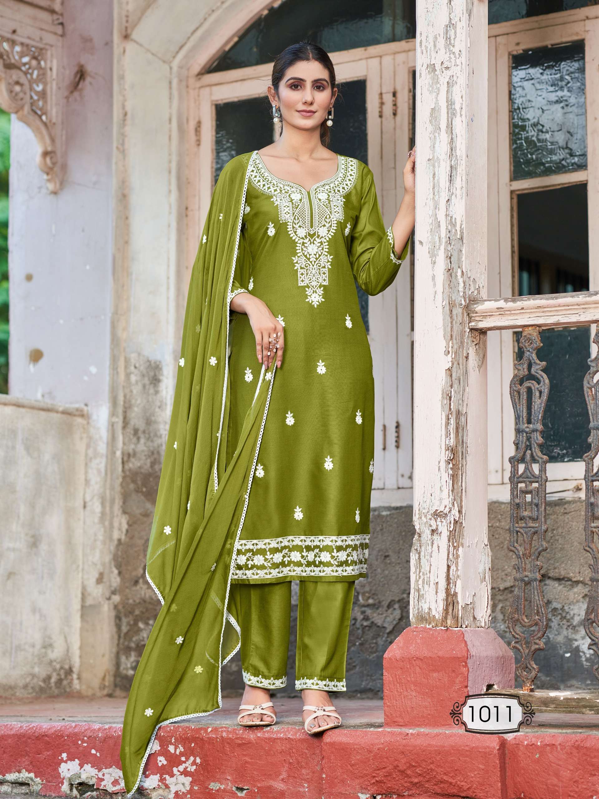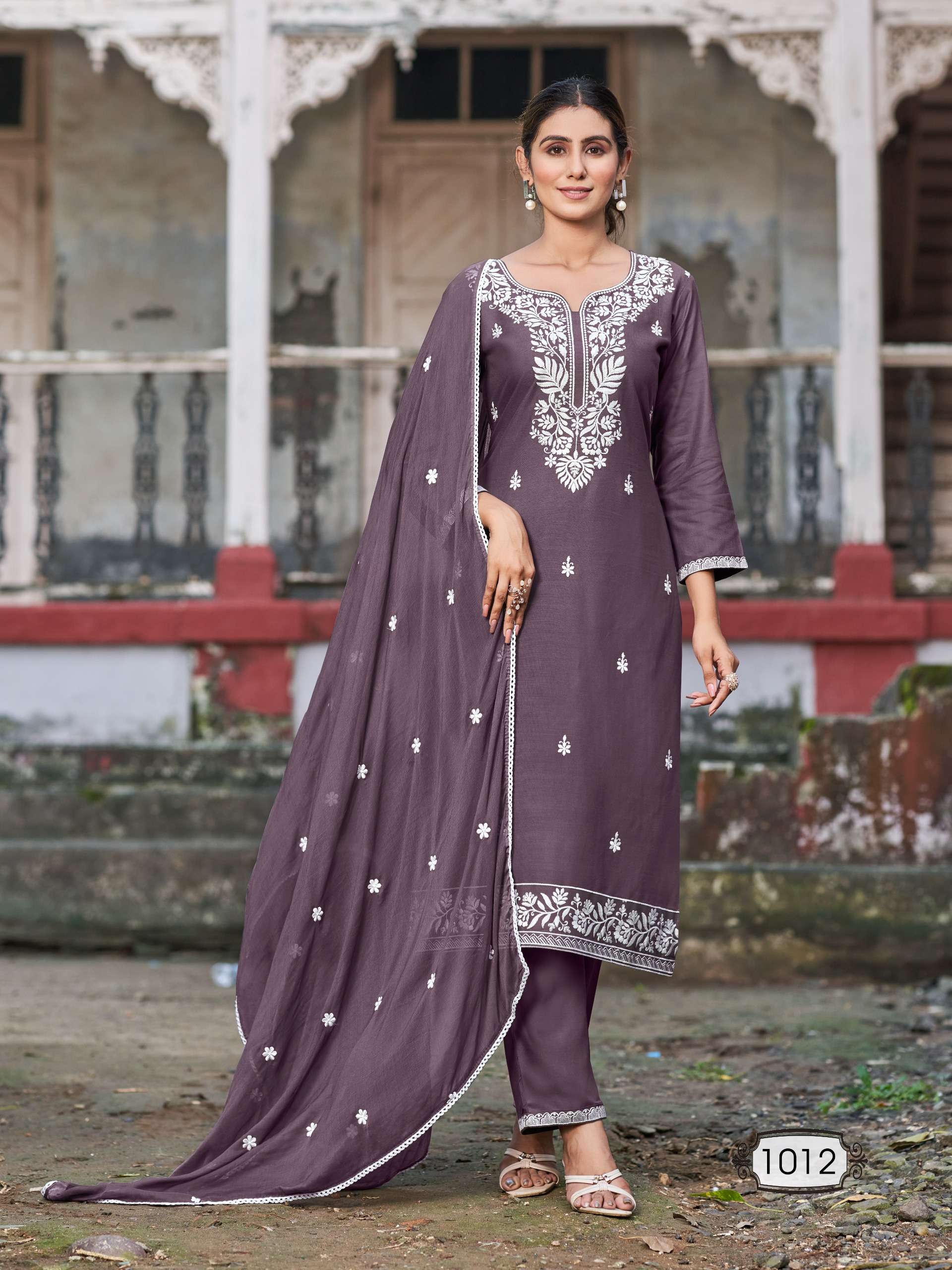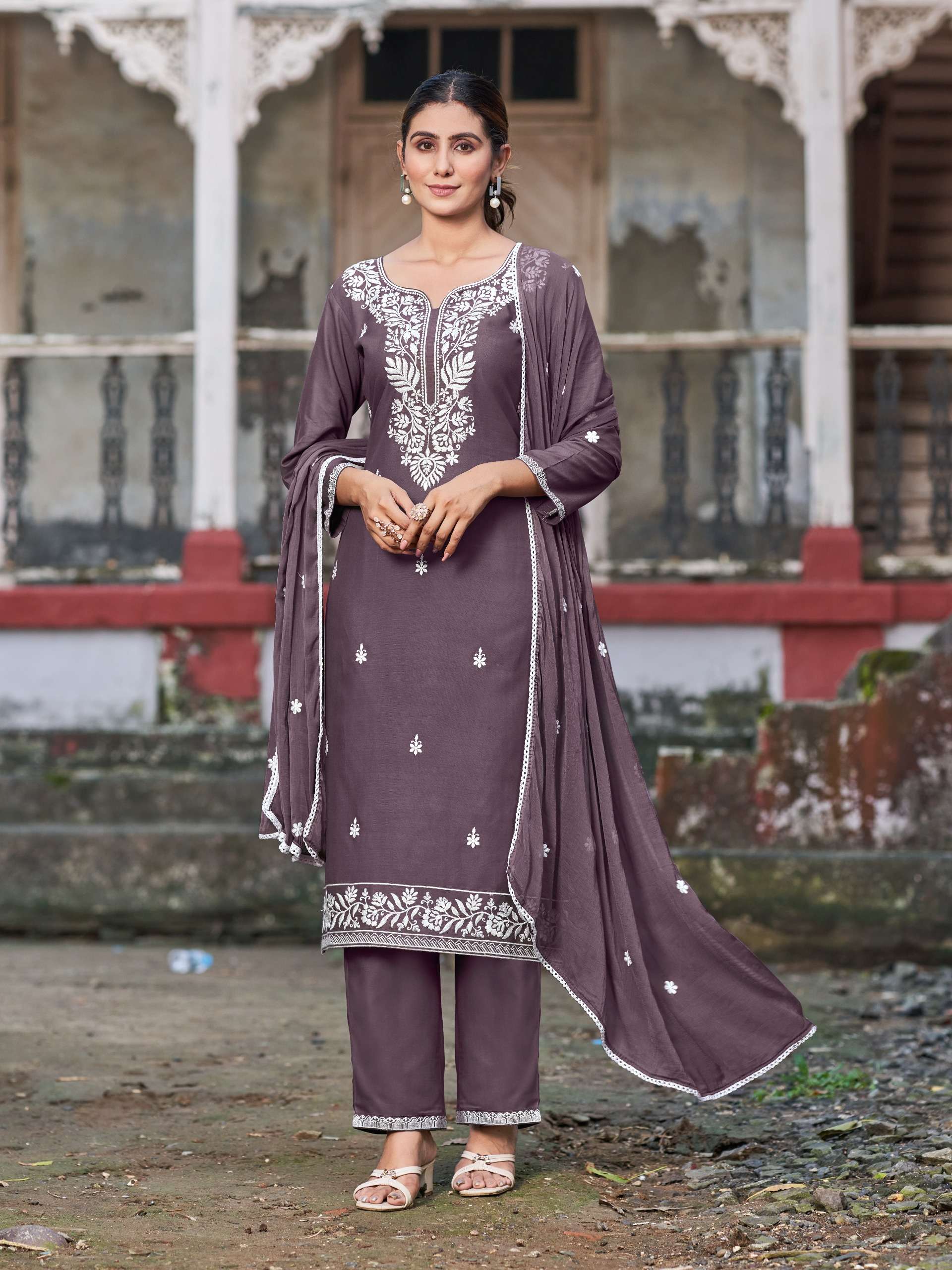 💃🏼 *Status VoL-3* 💃🏼 Step out in the most pleasant hues of this Winter season! Dyed and Rayon cotton to enhance your charm in this Winter... Turn heads in awe with our elegant a beautiful medley of rich bright tones,pure weaves of fabric with touch of White embroidery in Garments.. Bhavi Designer is stocked to celebrate the season of Winter with its Royal collection of 3 pieces ..